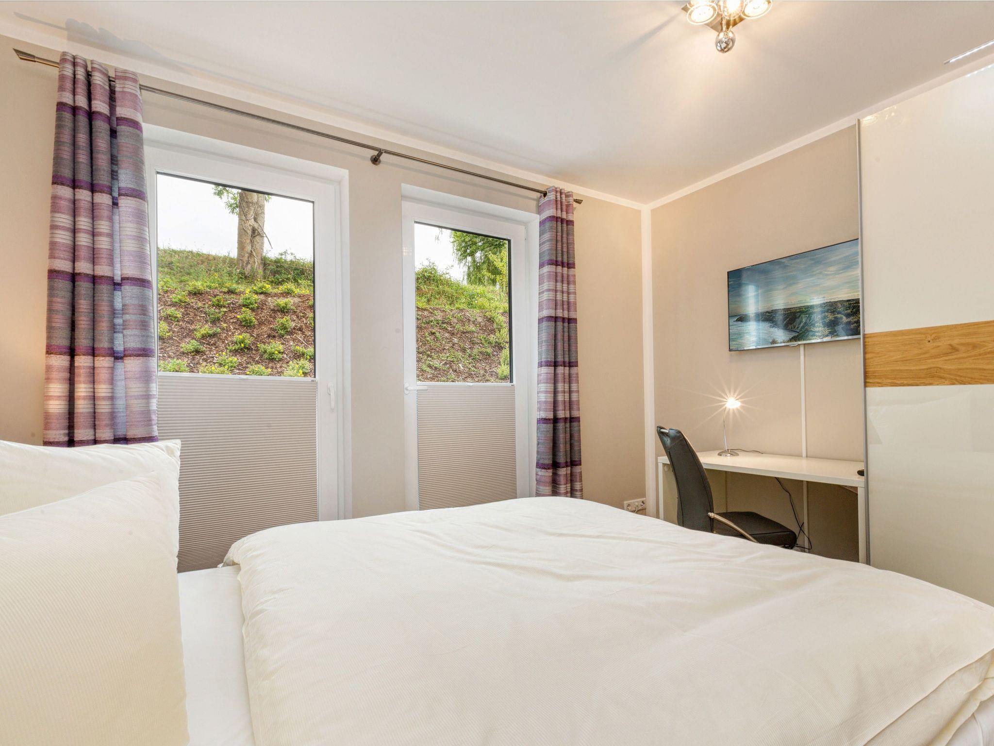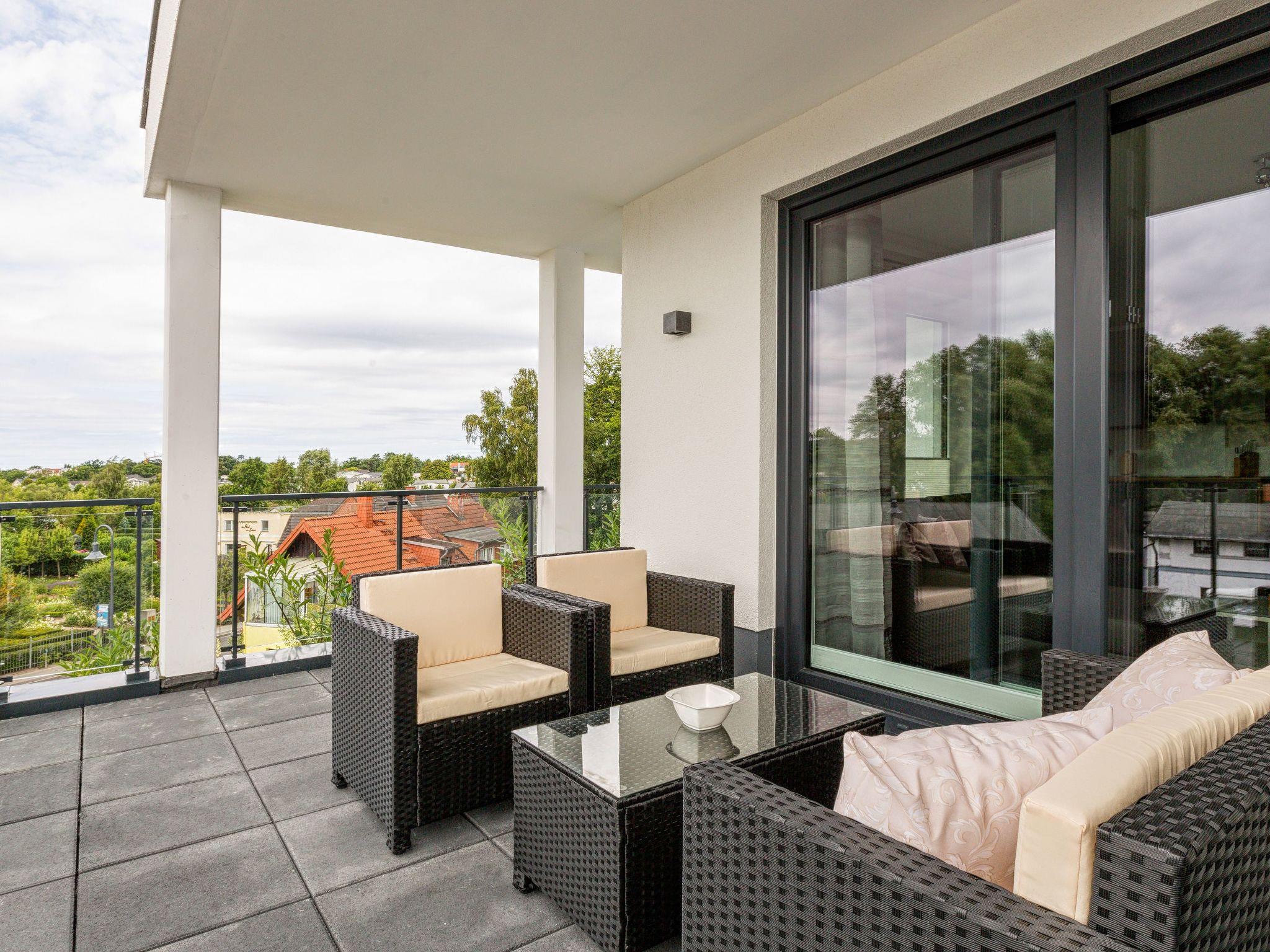 Moderne Ferienwohnung mit Sauna, Balkon und Seeblick in Binz, ideal für entspannte Ostseeferien.