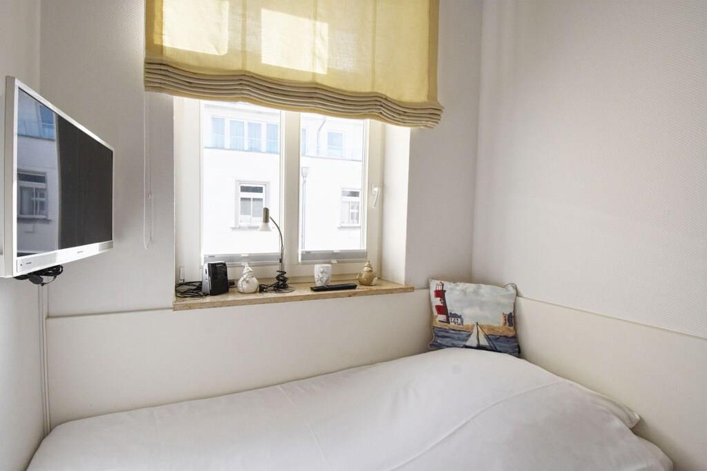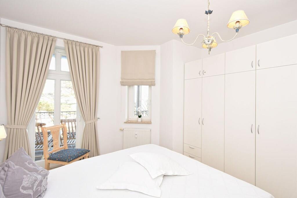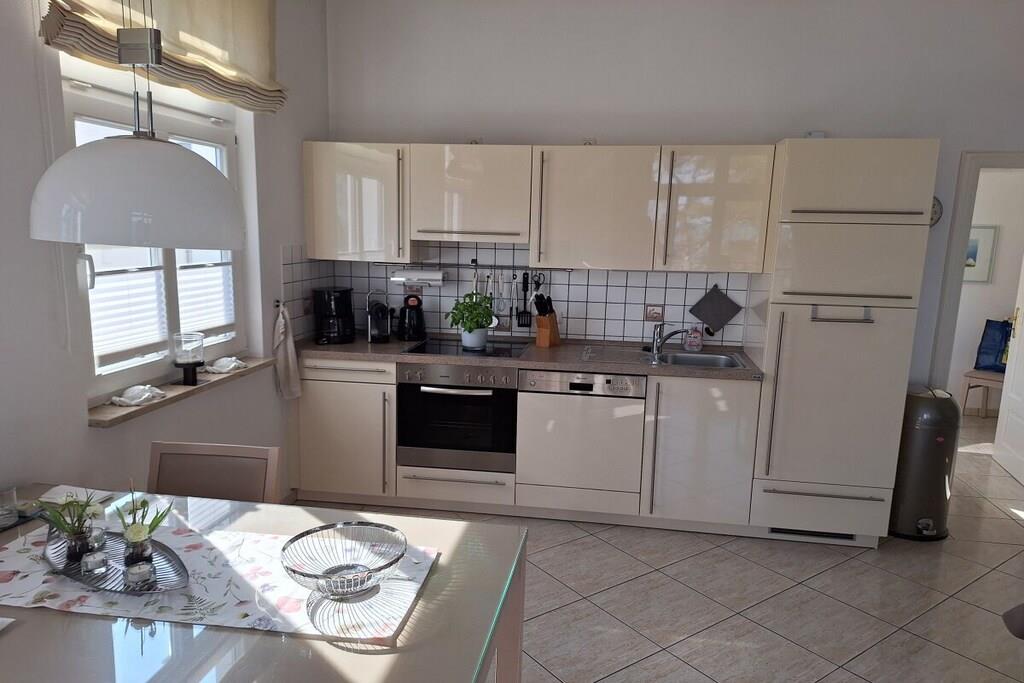Das Appartment "Nordstern" befindet sich im 2. OG einer liebevoll restaurierten Bäderstilvilla direkt an der einladenden Binzer Strandpromenade mit traumhaften Meerblick vom Balkon. Es hat ausreichend Platz für 2 Erwachsene und 2 Kinder oder 3 Erwachsene. Die Wohnung ist 65 qm groß, hell und ruhig gelegen und ist mit einer großzügigen, modernen und kompl. Küchenzeile (zus. Nespressomaschine) ausgestattet. WLAN/Internet, TV und Stereoanlage sind vorhanden. Das Badezimmer ist mit Dusche, Bidet, und Föhn ausgestattet. Schlafzimmer mit Boxspringbetten. Im 2.Schlafzimmer befindet sich ein Bett und TV. Zusatzkinder-/Babybett und Hochstuhl möglich. Schranksafe. Außenmöbel auf dem Balkon. Parplatz/E-Ladestation am Haus sowie Fahrradständer.