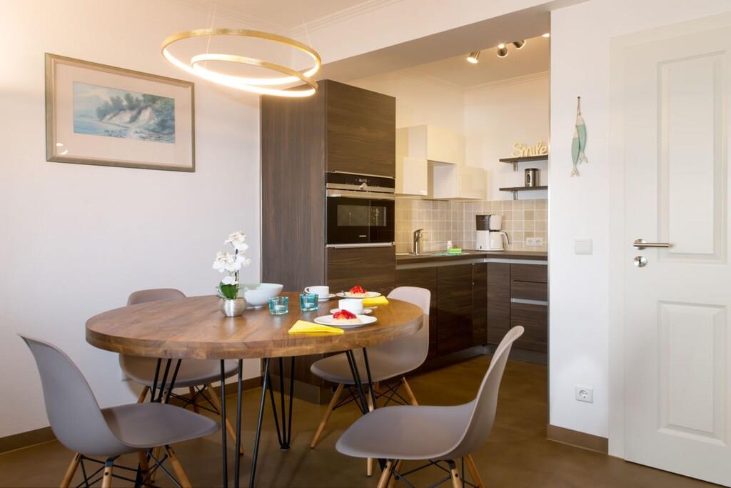 Im April 2019 komplett renoviert und neu hochwertig eingerichtet. Schönes helles und freundliches Appartement für bis zu 4 Personen mit großem Balkon. Nur 30 m von der Strandpromenade und dem Strandabgang entfernt. Die Wohnung befindet sich im 1. Obergeschoß im Neubau der Villa Seeadler mit Aufzug und Tiefgaragenstellplatz (normaler geräumiger Stellplatz, kein Duplexparkplatz!) incl. Benutzung zweier Fahrräder. Unser beliebtes Appartement mit einer Größe von 45 qm und einem 9 qm großen Balkon ist komfortabel eingerichtet und verspricht durch seine helle angenehme Atmosphäre einen unbeschwerten Aufenthalt. Man fühlt sich einfach in dieser Wohnung wohl. Dieses Appartement verfügt über einen perfekten Grundriß mit praktischem Ankleidezimmer zwischen Schlafzimmer und Badezimmer. Wohnizmmer mit bequemer Schlafcouch, Elektrischer Kaminofen und Flat TV. WLan Flat inkl. Die Schlafcouch ist sehr bequem mit Lattenrost und vollwertiger Matratze. Moderne Küche mit Induktionsherd, Backofen, Kühlschrank mit Gefrierfach, Spülmaschine und viel Stauraum. Außerdem: Kaffeemaschine, Wasserkocher, Toaster, Eierkocher und großer Anzahl an Geschirr. Schlafzimmer mit sehr bequemen Bugatti Boxspringbett. Sehr edles Bad mit italienischem Antikmarmor, Fußbodenheizung und großem Spiegel. Große Echtglas-Dusche, WC und Föhn. Großer Balkon mit Esstisch für 4 Personen sowie zwei Sonnenliegen.