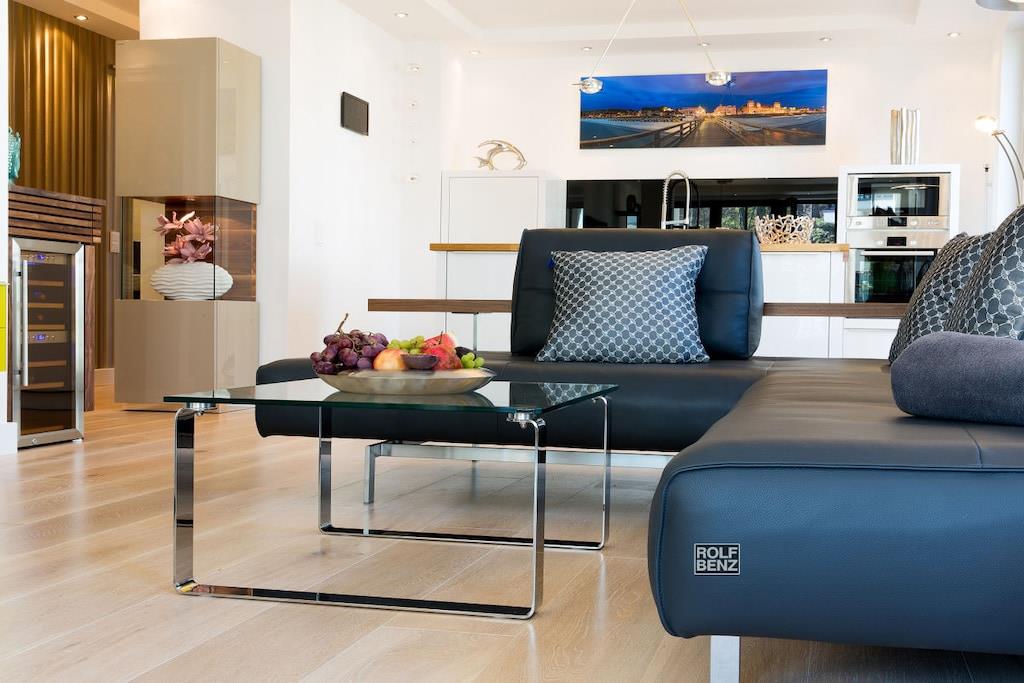 Eine außergewöhnliche Wellness Suite in den Parkvillen, welche höchsten Ansprüchen gerecht wird. 360°Panoramarundgang: www.villa-amalie-binz.com 120qm Luxus+Entspannung! Diese Wohlfühl-Suite hat einen großen offenen Wohnbereich mit Küche+Essen, 2 Schlafzimmer+2 Bäder mit Rainshowerduschen. Wellness pur: Klafs Sauna mit Aroma-,Tropen-und Dampfbad sowie einer Physiotherm Infrarotkabine. Edelste Designermöbel (Rolf Benz, Joop, Hülsta) runden das Ambiente ab. Küchenaustattung mit Induktionskochfeld, Spülmaschine, Backofen, Mikrowelle+Weinkühlschrank. Die Suite hat 2 große Balkone, einer von den Schlafzimmern begehbar, der andere über den Wohnbereich, welcher einen herrlichen Blick in den parkähnlichen Garten und den 75qm großen Pool bietet