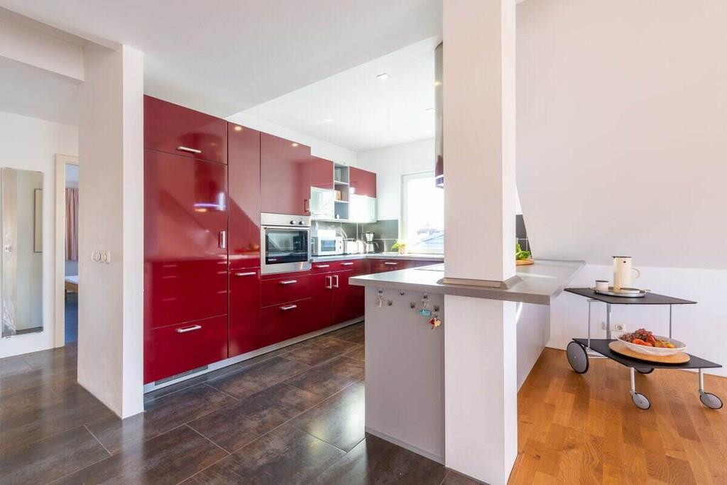 Das komfortabel und sehr geschmackvoll eingerichtete Appartement im zweiten Stock verfügt über ein ca. 50 qm großes Wohn-Esszimmer. Der Fußboden ist in Eichenparkett ausgeführt. Der großzügige Eingangsbereich und die Küche sind hochwertig gefliest. Die elegante Küche hat einen Geschirrspüler und erfüllt hohe Ansprüche. Die Besonderheit im Bad ist eine verglaste 100 x 150 cm Dusche mit Regenbrause; außerdem gibt es ein Gäste WC. Der schnelle Internetzugang ist inklusive. Der Strandkorb steht Ihnen saisonabhängig zur freien Verfügung. Wir freuen uns auf Ihren Besuch an der Ostsee!