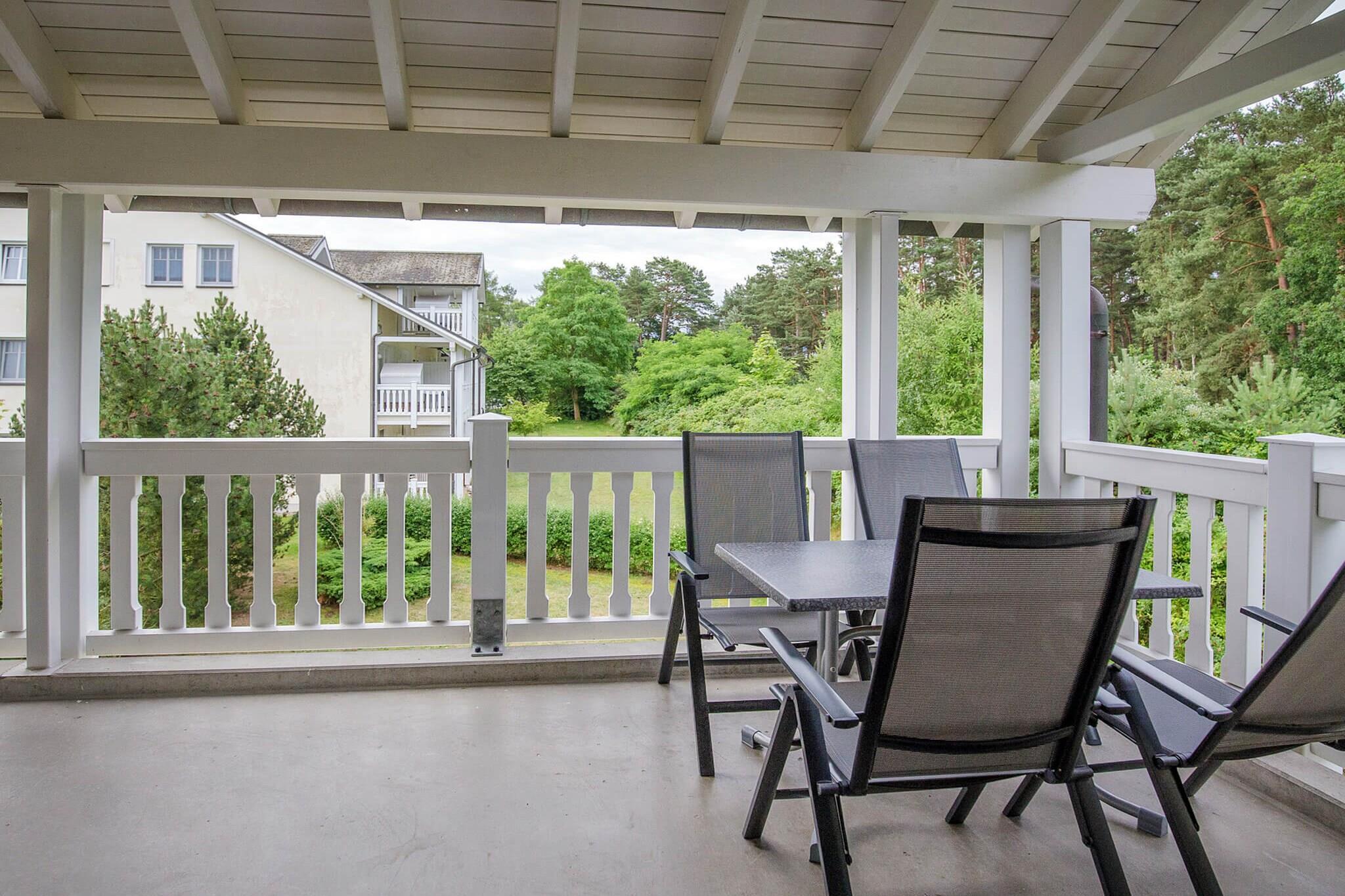Moderne Ferienwohnung im Dünenpark Binz nahe Strand und Promenade mit WLAN und Gartenmöbeln.