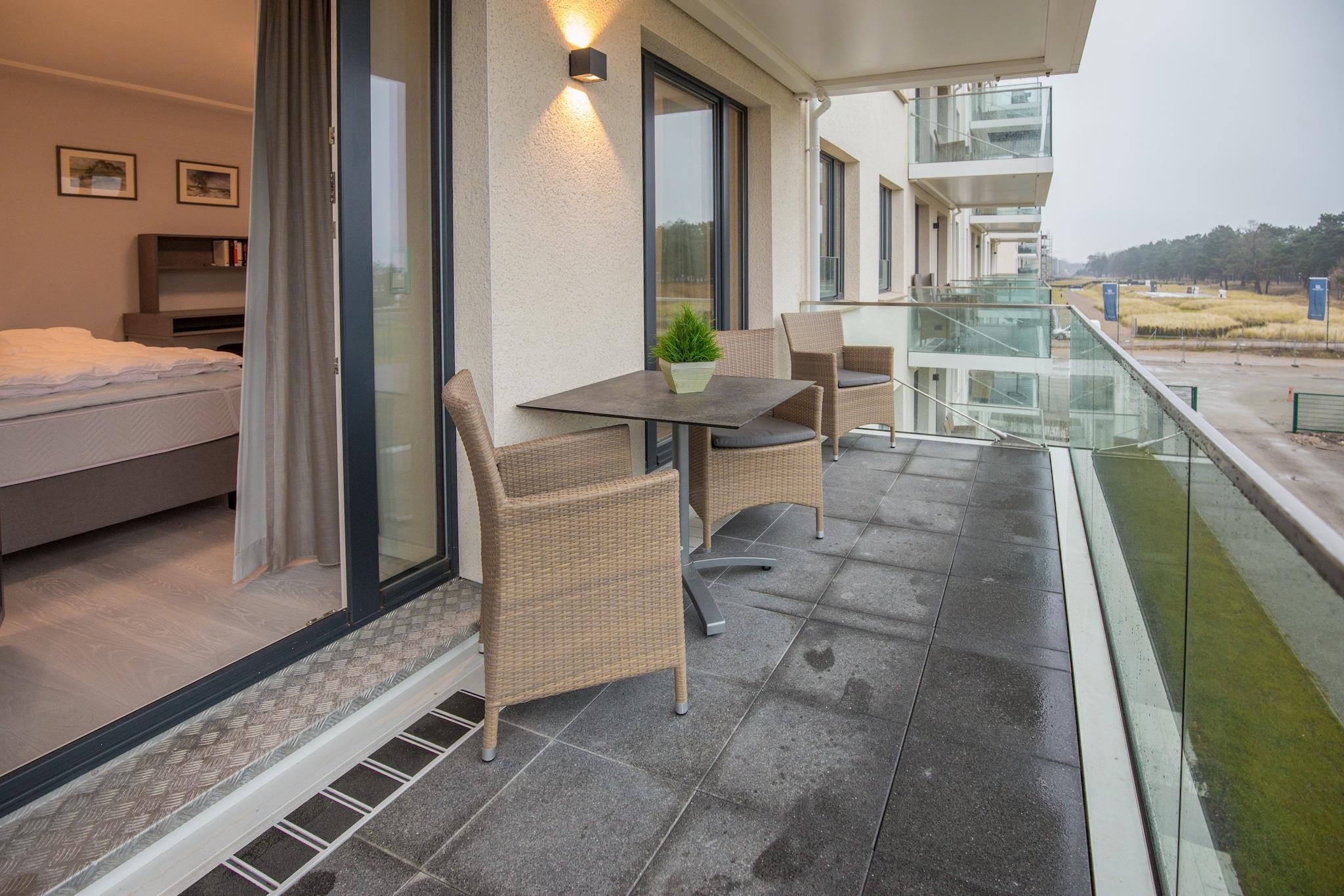 Moderne Ferienwohnung in Dünenresidenz Prora mit Balkon, nah am Strand und vielfältigen Freizeitmöglichkeiten für Familien.