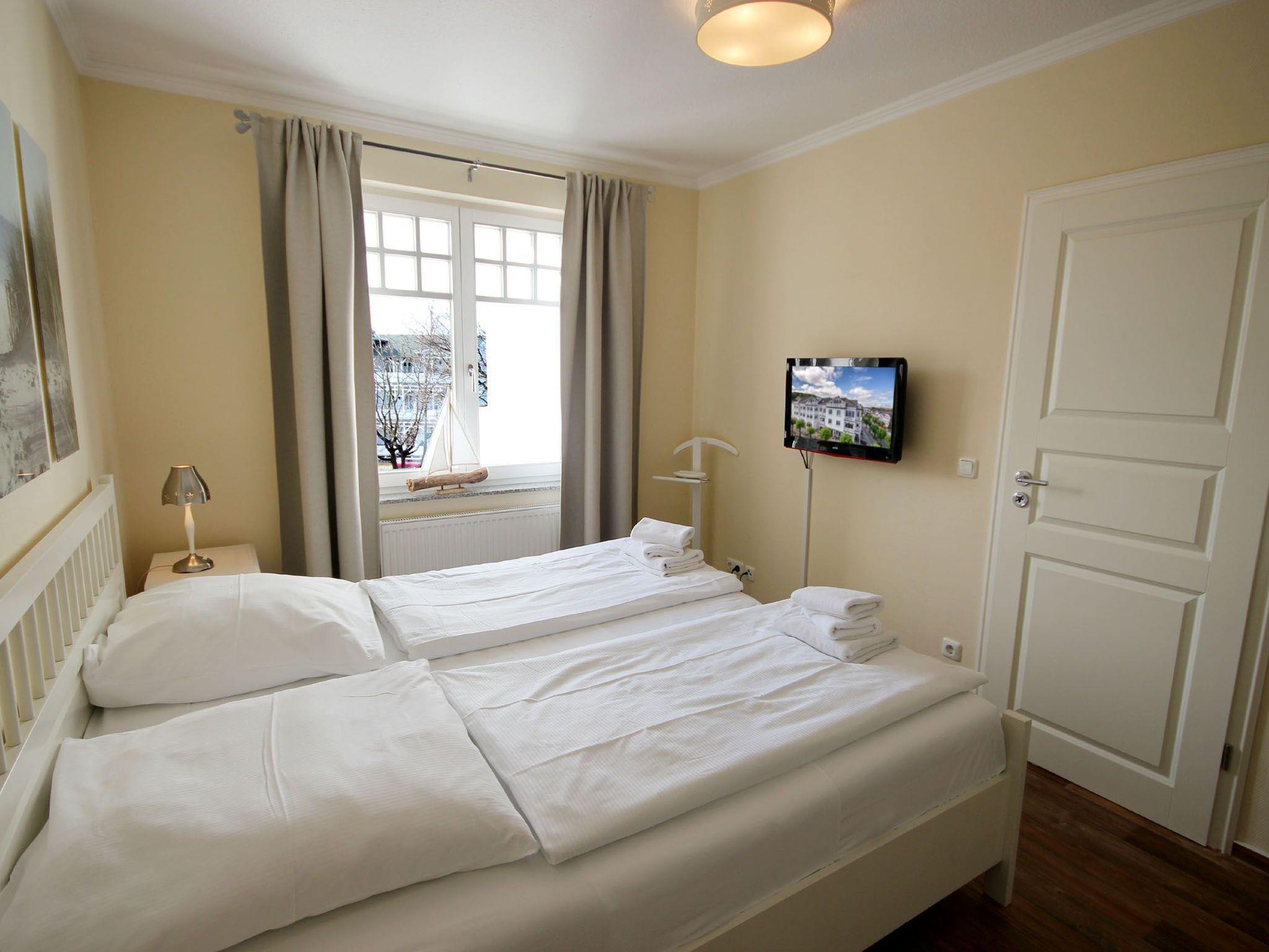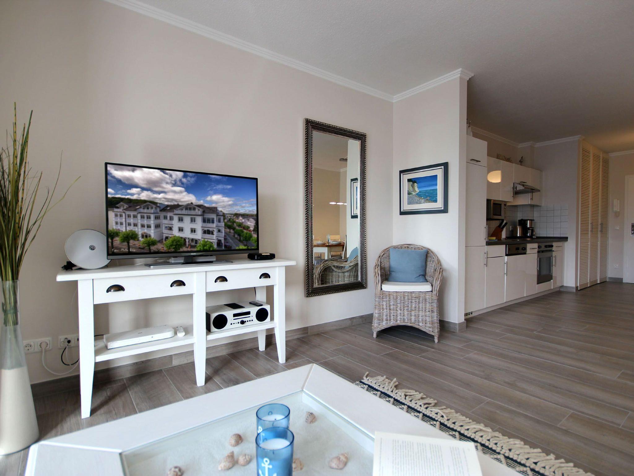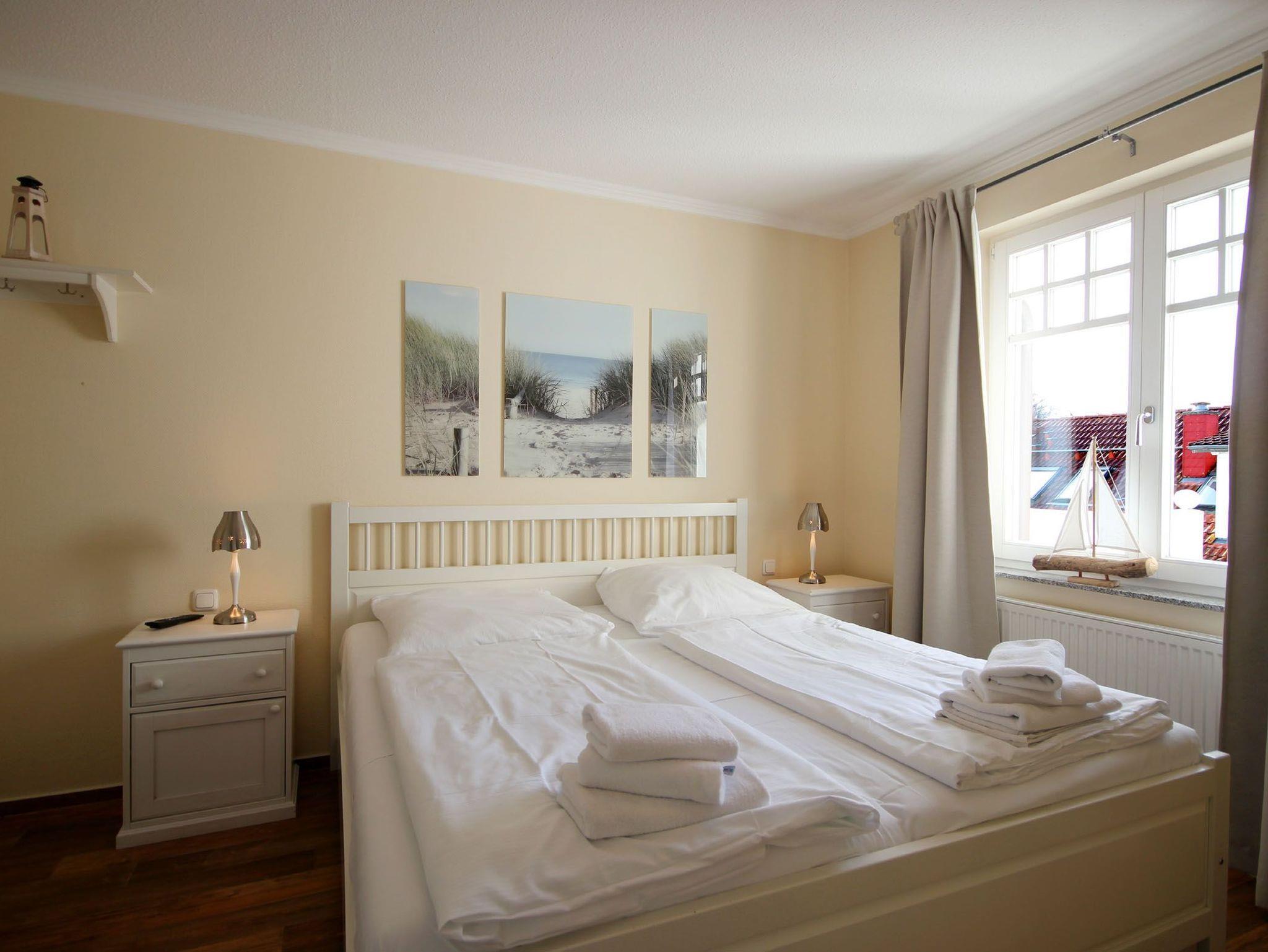 Ihre geschmackvoll sanierte Nichtraucher-Ferienwohnung 21RB14 befindet sich im 2. Obergeschoss der Villa. Die modern und freundlich eingerichtete 2-Raumwohnung hat eine Größe von ca. 53 qm und ist mit bis zu 4 Personen belegbar. Ein schöner Balkon nach Süden ist der Wohnung vorgelagert. Neben dem maritim eingerichteten Wohnraum mit integrierter Küchenzeile gibt es einen separaten Schlafraum und ein modernisiertes Badezimmer mit Waschtisch, großzügiger Dusche (120 x80 cm) mit komfortablen Einstieg und WC. Im Schlafraum befindet sich ein Doppelbett, ein Kleiderschrank sowie ein Flachbildfernseher. Im Wohnraum können auf dem Schlafsofa weitere zwei Personen schlafen. Sie finden dort auch einen Flachbildfernseher, WLAN, Bluetooth-Lautsprecher, Blu-ray-Player und ein CD-Radio. Die Küche ist mit Geschirrspülmaschine, Mikrowelle, Cerankochfeld, Backofen, Kühlschrank mit kleinem Gefrierfach, zusätzlicher Kaffeepad Maschine und diversen Kleingeräten komplett ausgestattet. Der Eingangsbereich der Wohnung verfügt zusätzlich über einen Einbauschrank, welcher ausreichend Stauraum bietet. Kleine Haustiere sind herzlich Willkommen. Ein Garagenstellplatz ( Duplexparker ? 1,50 m hoch - ausgeschlossen sind Kombifahrzeuge ) gehört zur Wohnung.