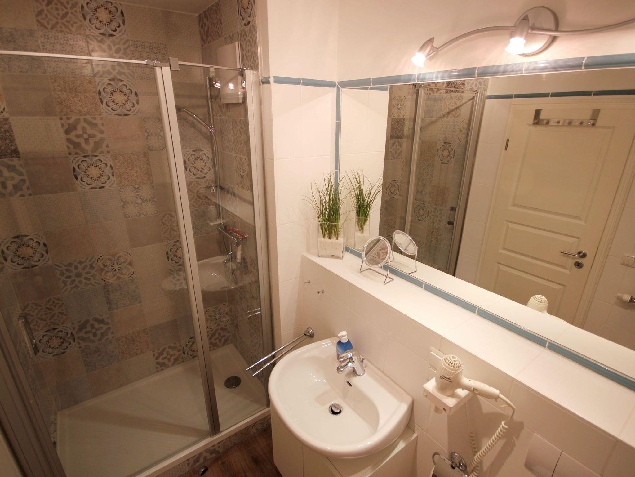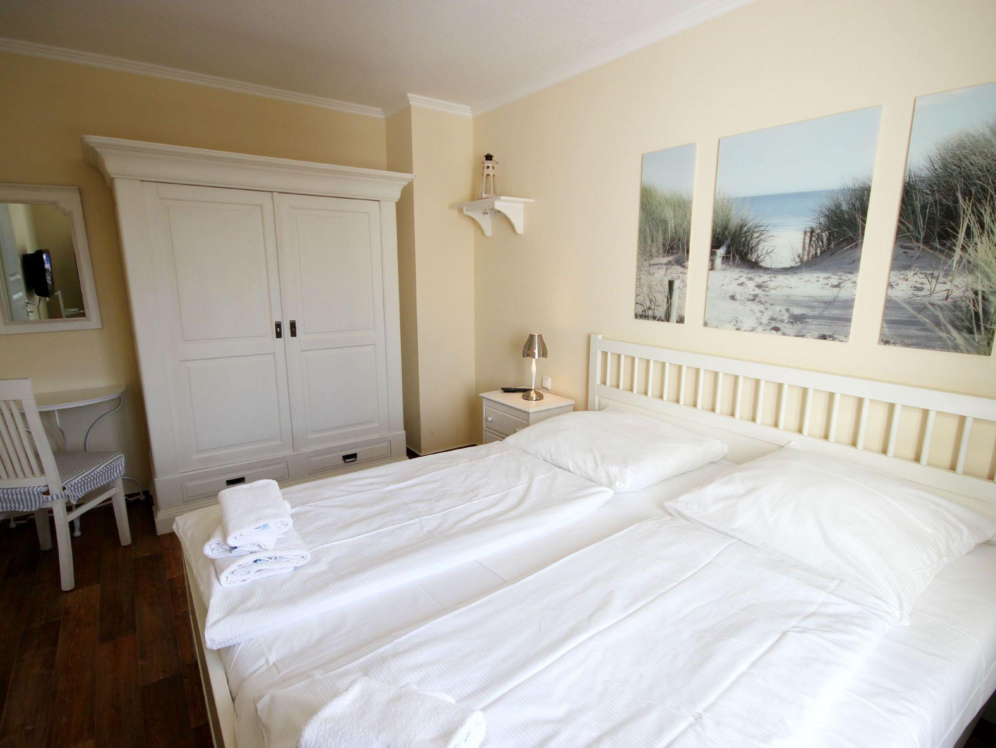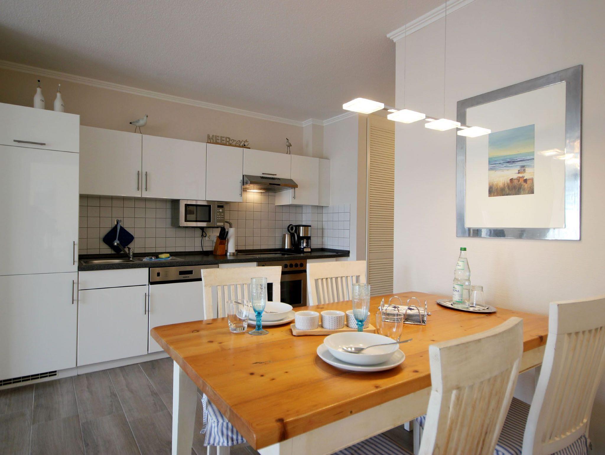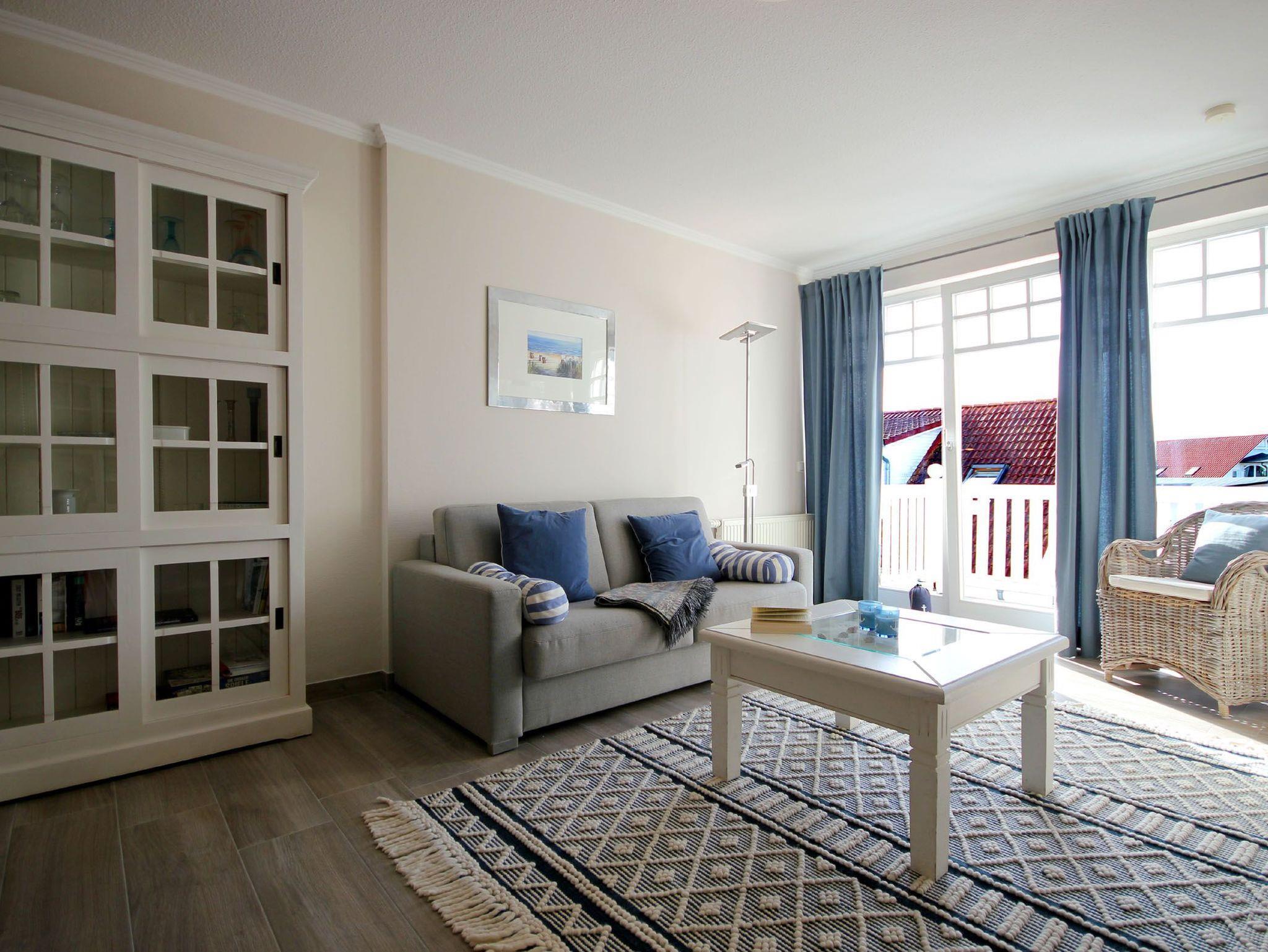 Ihre geschmackvoll sanierte Nichtraucher-Ferienwohnung 21RB14 befindet sich im 2. Obergeschoss der Villa. Die modern und freundlich eingerichtete 2-Raumwohnung hat eine Größe von ca. 53 qm und ist mit bis zu 4 Personen belegbar. Ein schöner Balkon nach Süden ist der Wohnung vorgelagert. Neben dem maritim eingerichteten Wohnraum mit integrierter Küchenzeile gibt es einen separaten Schlafraum und ein modernisiertes Badezimmer mit Waschtisch, großzügiger Dusche (120 x80 cm) mit komfortablen Einstieg und WC. Im Schlafraum befindet sich ein Doppelbett, ein Kleiderschrank sowie ein Flachbildfernseher. Im Wohnraum können auf dem Schlafsofa weitere zwei Personen schlafen. Sie finden dort auch einen Flachbildfernseher, WLAN, Bluetooth-Lautsprecher, Blu-ray-Player und ein CD-Radio. Die Küche ist mit Geschirrspülmaschine, Mikrowelle, Cerankochfeld, Backofen, Kühlschrank mit kleinem Gefrierfach, zusätzlicher Kaffeepad Maschine und diversen Kleingeräten komplett ausgestattet. Der Eingangsbereich der Wohnung verfügt zusätzlich über einen Einbauschrank, welcher ausreichend Stauraum bietet. Kleine Haustiere sind herzlich Willkommen. Ein Garagenstellplatz ( Duplexparker ? 1,50 m hoch - ausgeschlossen sind Kombifahrzeuge ) gehört zur Wohnung.