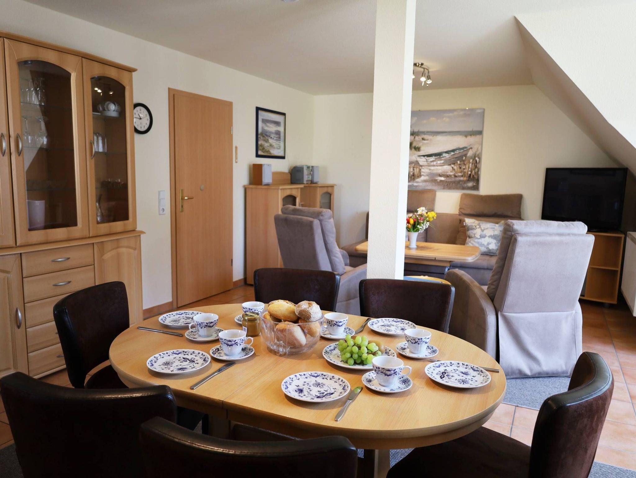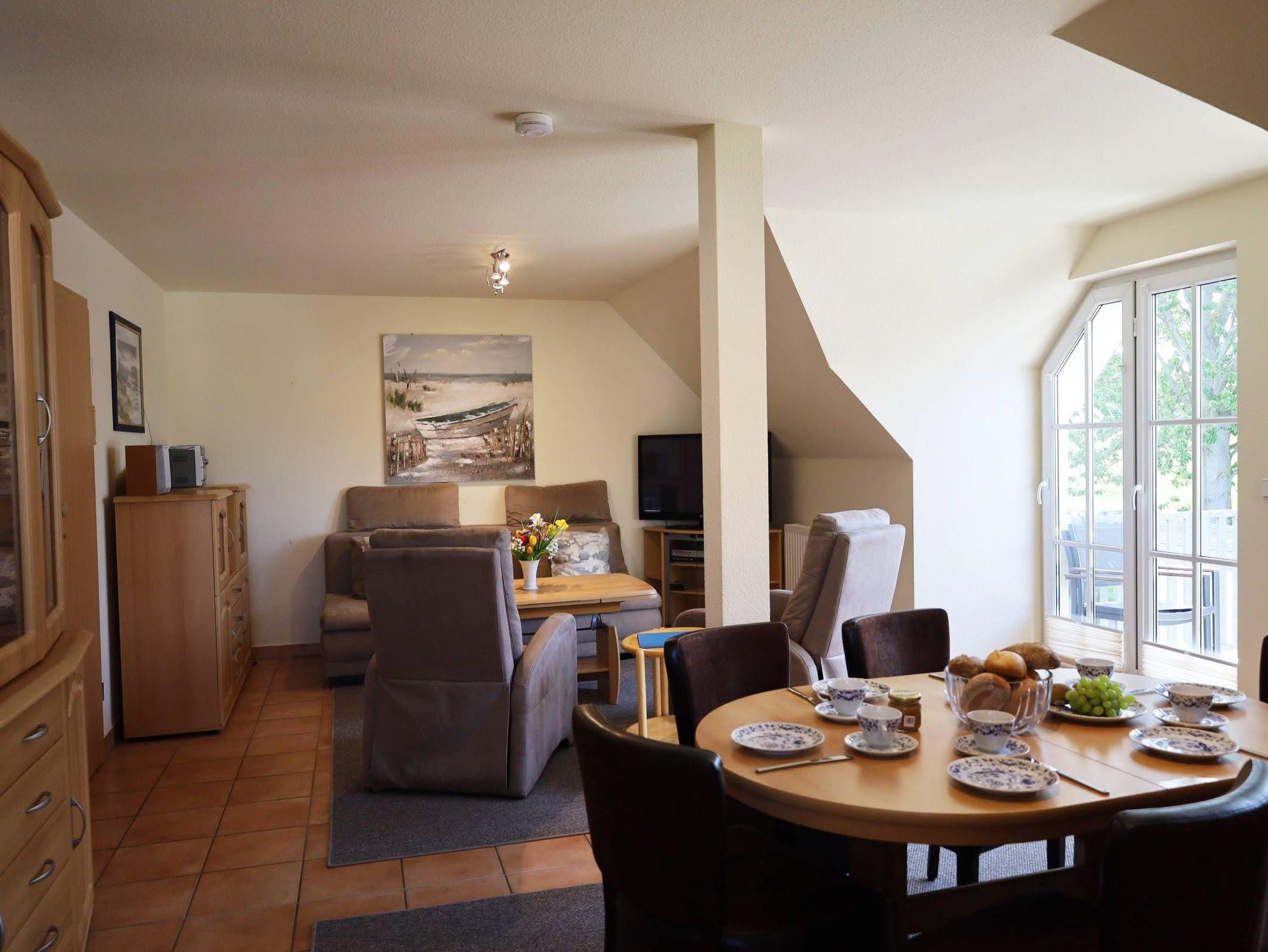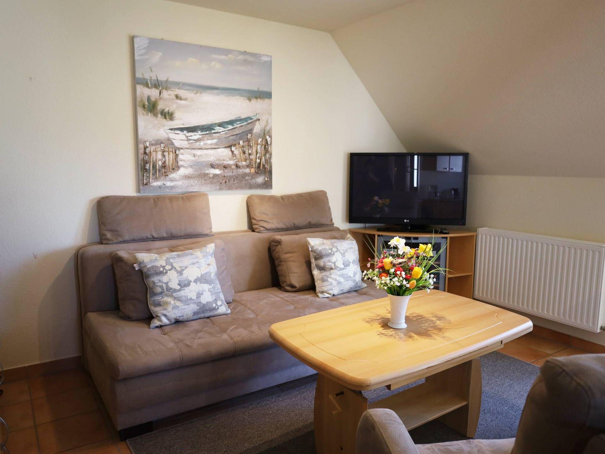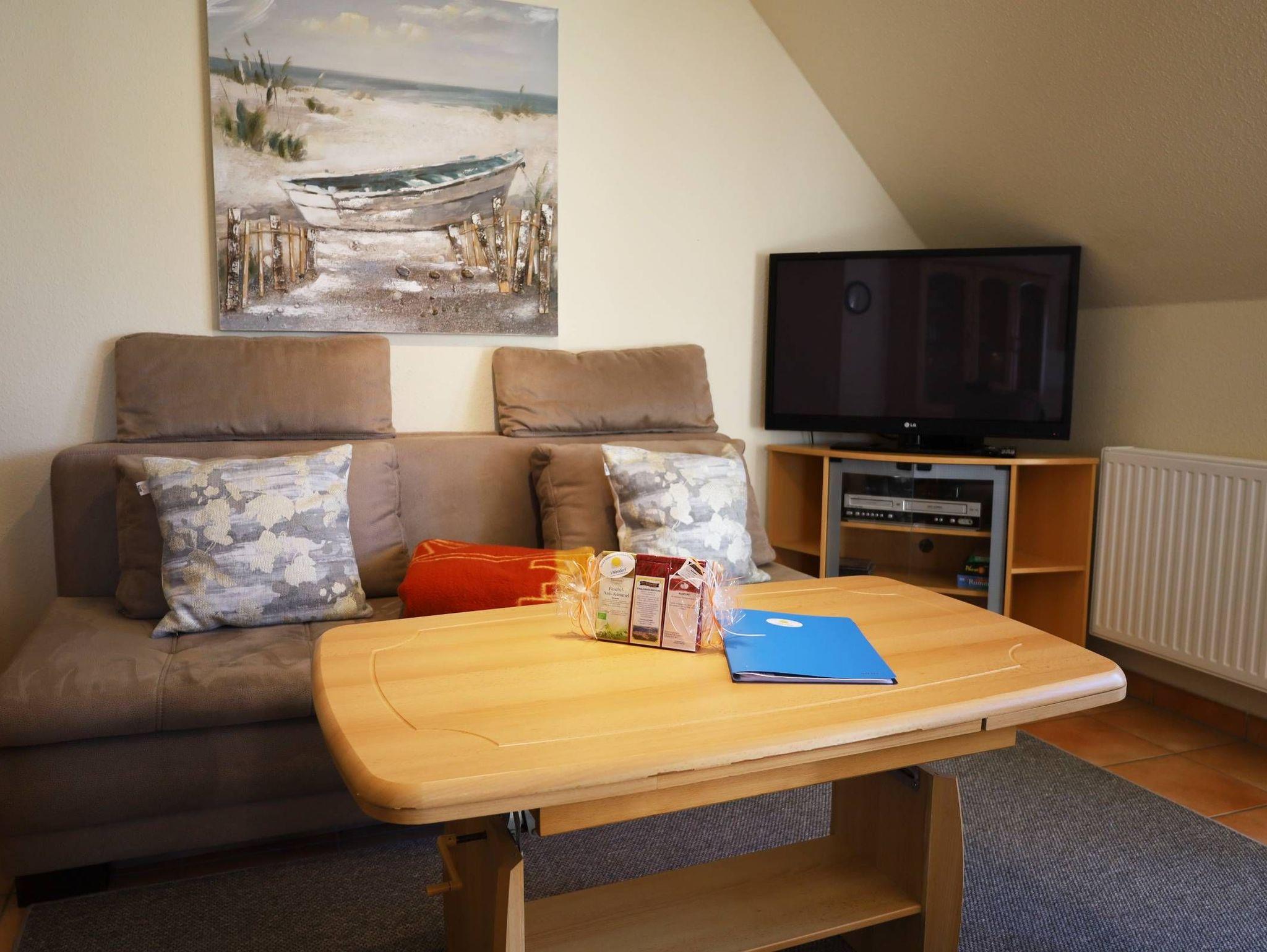 Das mit viel Liebe zum Detail eingerichtete 3-Raum-Wohnung ist ca. 85 m² gross und befindet sich im Obergeschoß. Ein großräumiger Wohnbereich mit gemütlichen Schlafsofa, für die 5. und 6. Person, sowie 2 Sesseln lädt zur lauschigen Runde ein. Flachbildfernseher, Hifi-Anlage und DVD-Player sind ebenfalls vorhanden.
