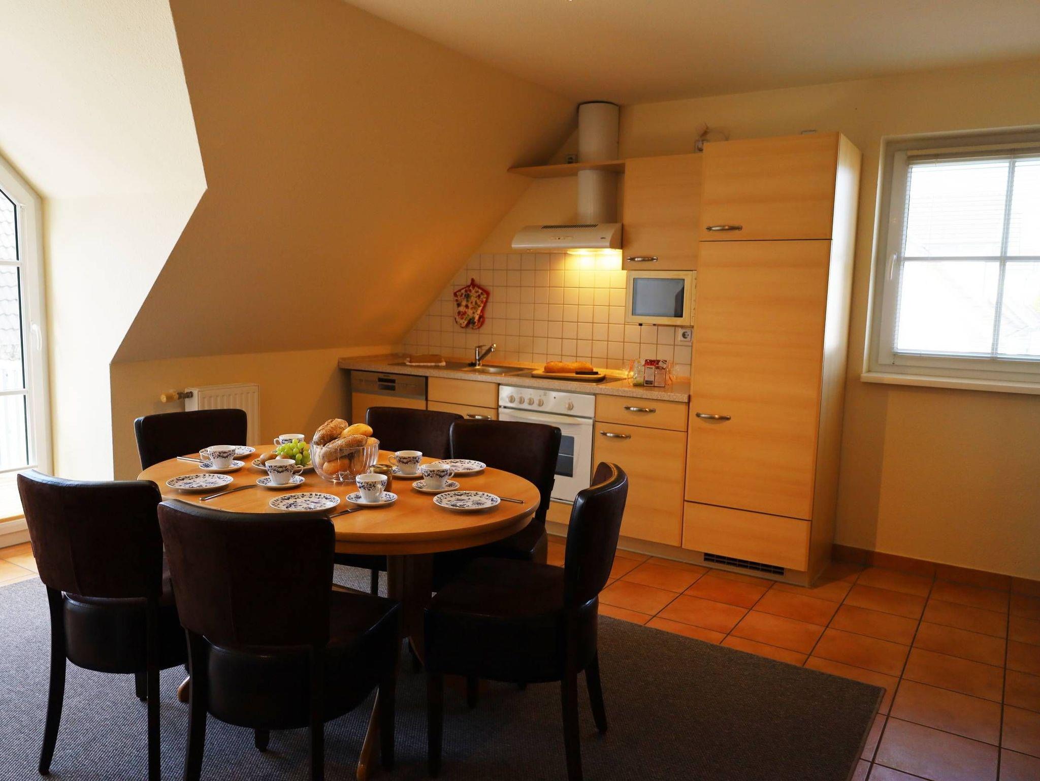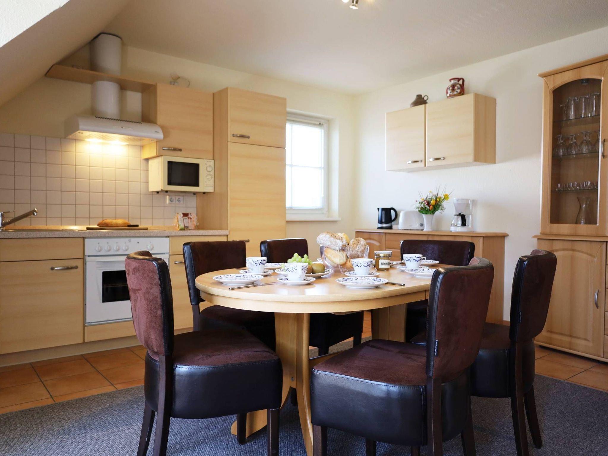 3-Zimmer-Eigentumswohnung mit separaten Eingang über zwei Etagen (1. Obergeschoss und Dachgeschoss) in einem Mehrfamilienhaus mit Balkon in Südlage bietet Platz für bis zu 6 Personen.