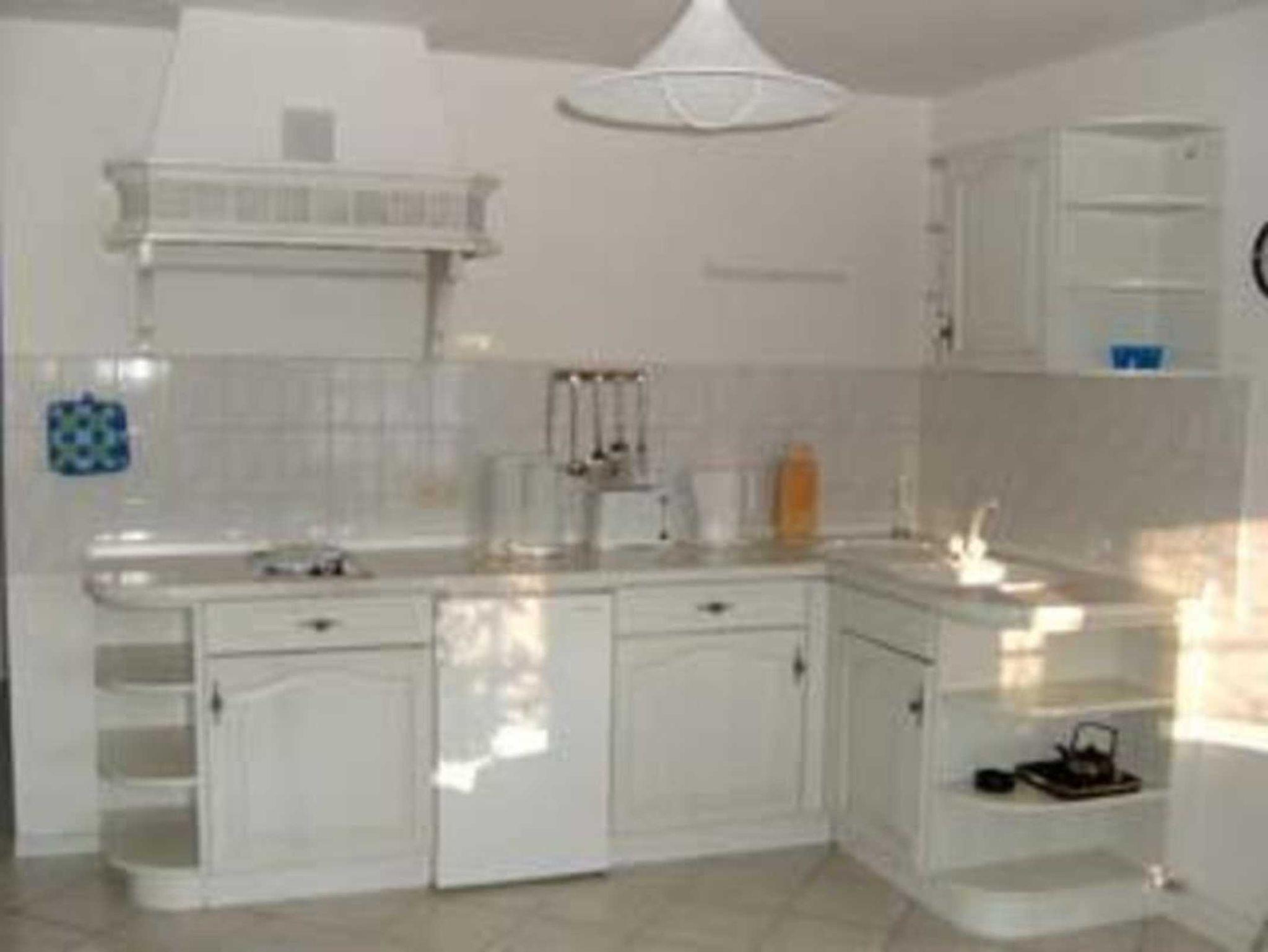 Wohnküche als Durchgangszimmer (ca.20m²) mit integriertem verglasten Balkon (4m²), Ausziehcouch für 2 Pers.1,60x2,0m, Eßtisch für 4 Personen, Küchenzeile mit Kühlschrank, 3 Platten-Cerankochfeld, Spüle, Mikrowelle, Kaffeemaschine, Wasserkocher, Toaster, Geschirr, TV, Radio. Flur und Duschbad mit je 4m².