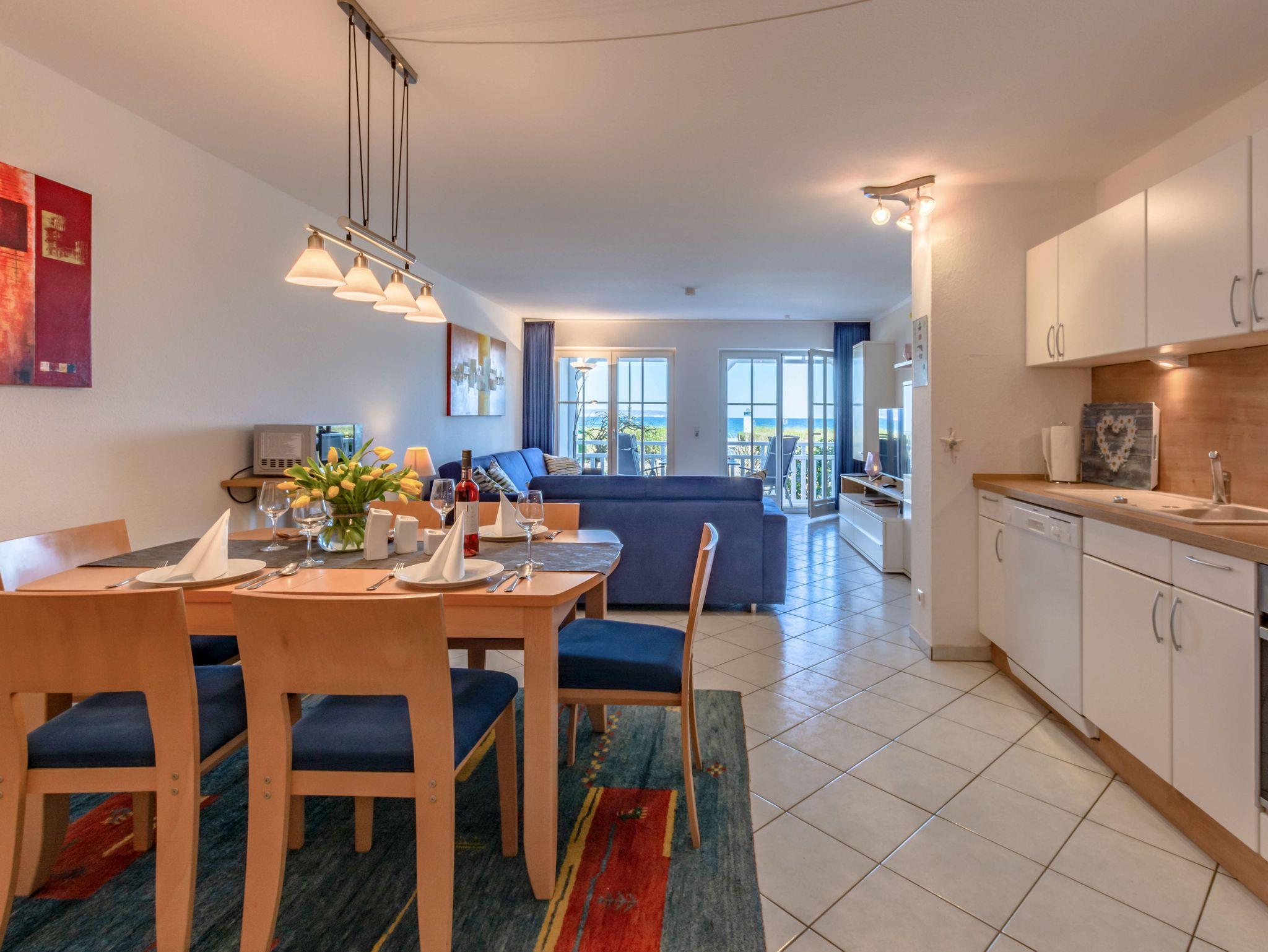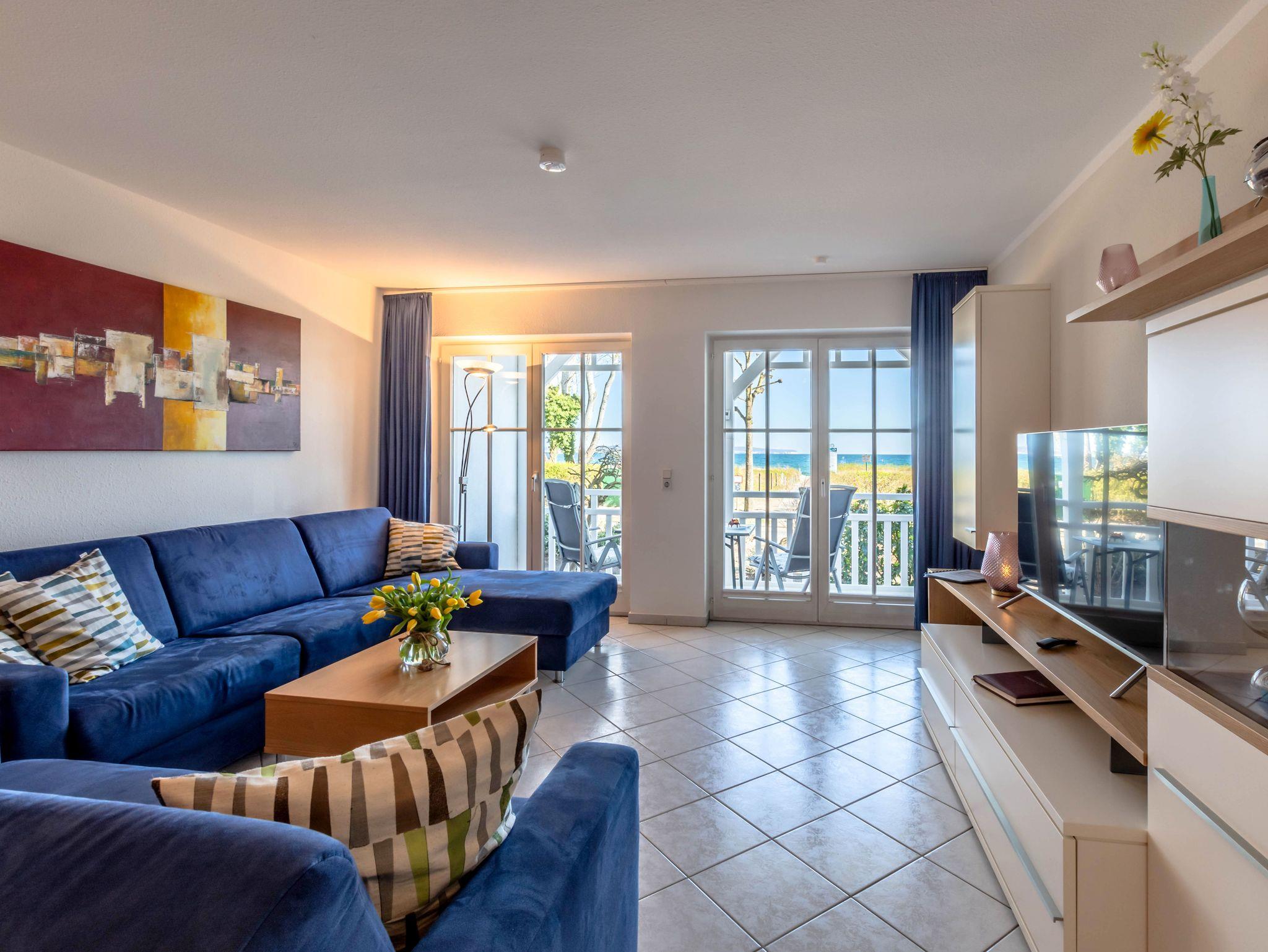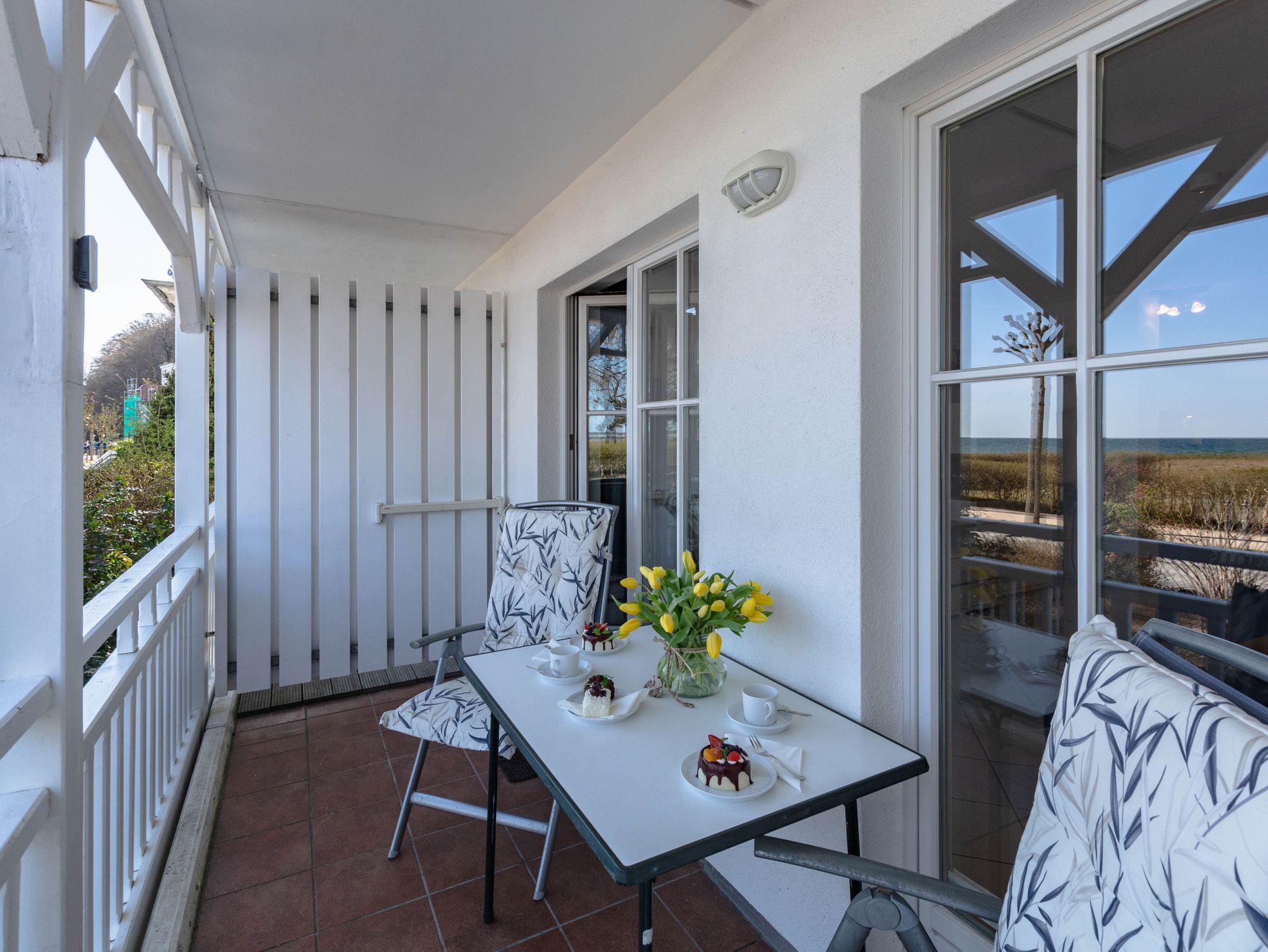 Modernes 2-Raum-Apartment mit Meerblick direkt an der Binzer Strandpromenade, ideal für entspannte Ferien am Ostseestrand.