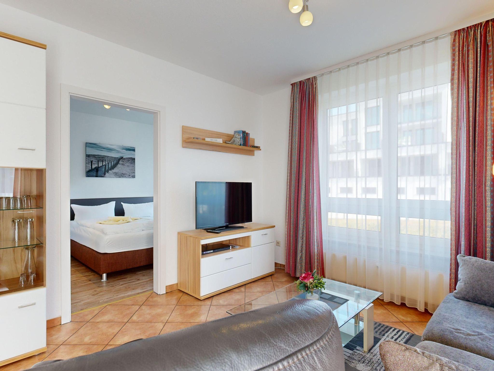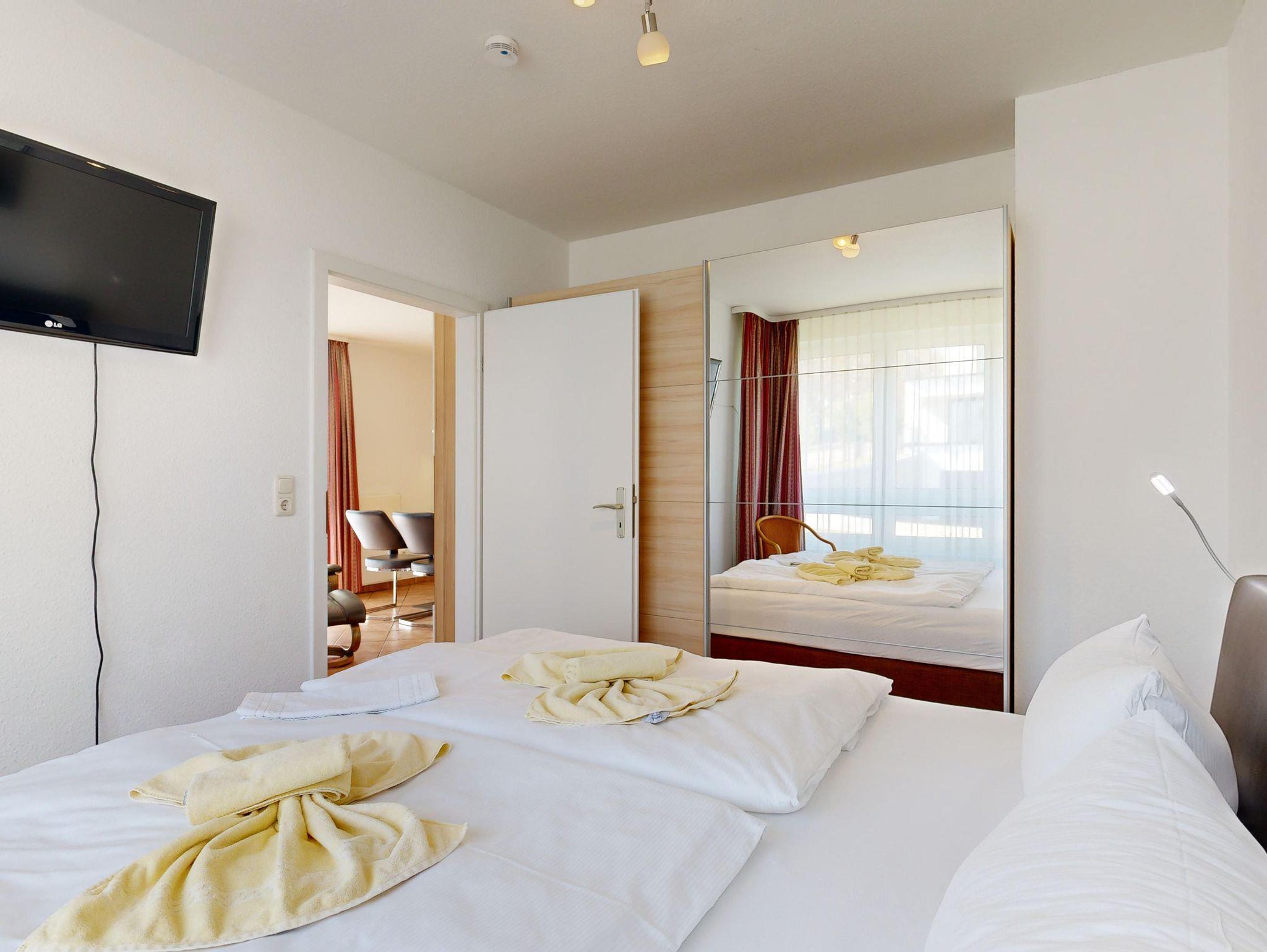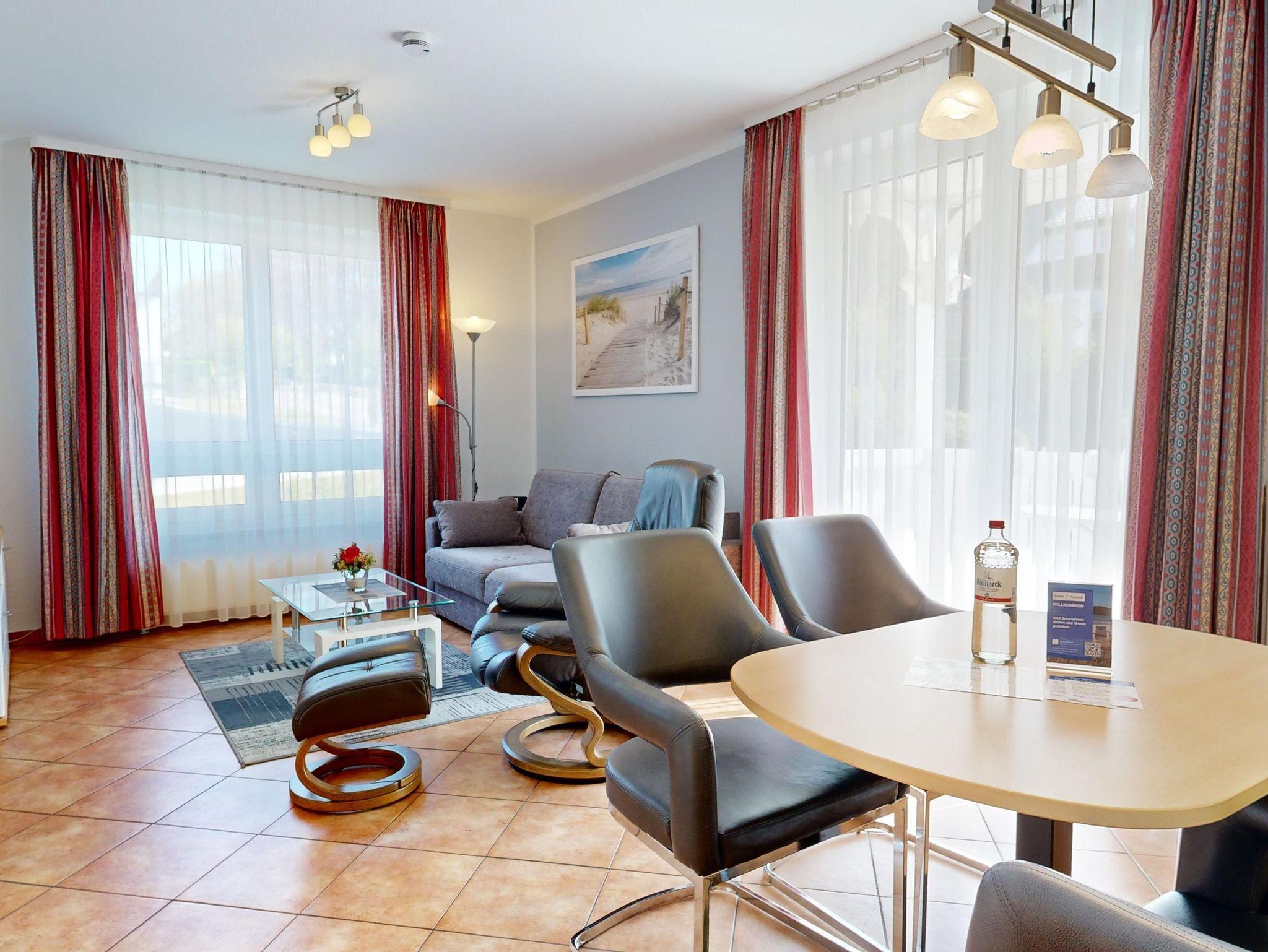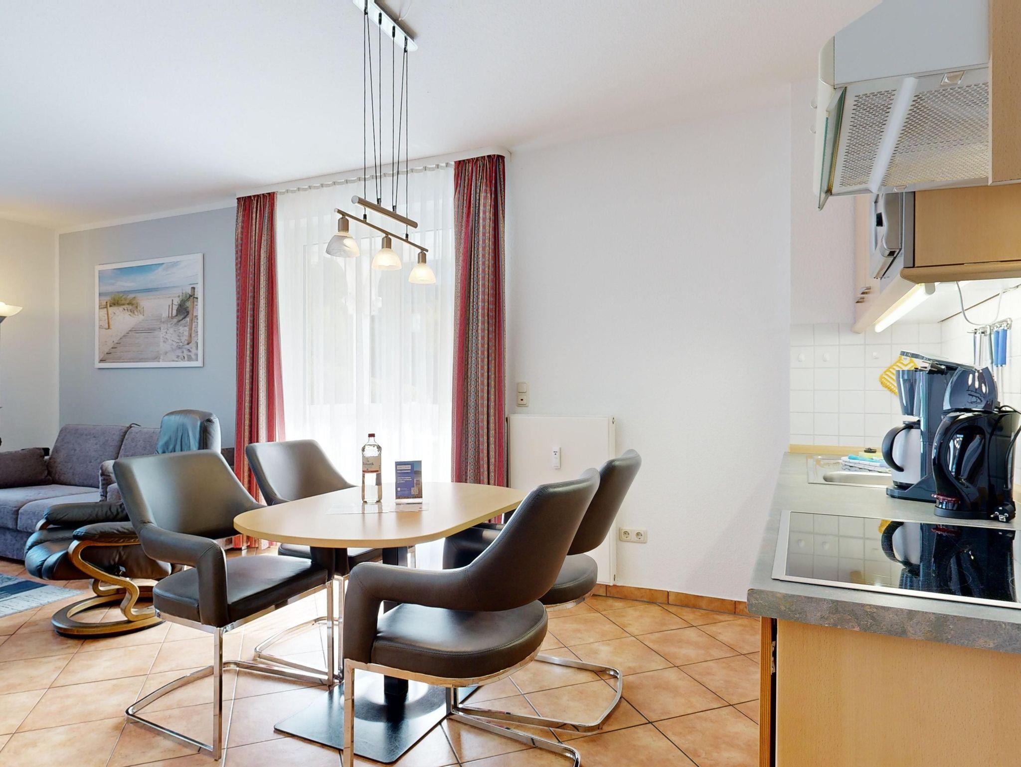 Ferienwohnung Binzer Sterne 14 für bis zu 4 Personen im 1. OG (2 Zimmer / 45 m²) des Appartementhauses Binzer Sterne, 1 Schlafzimmer, Parkplatz (gegen Gebühr) und freies WLAN.