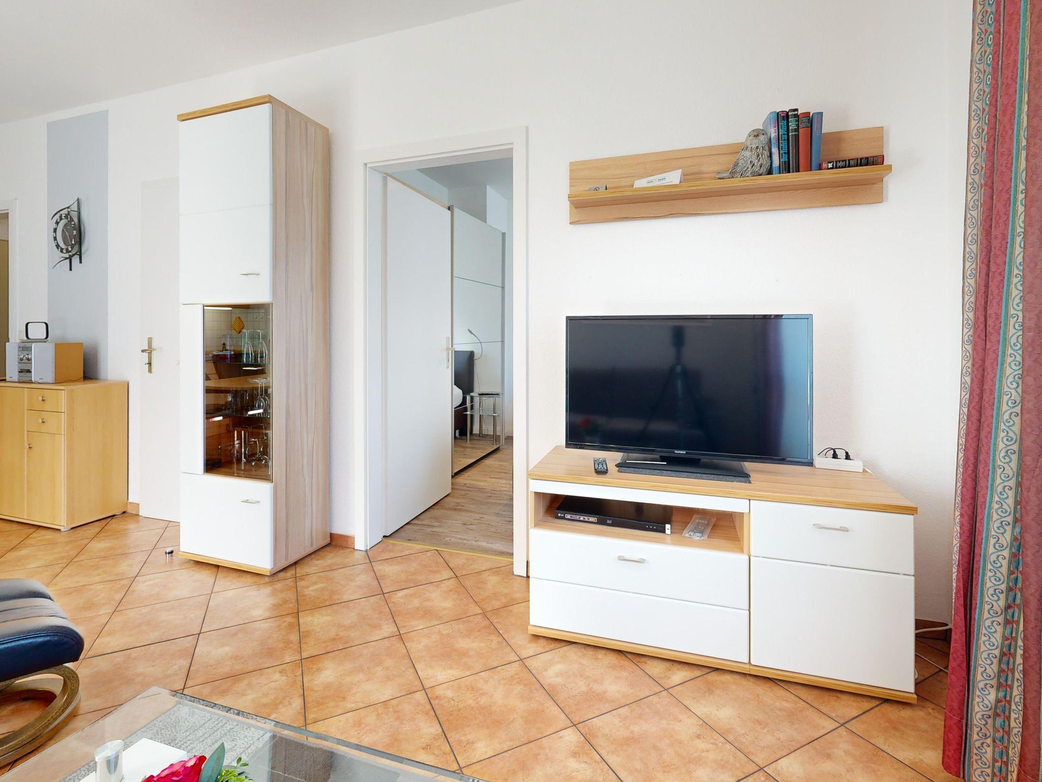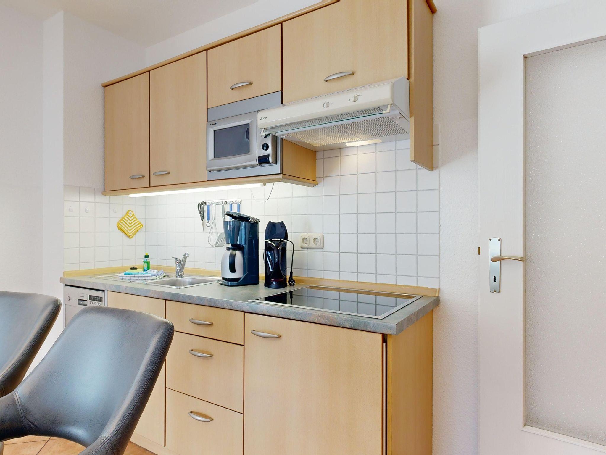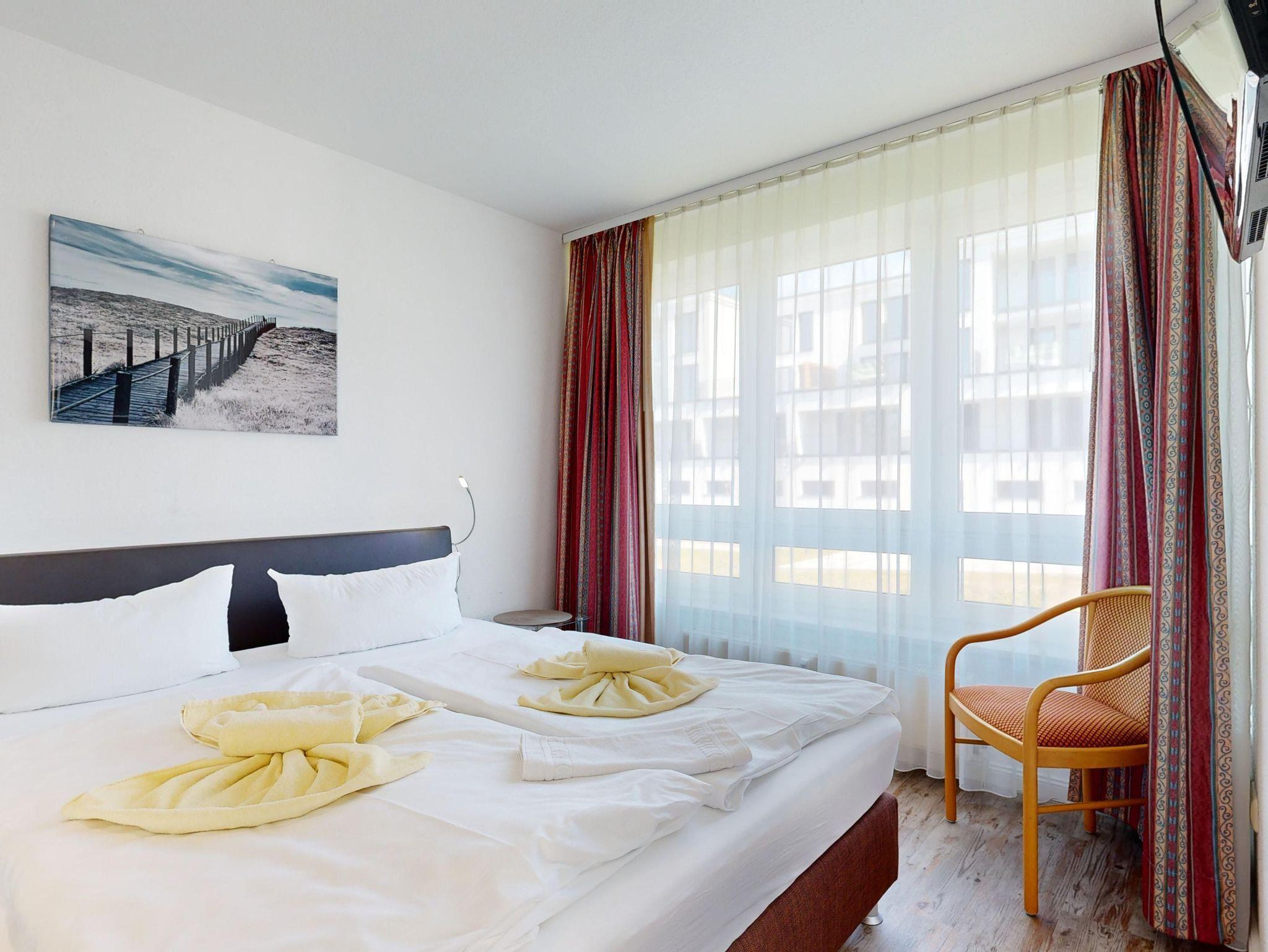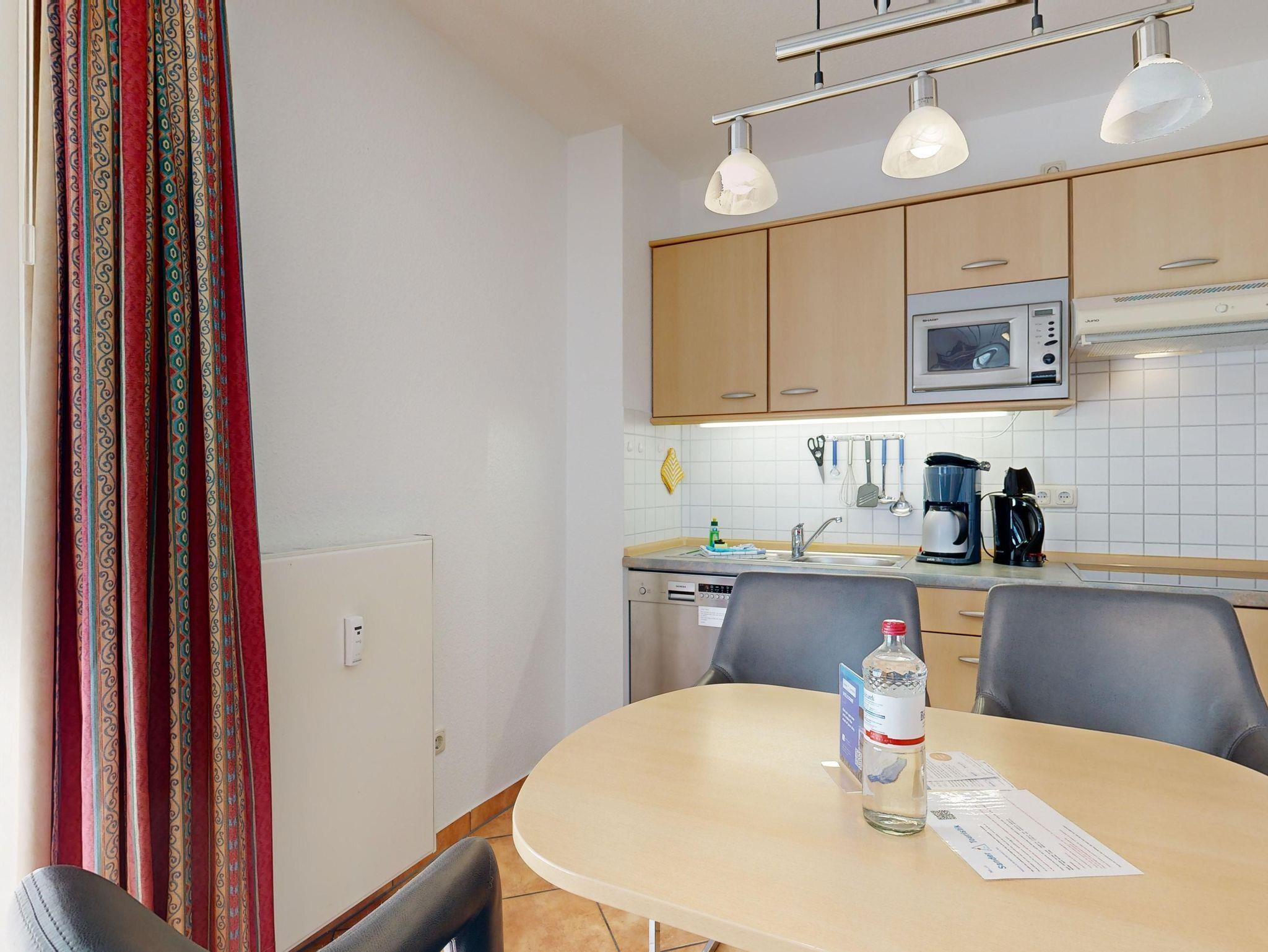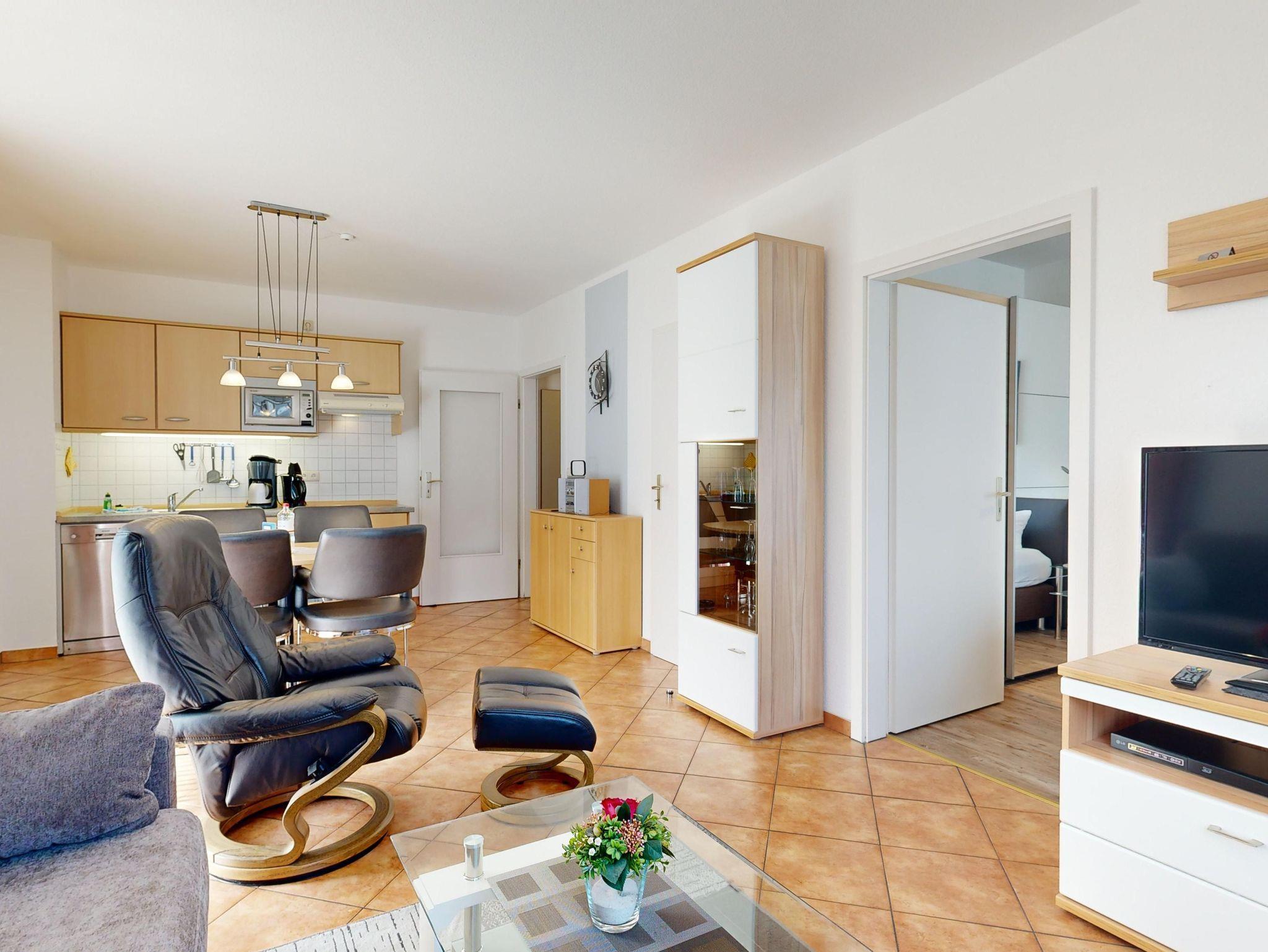 Ferienwohnung Binzer Sterne 14 für bis zu 4 Personen im 1. OG (2 Zimmer / 45 m²) des Appartementhauses Binzer Sterne, 1 Schlafzimmer, Parkplatz (gegen Gebühr) und freies WLAN.