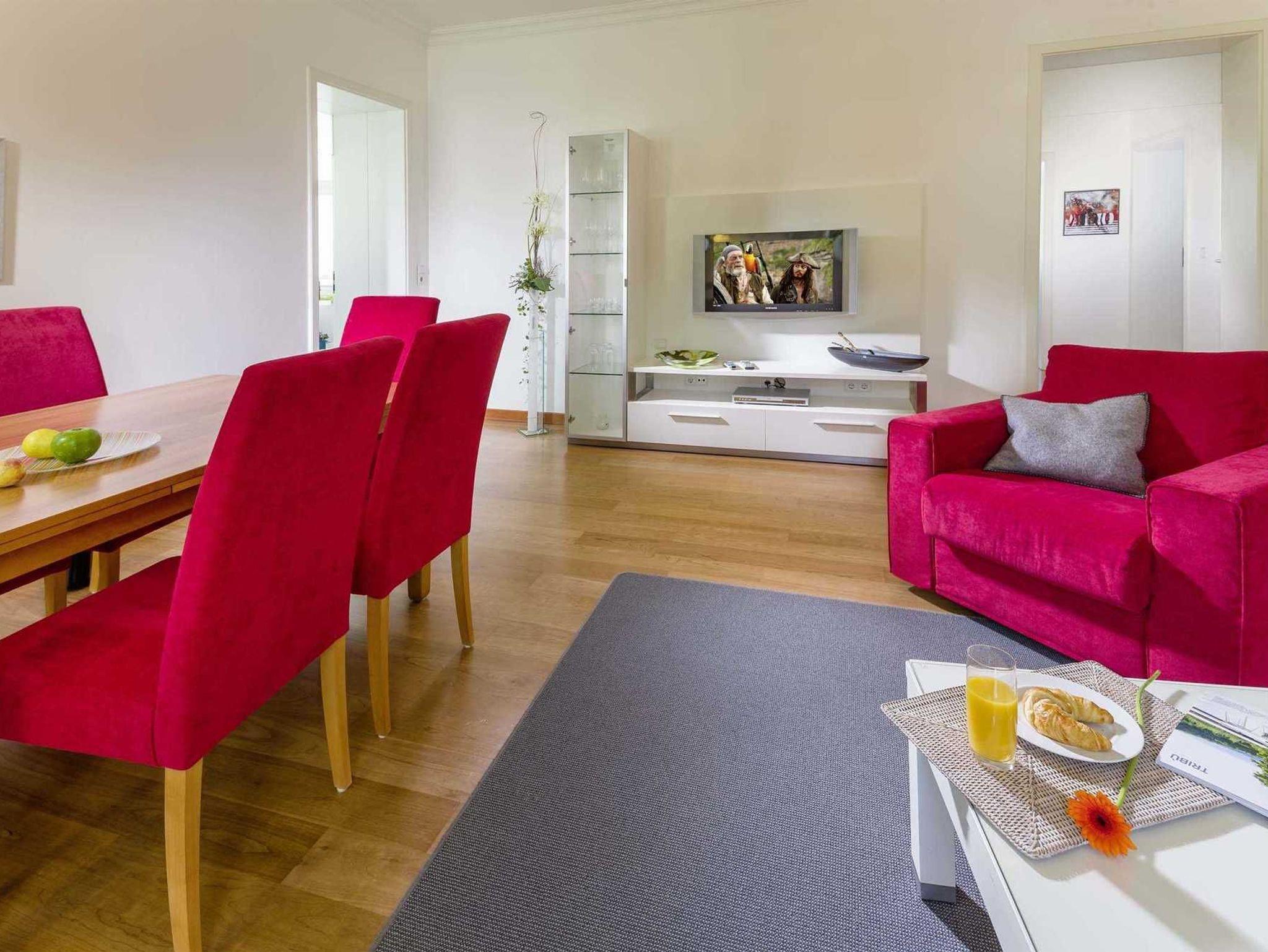 Neben dem schön eingerichteten Wohnraum gibt es eine separate Küche, zwei großzügige separate Schlafräume und zwei Badezimmer mit Waschtisch, Dusche und WC. In beiden Schlafräumen befindet sich jeweils ein Doppelbett und ein Kleiderschrank. Im Wohnraum können auf dem Schlafsofa zwei Personen schlafen. Sie finden dort auch ein Telefon und TV mit Plasmabildschirm und DVD-Player. Die Küche ist mit Geschirrspülmaschine, Ceranfeld, Backofen, Mikrowelle, Kühlschrank und diversen Kleingeräten komplett ausgestattet. Ein PKW-Stellplatz steht Ihnen direkt am Haus zur Verfügung.