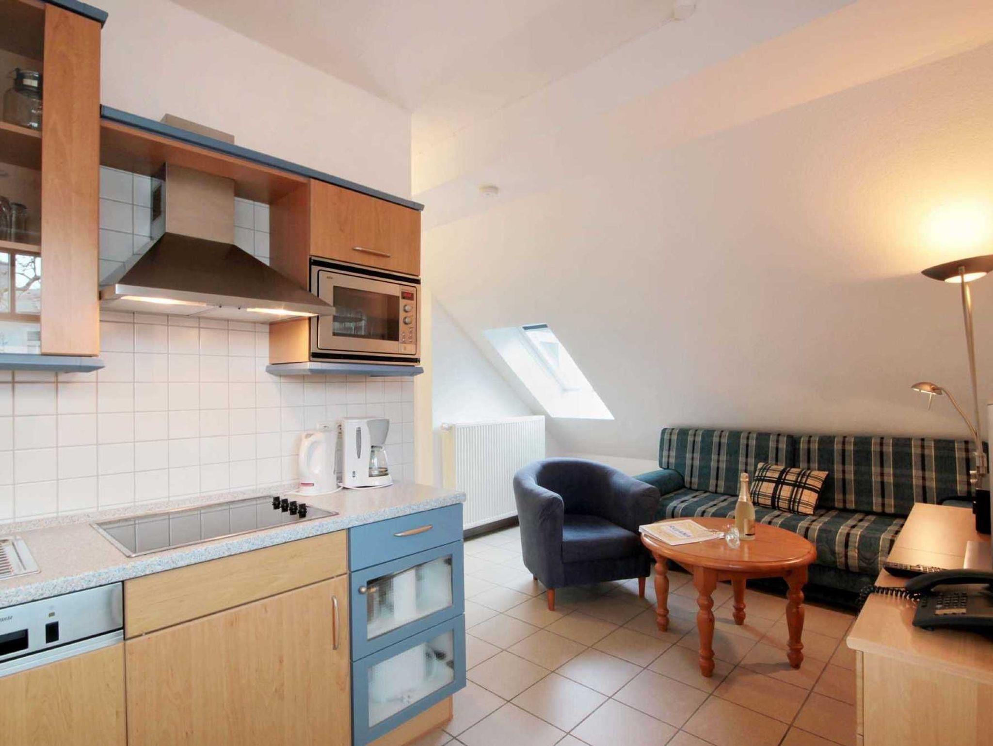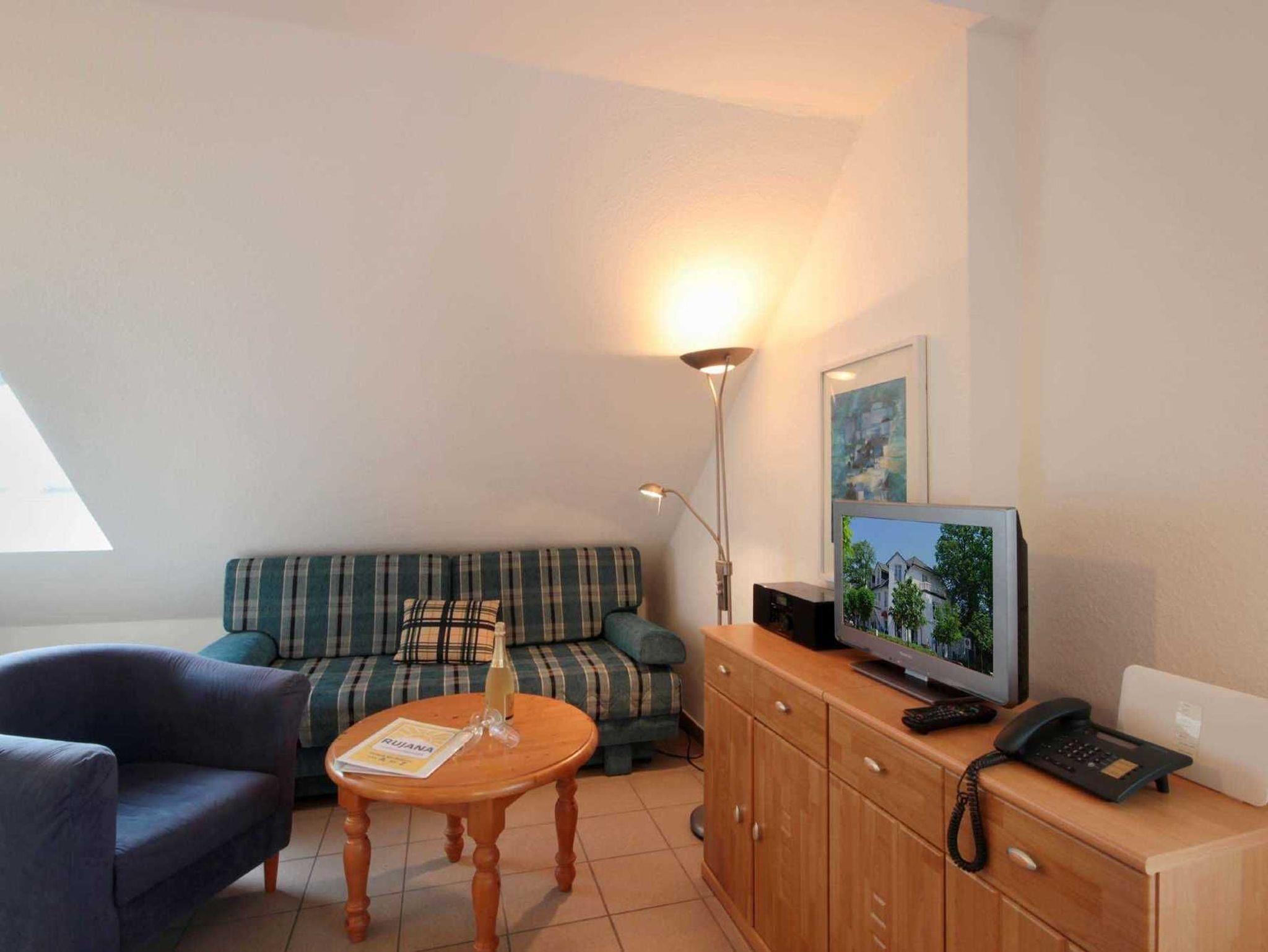 Ihre Ferienwohnung 90015 befindet sich im 2. Obergeschoß des Hauses. Die 1 Zimmer - Wohnung hat eine Größe von ca. 25 qm. Im Wohn-/Schlafraum mit integrierter Kochzeile befindet sich eine gemütliche Sitzecke mit Schlafsofa für 2 Personen. Ein separater Eßplatz ist ebenfalls vorhanden. Außerdem finden Sie im Wohnraum TV, Bluetooth-Musikanlage mit CD-Player und Telefon. Die Kochzeile ist mit Geschirrspülmaschine, Mikrowelle, Cerankochfeld, Kühlschrank und diversen Kleingeräten ausgestattet. Ein Badezimmer mit Dusche, Waschtisch und WC steht zu Ihrer Verfügung. Bei schönem Wetter bietet sich der Balkon mit Blick auf das Binzer Leben an. Alle unsere Gäste können einen kostenfreien WLAN-Zugang nutzen.
