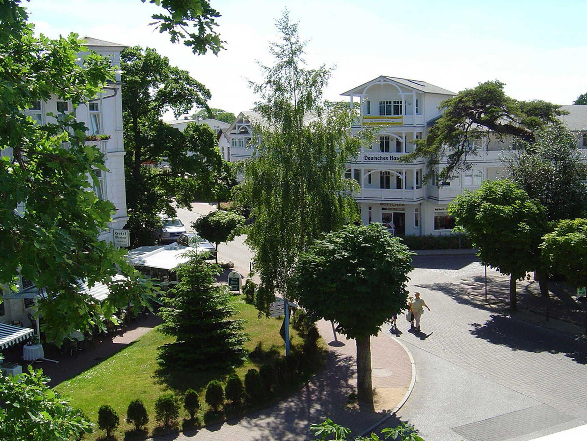 Gemütliche Ferienwohnung mit Balkon und Blick auf das lebhafte Binz, nur 150 m vom Strand entfernt.