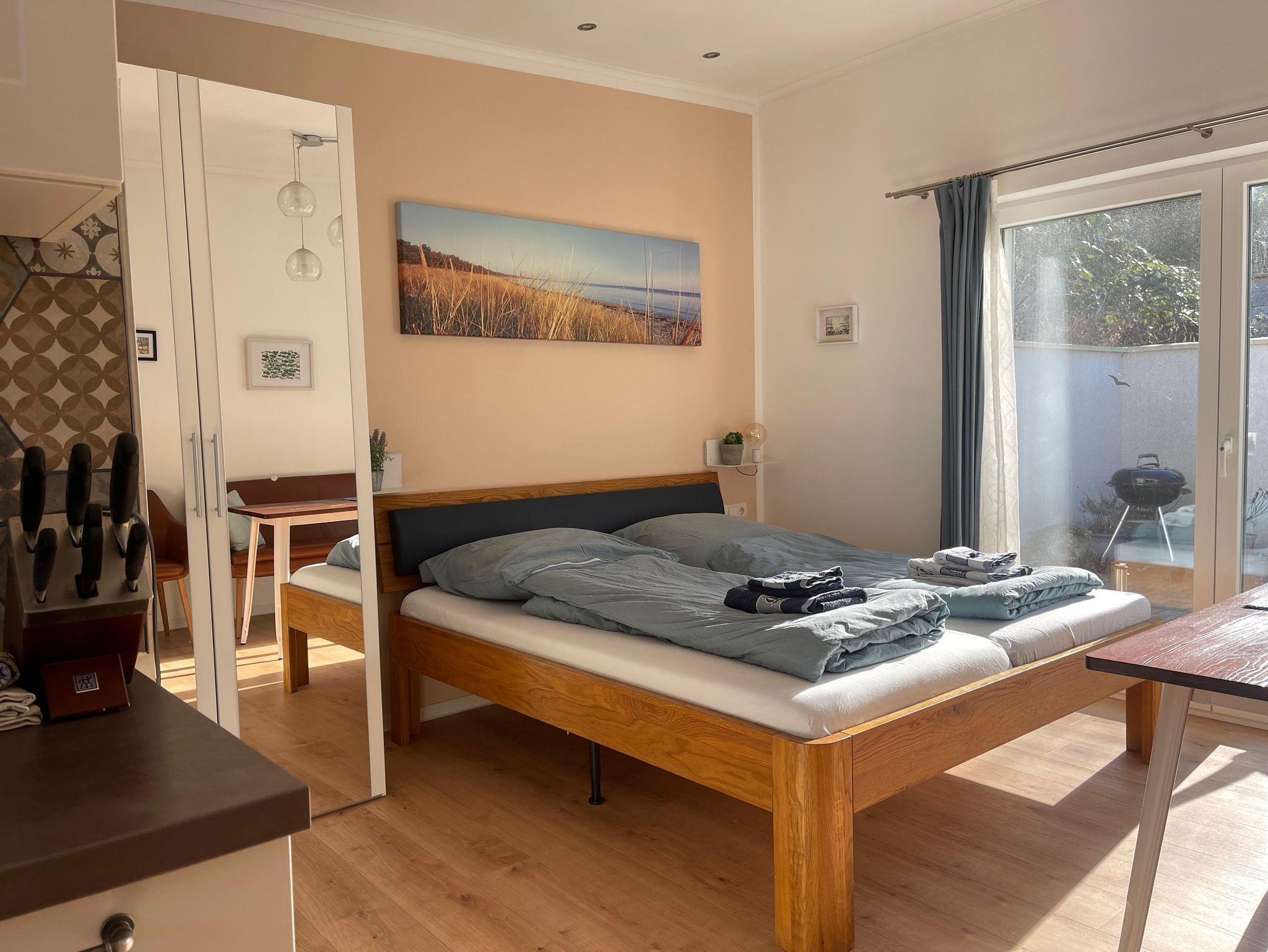 Willkommen in unserer liebevoll gestalteten Ferienwohnung, ideal für Paare oder Alleinreisende. Die modern eingerichtete Unterkunft bietet eine voll ausgestattete Küche, ein gemütliches Wohn-/Schlafzimmer und ein stilvolles Bad. Ein Highlight ist die sonnige Terrasse, die zu Frühstück im Freien oder entspannten Stunden einlädt. Der gepflegte Garten rundet das Angebot mit Ruhe und Privatsphäre perfekt ab.