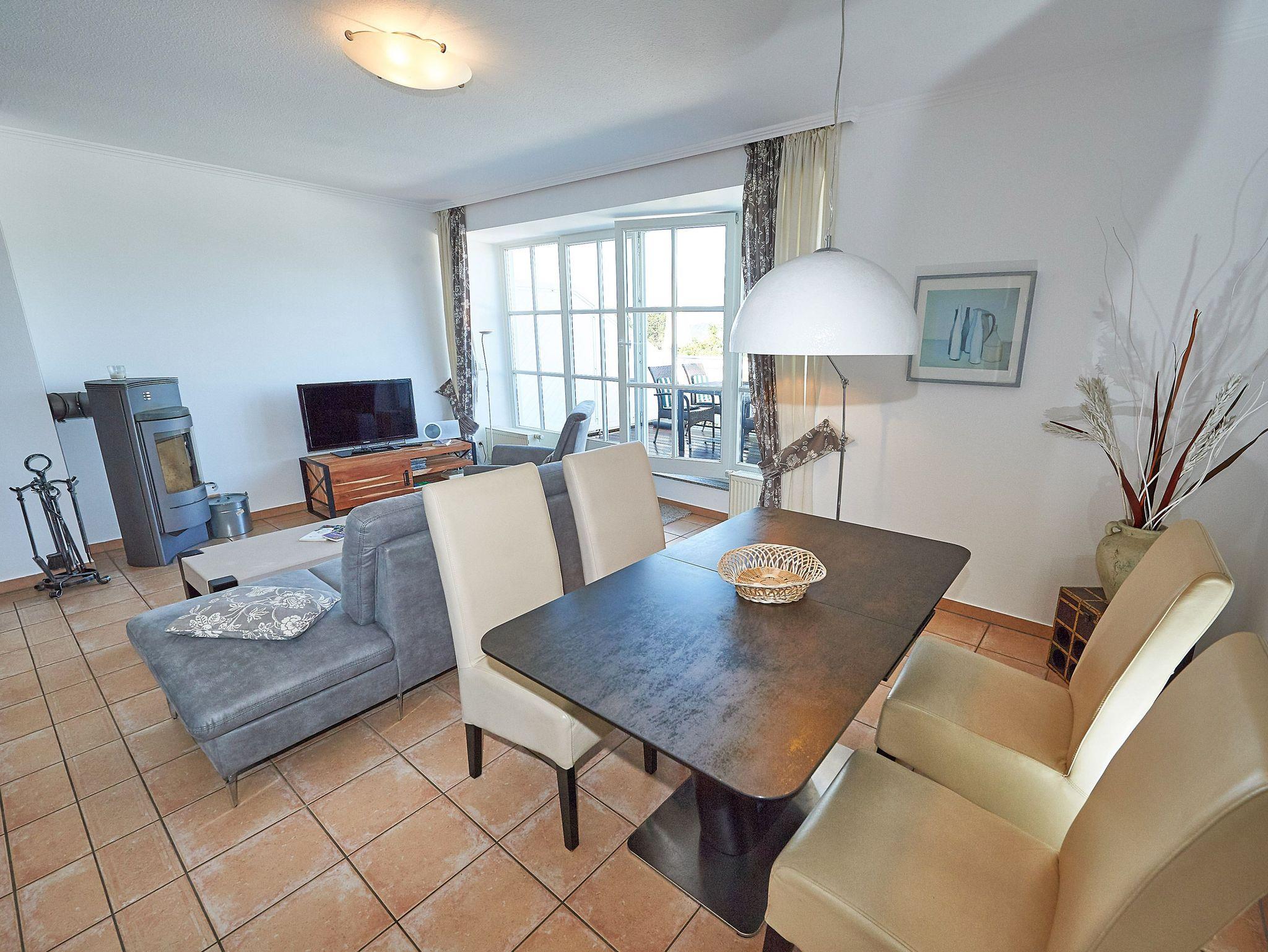 Vom Eingangsbereich gelangen Sie durch die Diele in den großzügigen Wohn- und Essbereich, der mit einer gemütlichen Couch, Esstisch, einem Fernseher, einem DVD-Player sowie einer Stereoanlage mit CD-Player ausgestattet ist. Selbstverständlich gibt es auch einen kostenfreien Internetzugang per W-LAN. Ein Kaminofen sorgt für idyllische Stunden, das Holz dafür bringen Sie bitte selbst mit.