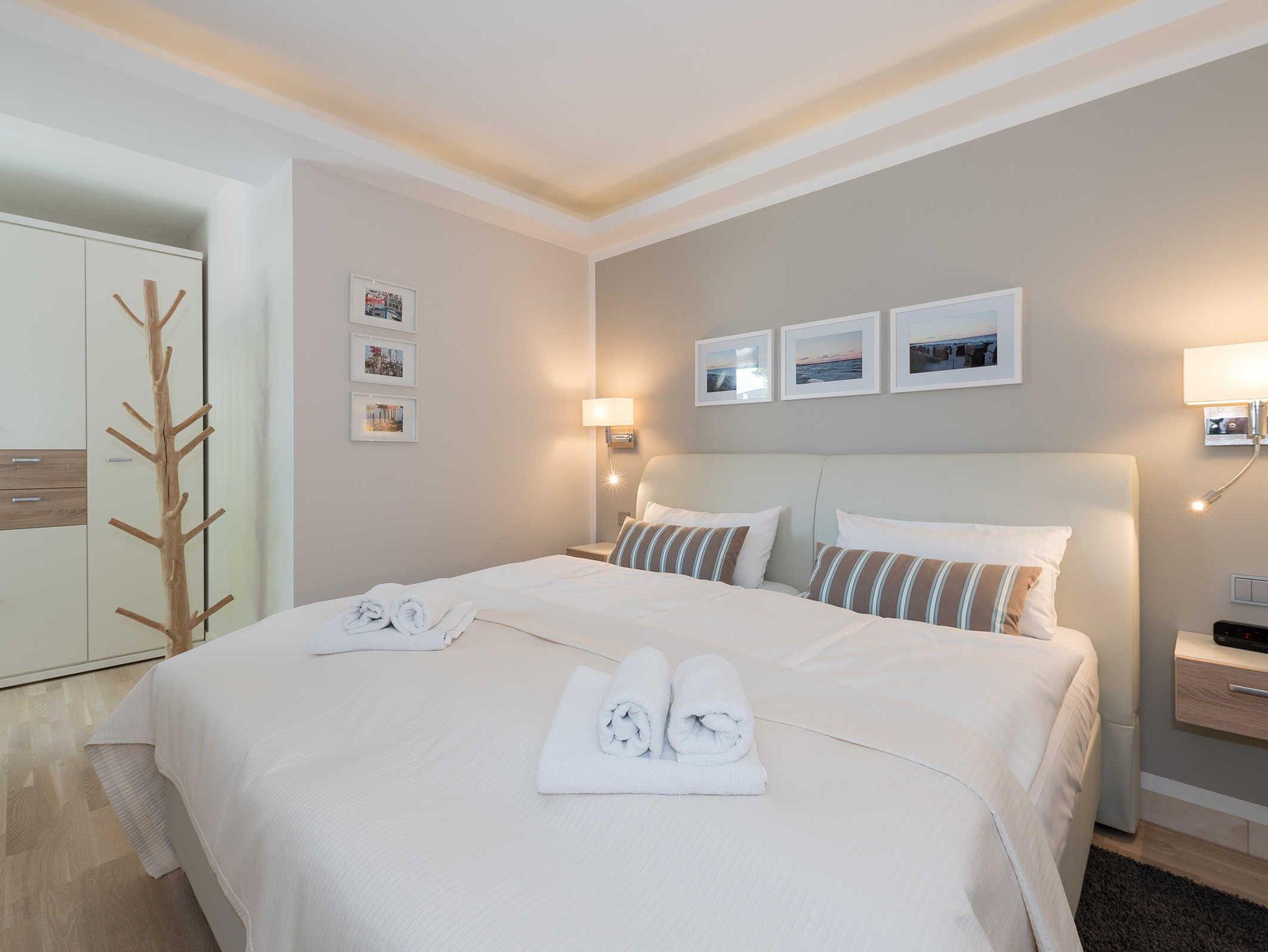 Sie haben zwei Schlafzimmer mit je einem Flachbildfernseher und Tresor sowie ein Wannen-Tageslichtbad mit zusätzlicher Dusche und ein Duschbad zur Verfügung.