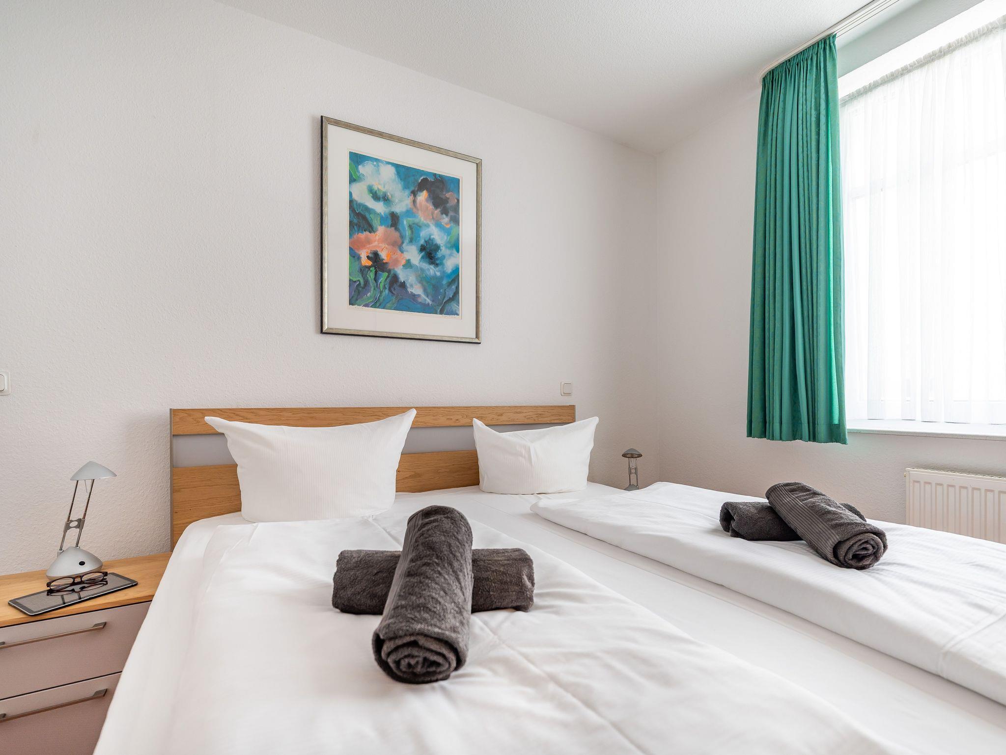 Jedes der acht anspruchsvoll möblierten 4-Sterne Ferienwohnungen verfügt über mindestens ein separates Schlafzimmer, eine hochwertige Küche, ein komfortables Duschbad, eine Loggia, Balkon oder Terrasse (teilweise sogar mit Meerblick!) sowie über einen Garagenstellplatz. Die ideale Ferienwohnung für zwei bis vier Personen.