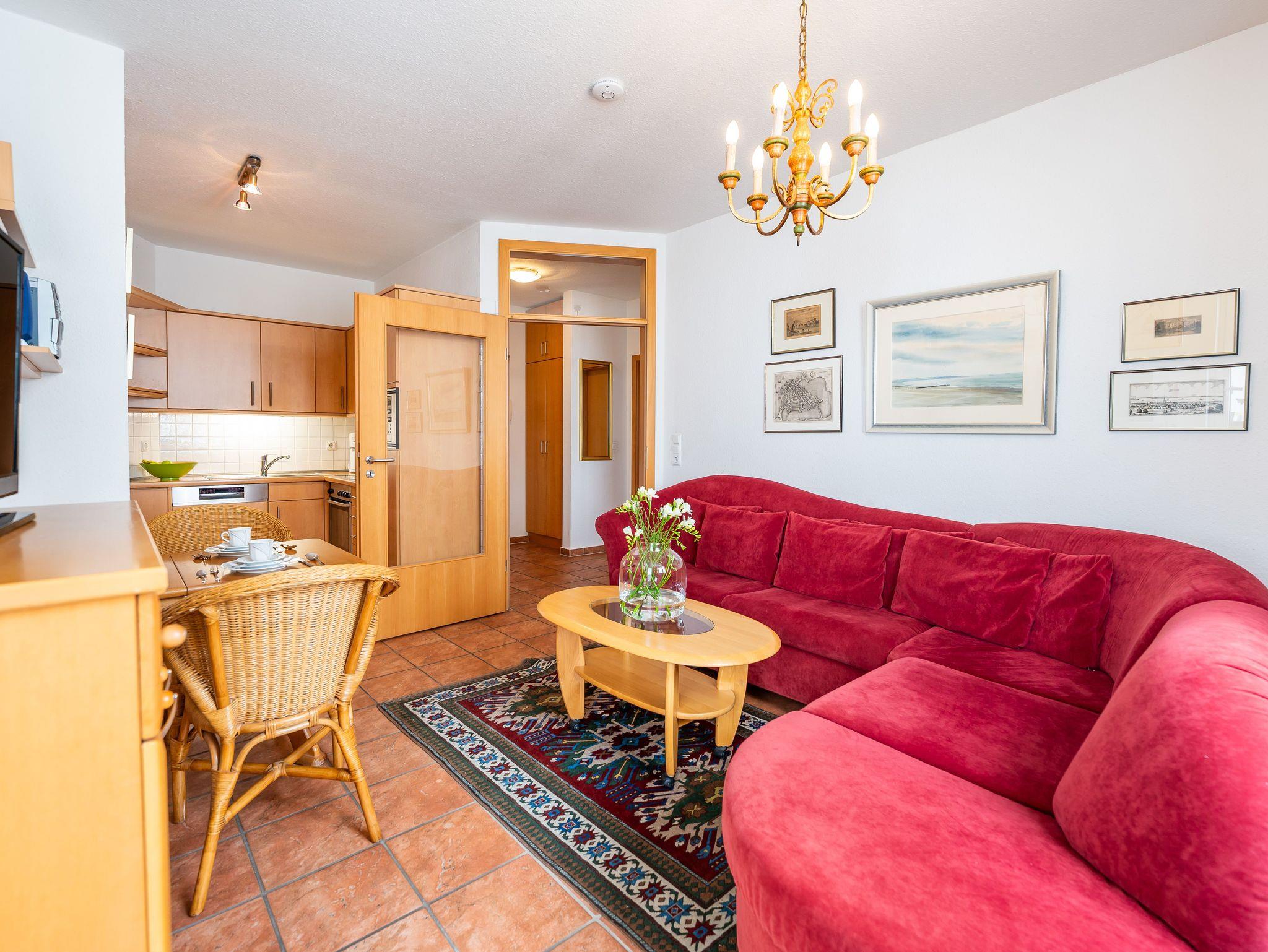 • Wohnzimmer : Bettsofa, Sessel, Tisch, Fernseher (Kabel), Internetanschluss (lan und wlan)