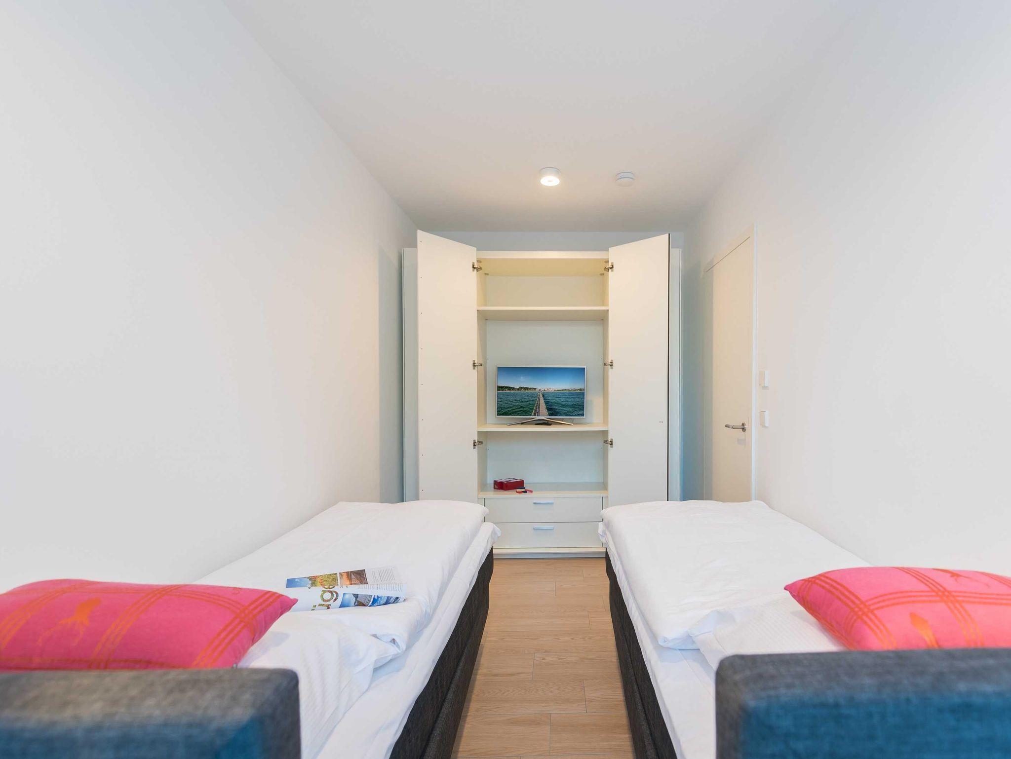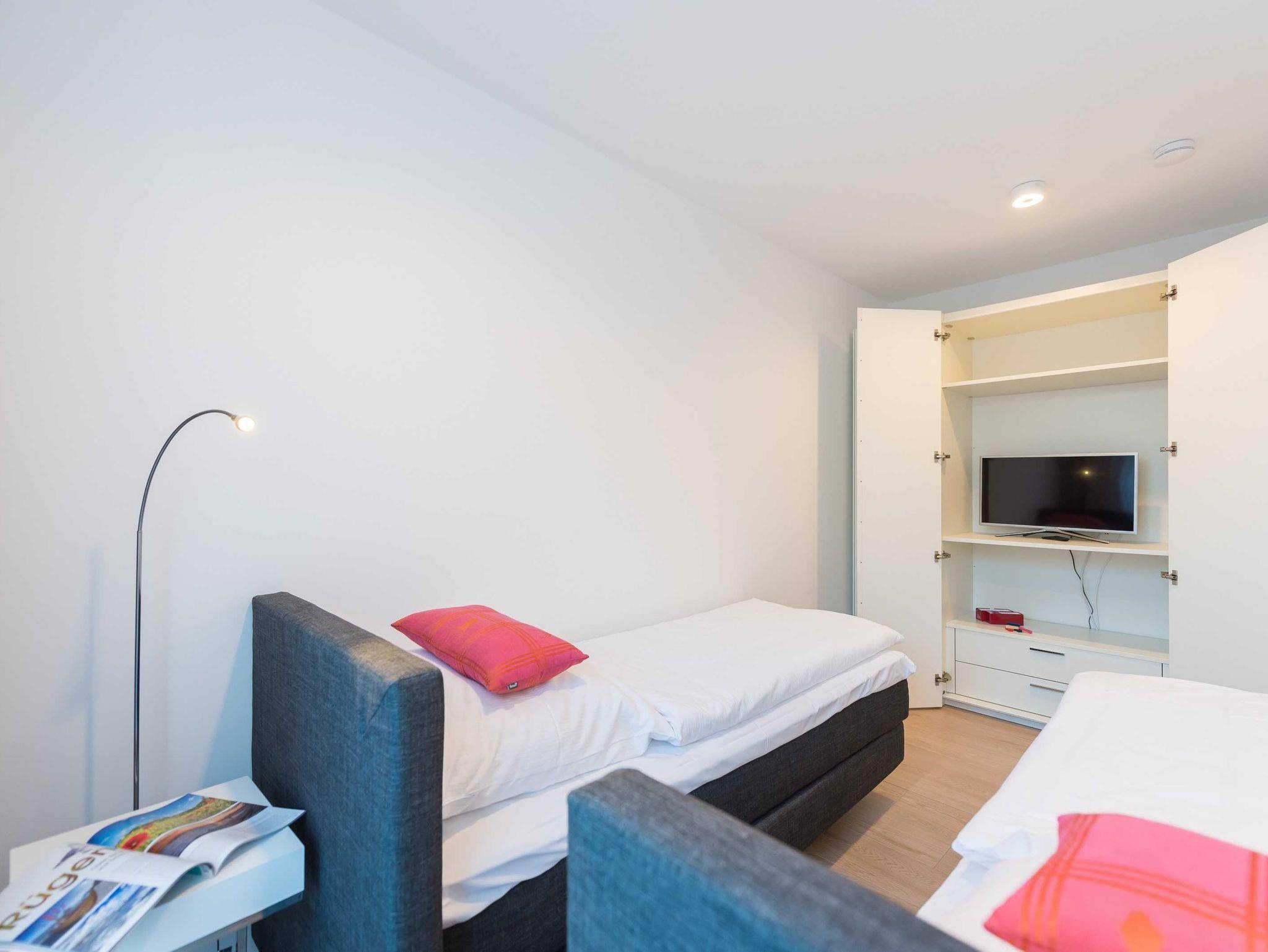 1 Schlafzimmer mit zwei Einzelboxspringbetten (80 x 200 cm)