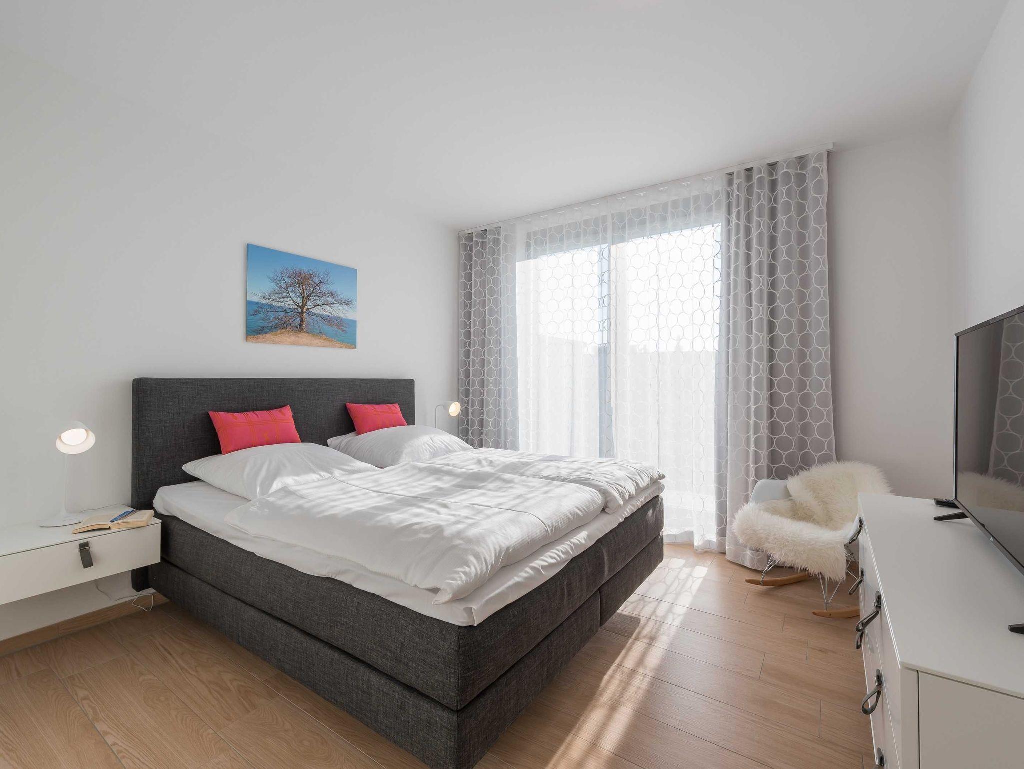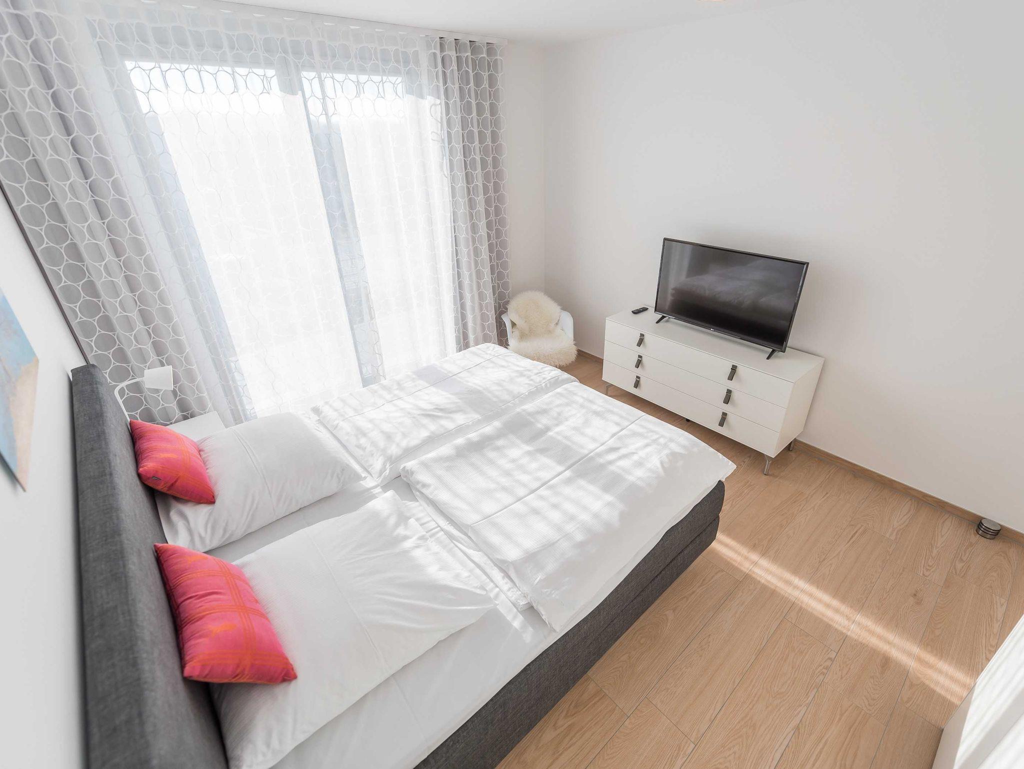 1 Schlafzimmer mit einem Doppbett, TV, Terrasse
