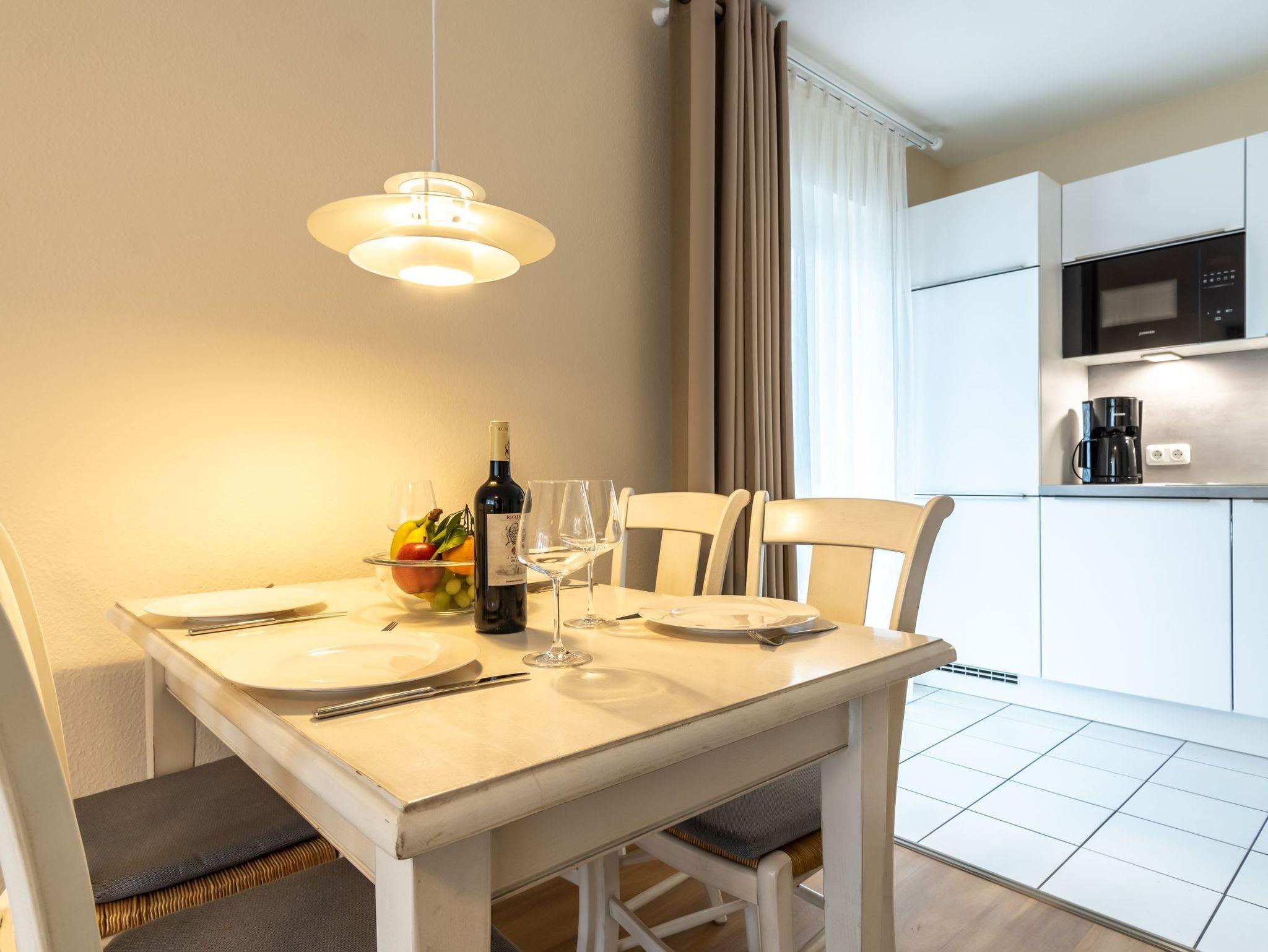 Am Esstisch im Wohnbereich geniessen Sie Ihr Frühstück für einen entspannten Strat in den Urlaubstag.