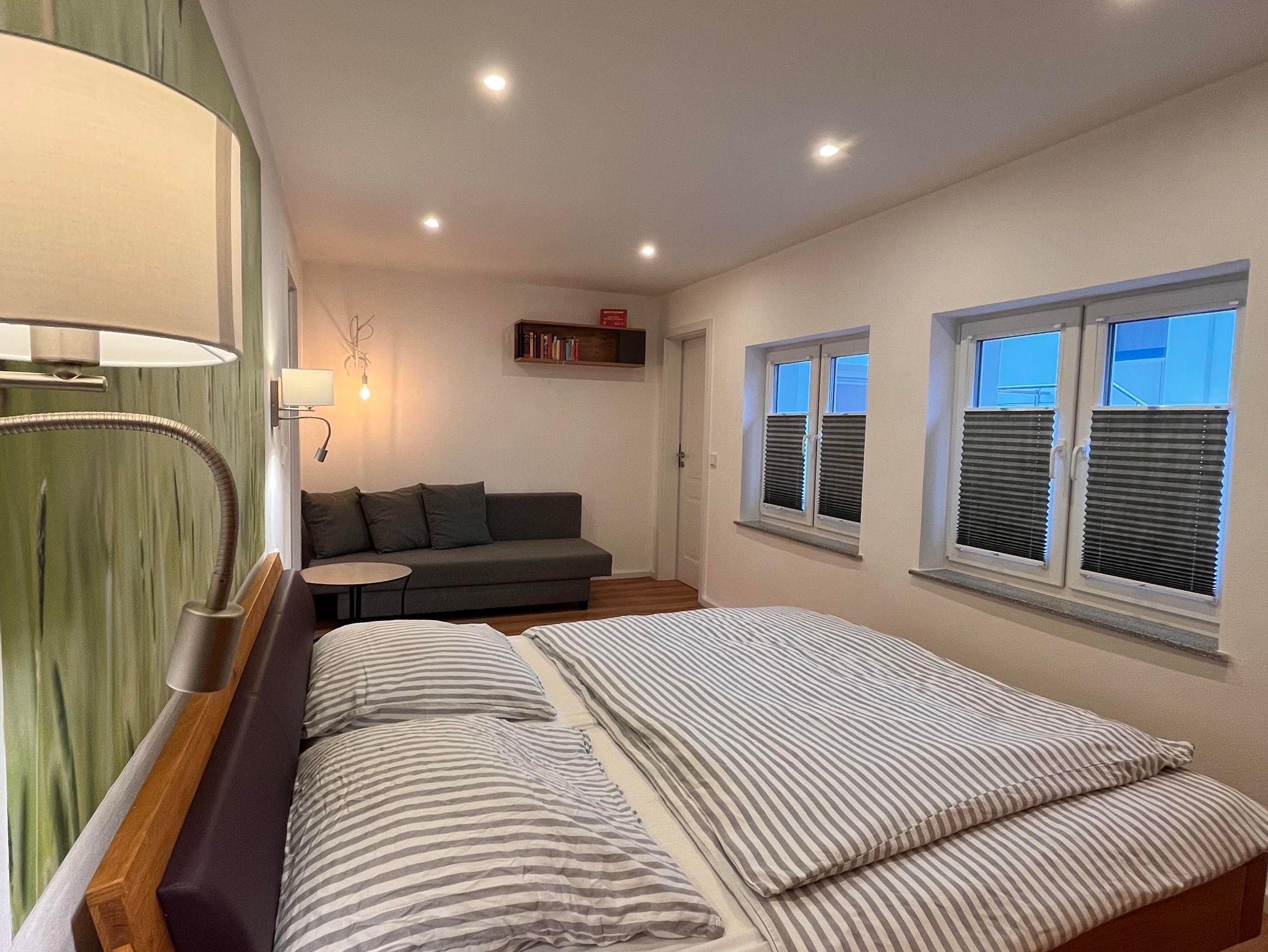 Es verfügt über zwei gemütliche Schlafzimmer, die mit komfortablen Doppelbett mit extra breiten Matratzen ausgestattet sind für einen erholsamen Schlaf.