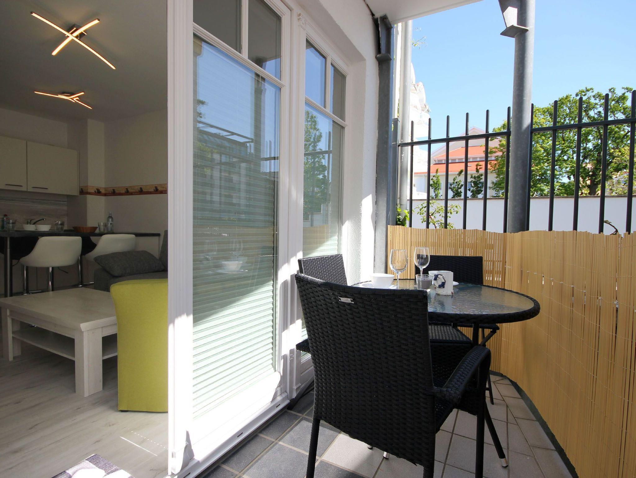 Gemütliche 2-Zimmerwohnung in Binz mit Balkon, moderner Küche und kostenlosem WLAN, nur 50 m vom Strand entfernt.