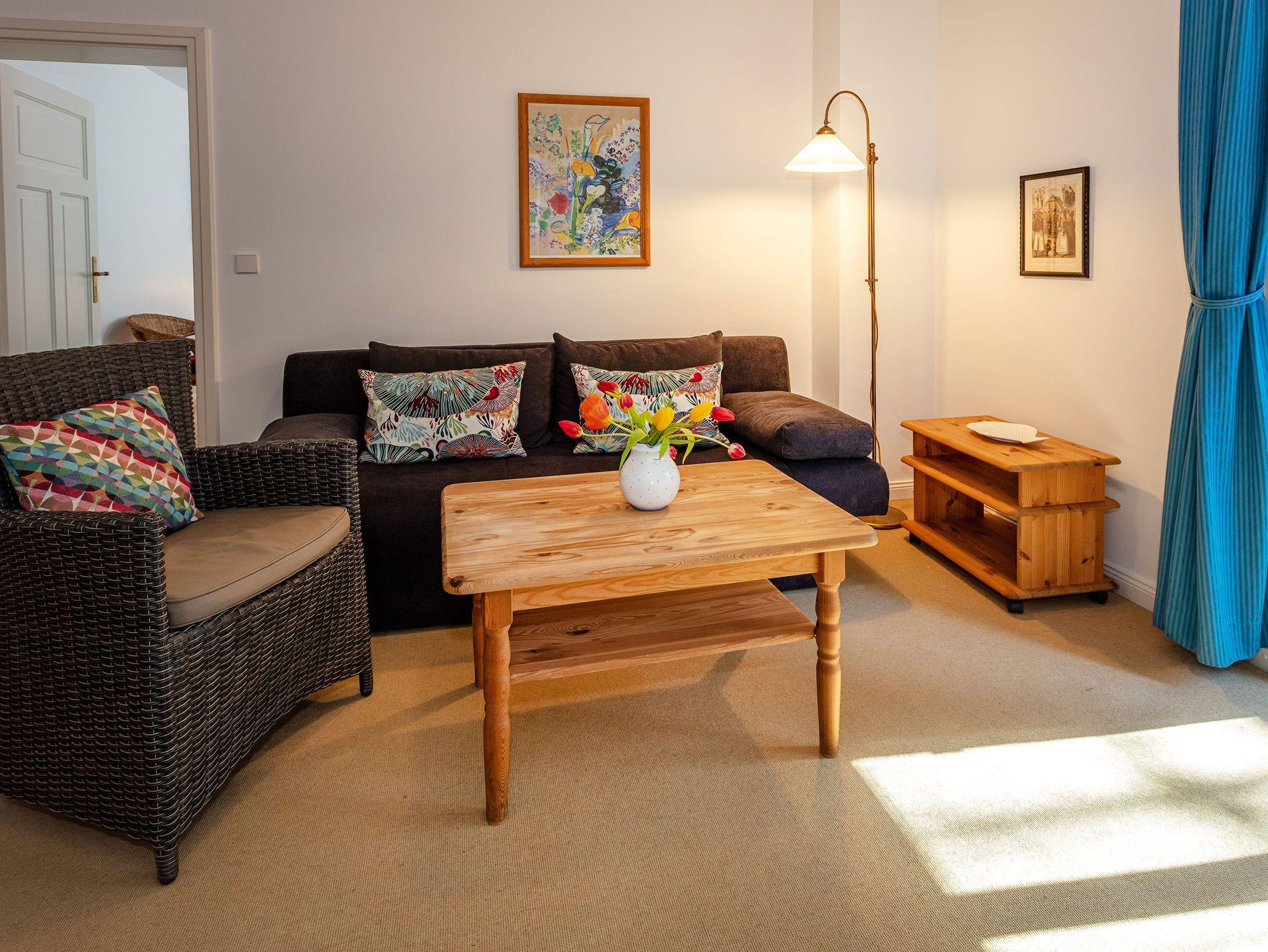 Das geräumige Wohnzimmer, das Schlafzimmer mit Doppelbett 1,80 m x 2,00 m, das Schlafzimmer mit zwei Einzelbetten und die separate Küche bieten viel Platz. Das Bad wurde komplett neu renoviert.