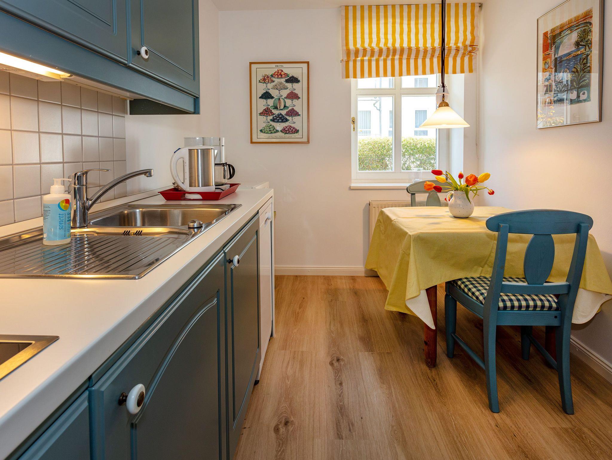 Die 3-Zimmer-Wohnung mit einem angenehmen Vinyl-Fußboden bietet Platz für vier Personen und die Möglichkeit zur Aufbettung (Schlafsofa im Wohnraum) für einen weiteren Gast. Die Wohnung verfügt über eine separate Küche, ein Schlafzimmer mit Doppelbett, ein Schlafzimmer mit zwei Einzelbetten und ein neu gestaltetes, kleines Bad.