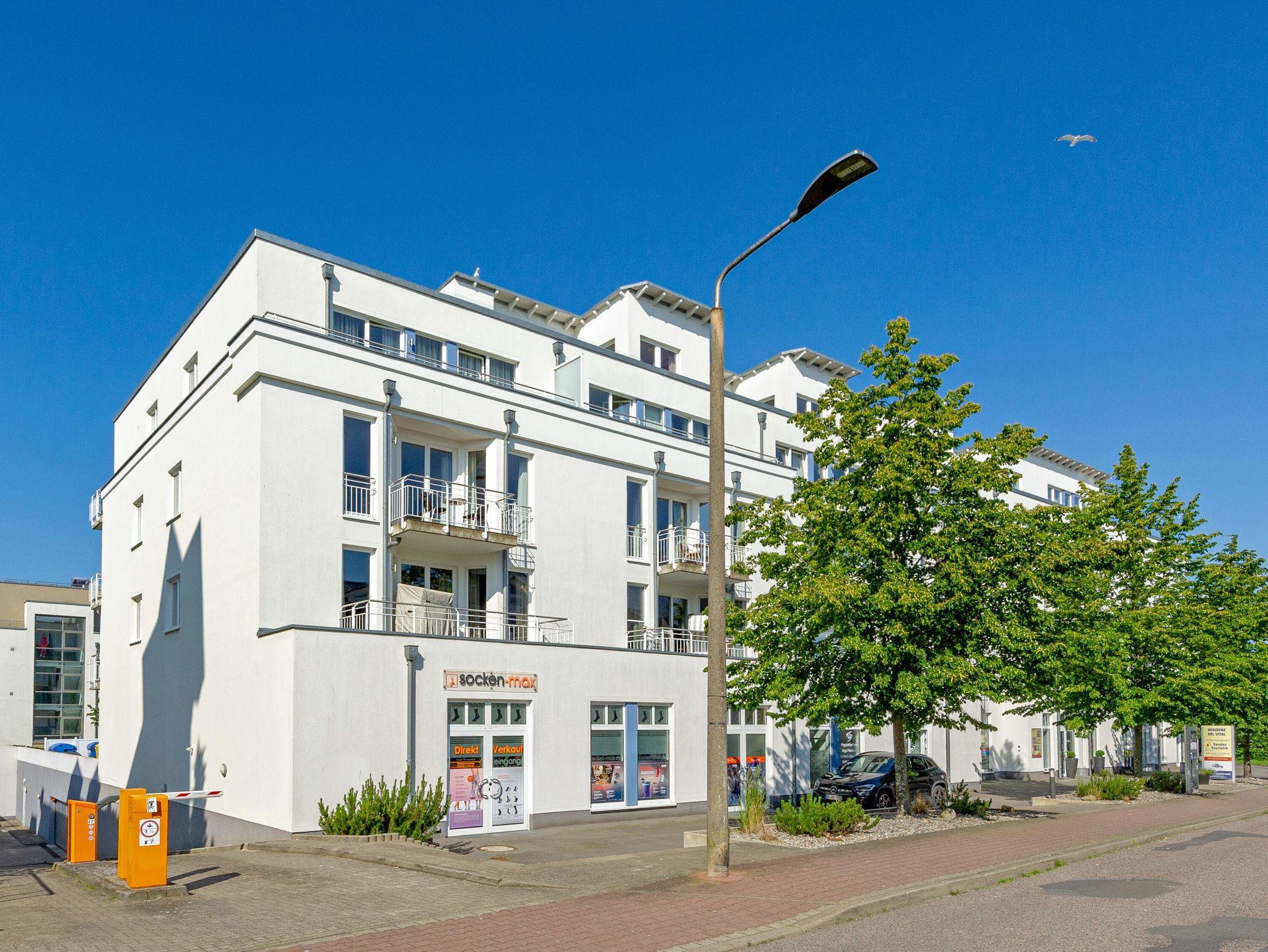 Herzlich willkommen in der Wohnung 28 in der Residenz Bel vital! Keine 100 Meter vom Strand entfernt und bequem mit dem Aufzug zu erreichen, ist dieses rund 67 qm große 2-Raum-Appartement für zwei Personen ideal, kann dank der Aufbettungsmöglichkeit im Wohnzimmer aber auch mit bis zu 4 urlaubshungrigen Feriengästen gebucht werden.