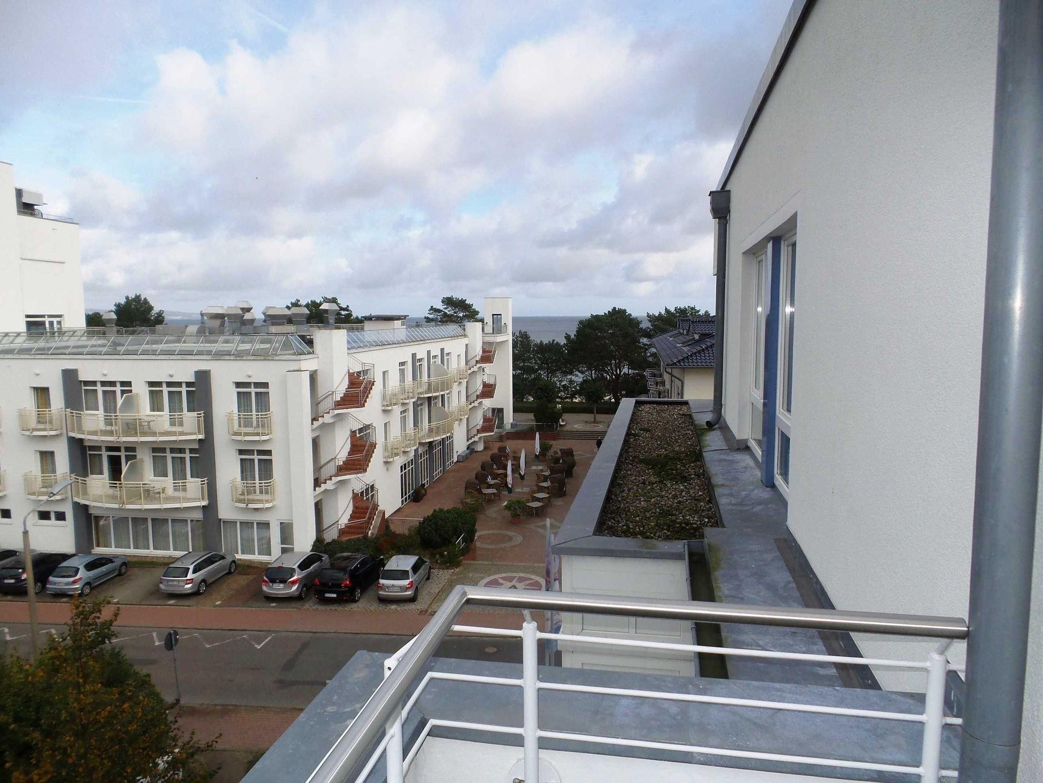 Balkon (Nord-West-Ausrichtung) mit eingeschränktem Ostseeblick und Balkonmöbeln