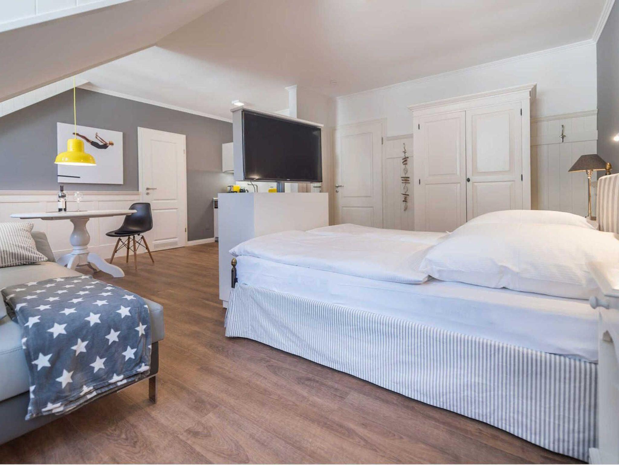 Ihre moderne Ferienwohnung 90624 befindet sich im 2. Obergeschoss im Haus Min Hüsung. Die 1 Zimmer - Wohnung im maritimen Design hat eine Größe von ca. 36 qm und ist mit bis zu 2 Personen belegbar.