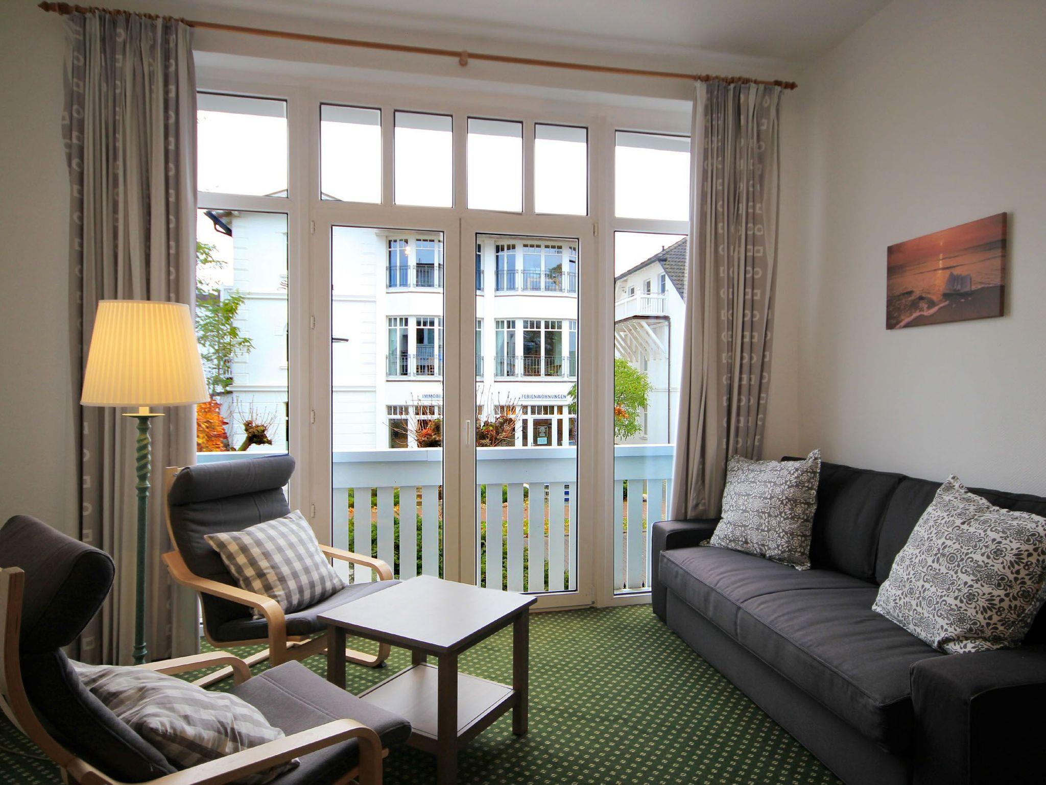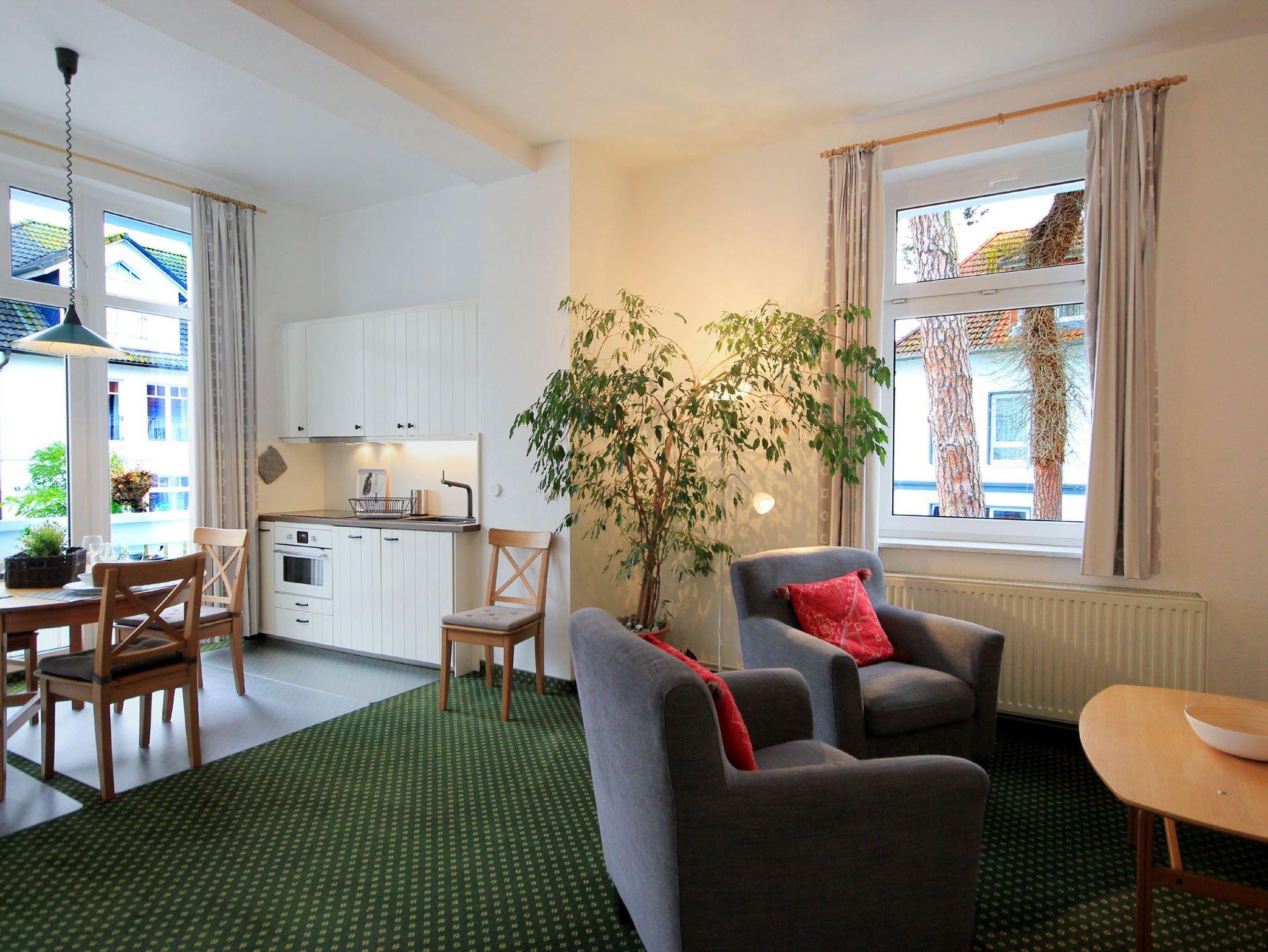 Moderne 2-Raum-Nichtraucherwohnung in Binz, nur 120 m vom Strand entfernt, mit WLAN und eigenem Parkplatz.