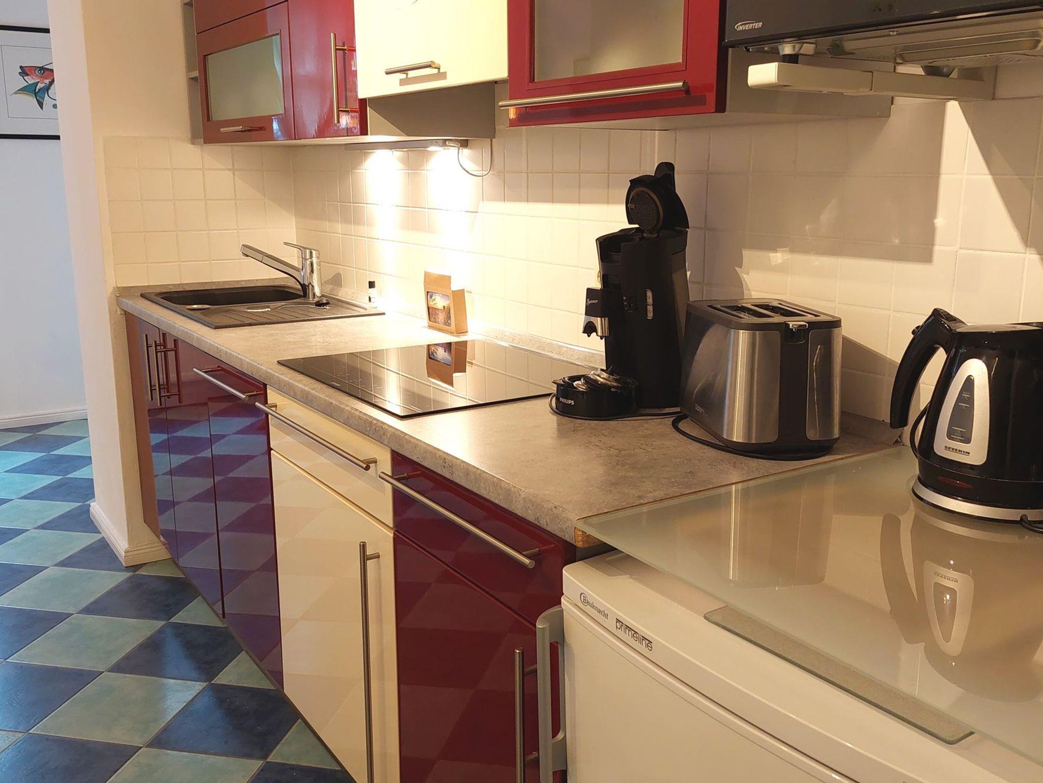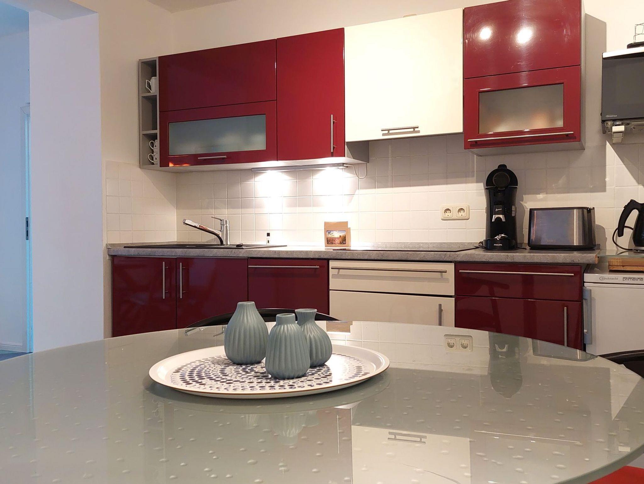 Die moderne Küchenzeile mit Induktions-Ceranfeld, Kühlschrank (samt Gefrierfach), Mikrowelle und Geschirrspüler bietet die Möglichkeit sich auch im Urlaub selbst zu verpflegen.