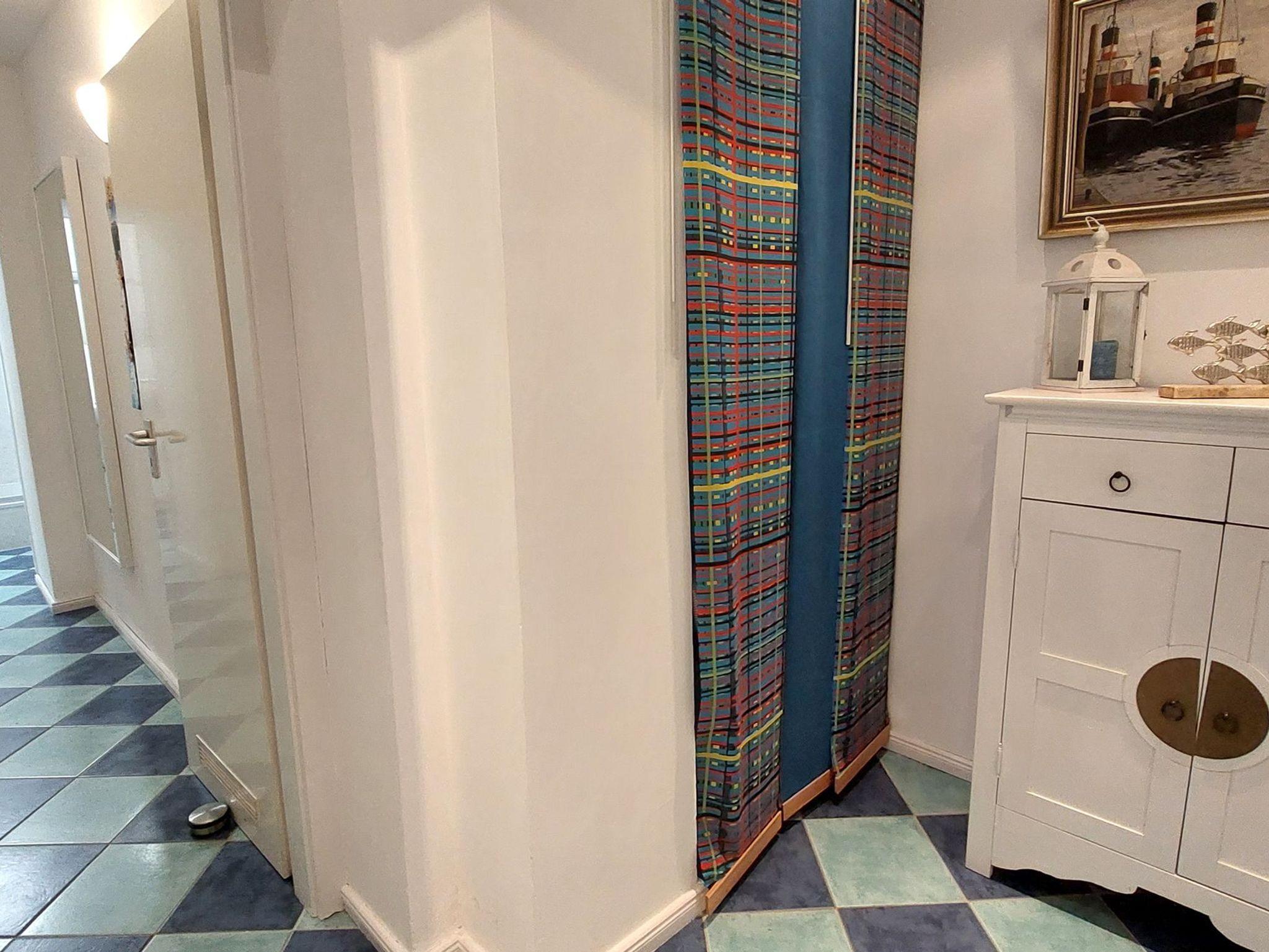 Auf diesem Flur bietet ein kleiner Abstellraum sowie einen großer Einbaukleiderschrank viel Stauraum.