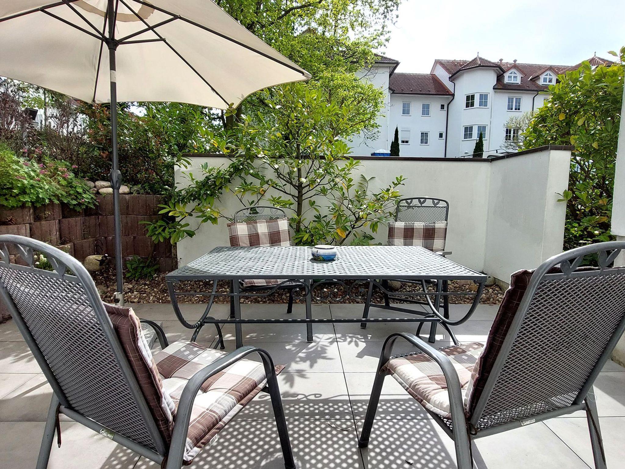 Angrenzend befindet sich das kombinierte Wohn- und Schlafzimmer, welches Zugang zur geschützten und möblierten Terrasse bietet.