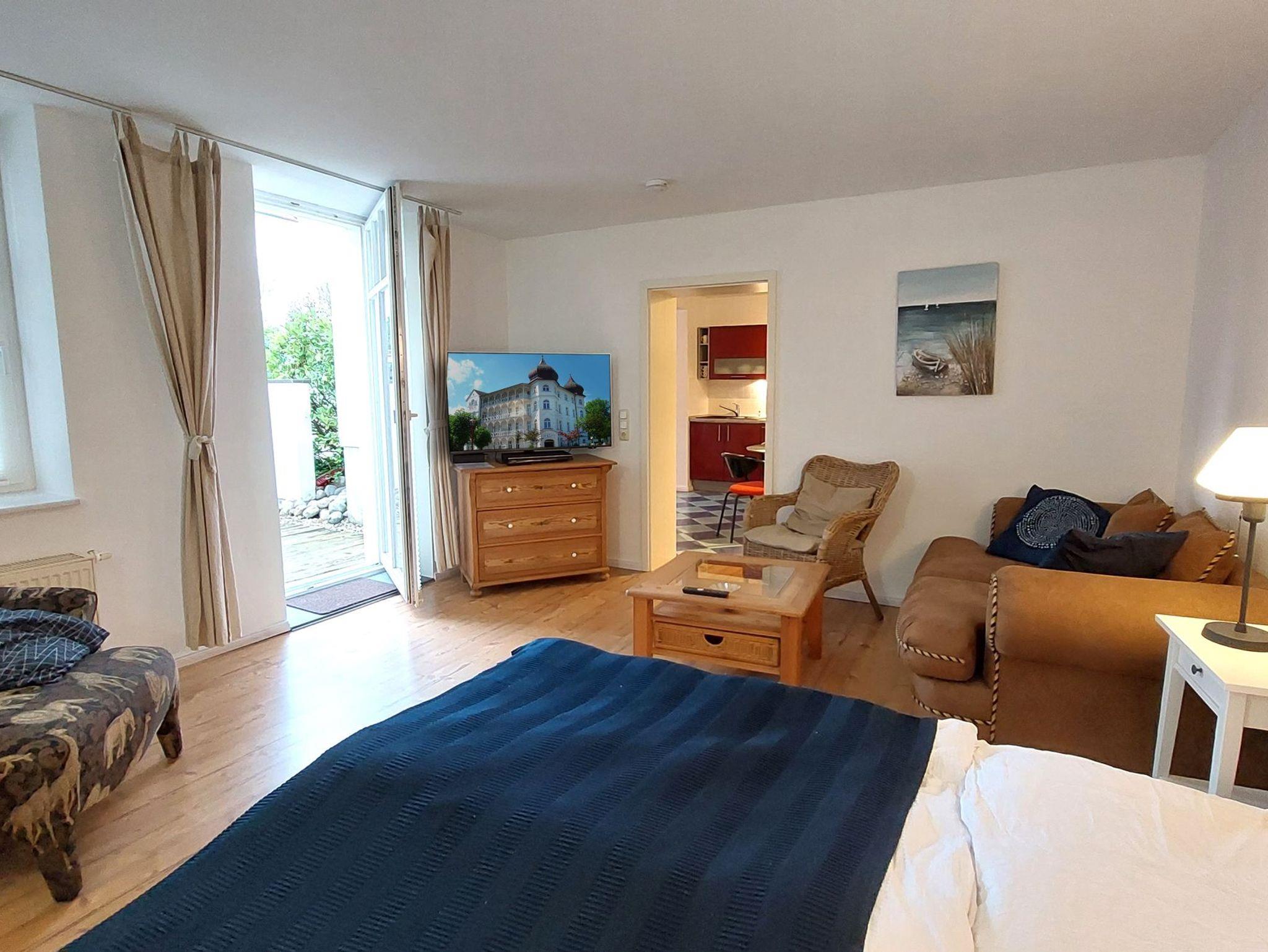 Das Apartment, mit wunderschöner Sonnenterrasse, ist hofseitig sehr ruhig und ebenerdig gelegen. Auf den insgesamt 64 m² finden bis zu 4 Personen bequem Platz. Durch einen separaten Eingang haben Sie einen Haus-im-Haus-Effekt und sind im Urlaub vollkommen ungestört. Die gesamte Wohnung ist zudem mit Fliesen- und Holzboden ausgestattet, weshalb sie allergikergeeignet ist.