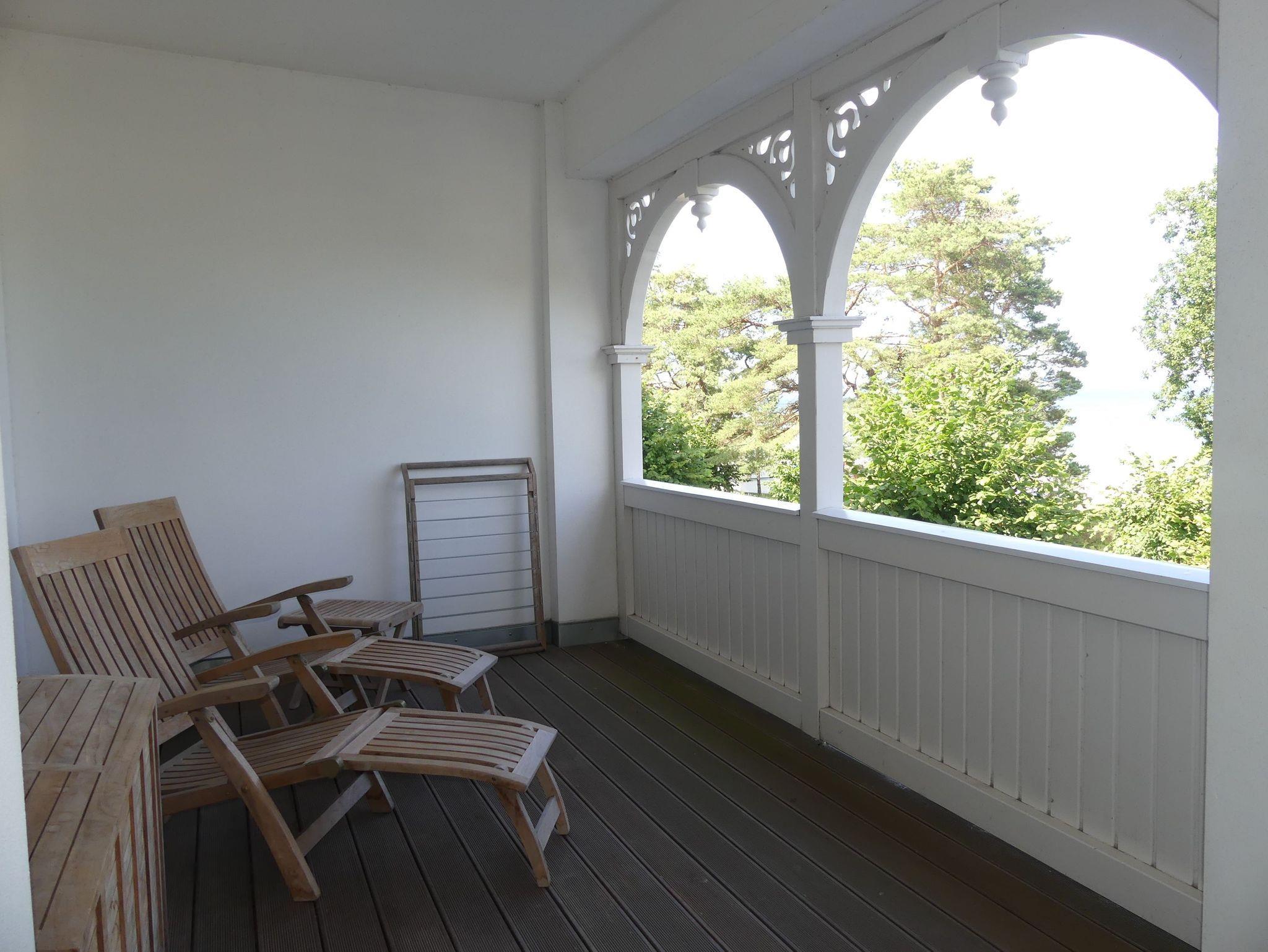 Die Villa Seeblick 05 ist eine schöne Ferienwohnung im 1. Obergeschoss mit einer modernen, freundlichen Einrichtung für bis 4 Personen (3 Zimmer / 77 m²), hat zwei Schlafzimmer, einen großen Balkon mit herrlichem Meerblick.