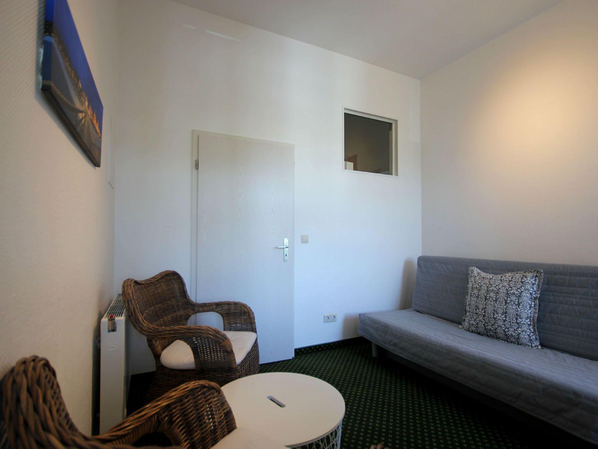 Diese freundliche Wohnung ist aufgeteilt in einen Wohnraum mit integrierter Küche sowie einem Verbindungszimmer, ein Schlafzimmer sowie ein modernes Duschbad mit Waschtisch und WC. Das Wohnzimmer begrüßt Sie mit zwei Schwingsessel sowie Flachbild-TV. Zudem bietet ein Schlafsofa (1,60m x 2m) zwei zusätzlichen Personen eine Schlafmöglichkeit. Das geräumige Schlafzimmer verfügt über ein Doppelbett (1,60m x 2m) sowie einen Kleiderschrank. Die neuwertige Küchenzeile ist mit Kühlschrank mit kleinem Gefrierfach, Cerankochfeld, Nespresso-Maschine, Backofen, Geschirrspüler, Kaffeemaschine, Wasserkocher und Toaster komplett ausgestattet. Highlights: Kostenfreies WLAN sowie ein wohnungseigener PKW-Stellplatz direkt am Haus.