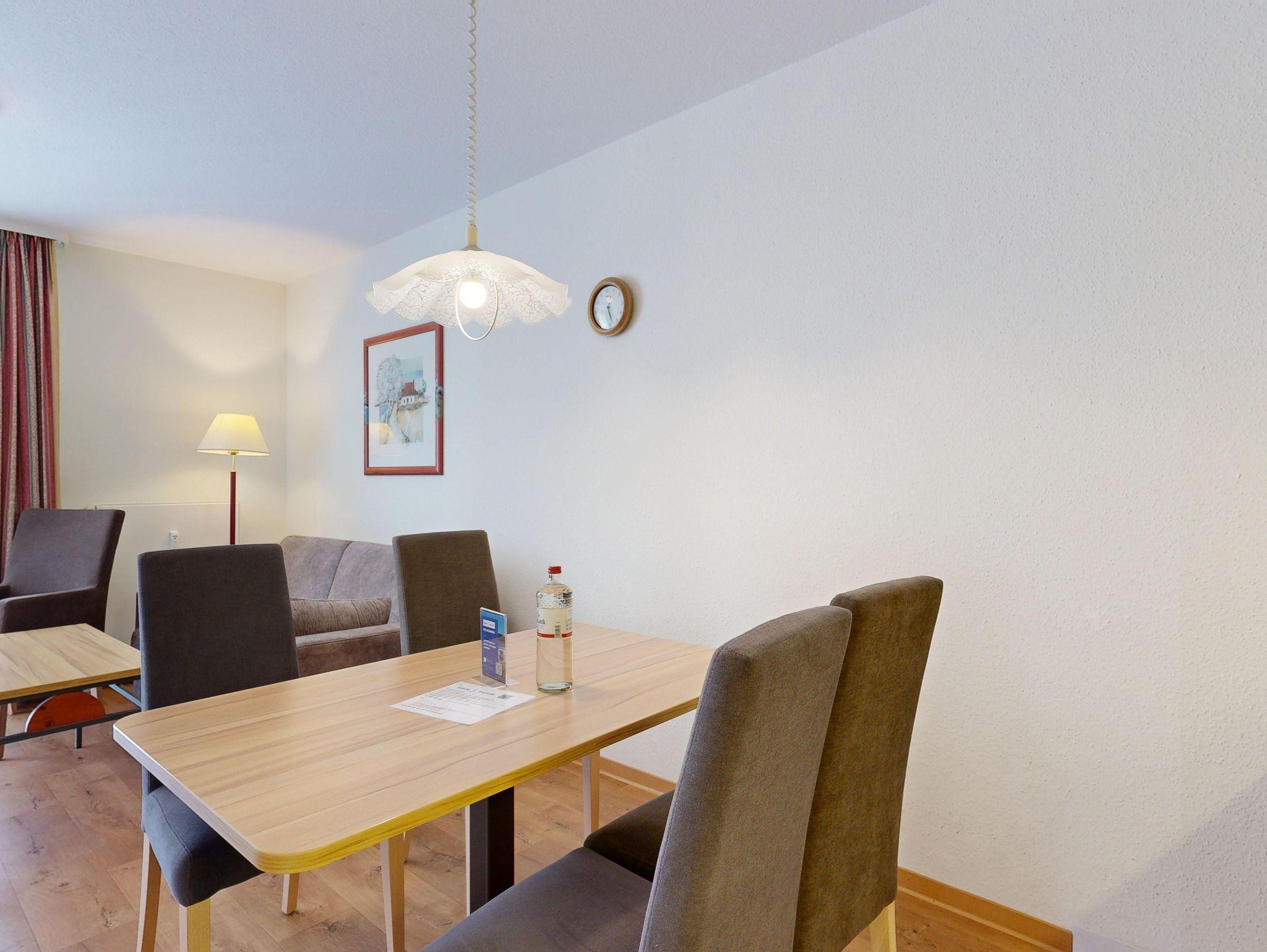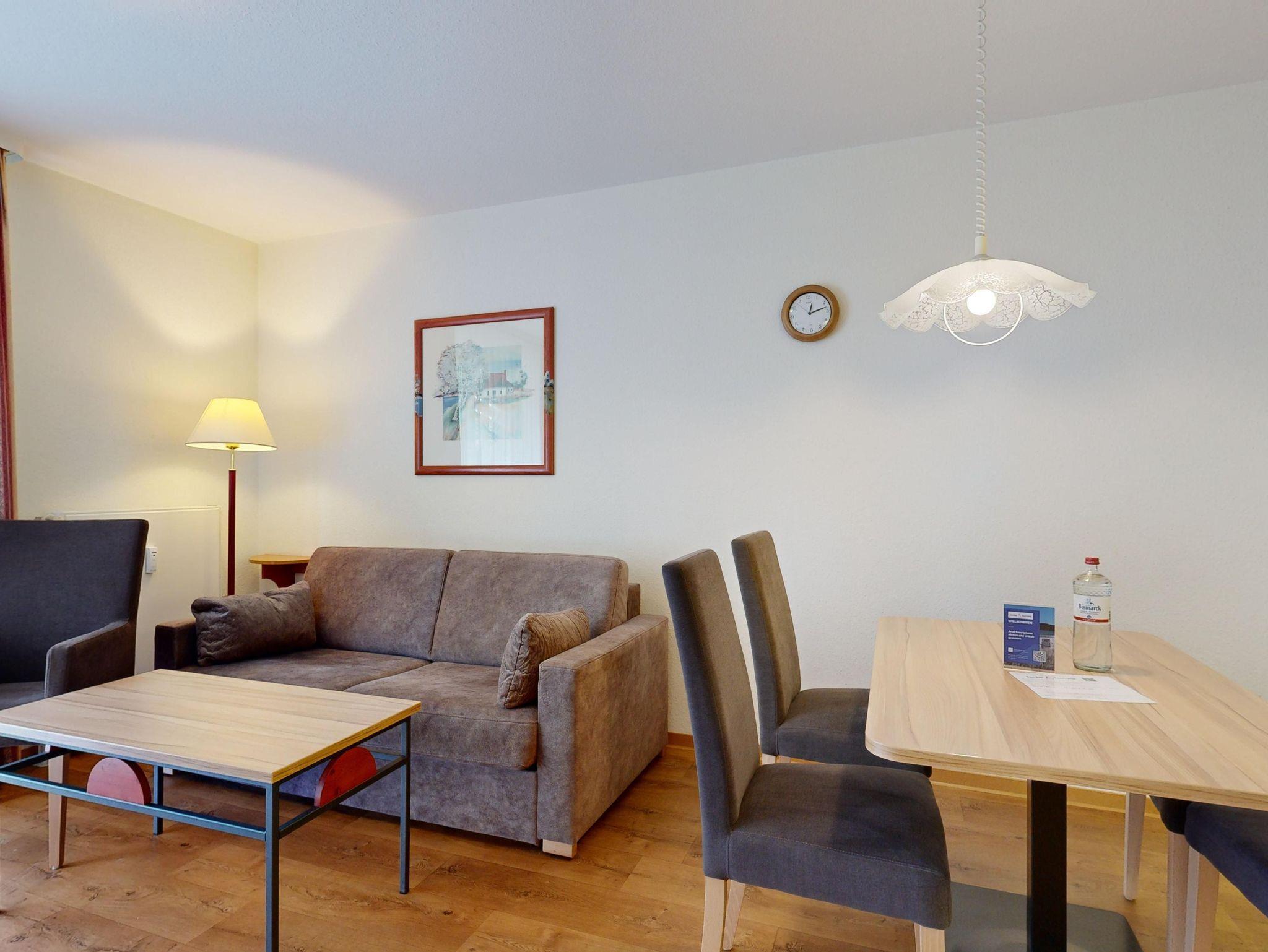 • 1 Wohn-/Essbereich mit einer Doppelbettcouch, Kabel-TV, Stereoanlage, Internetanschluss, Esstisch