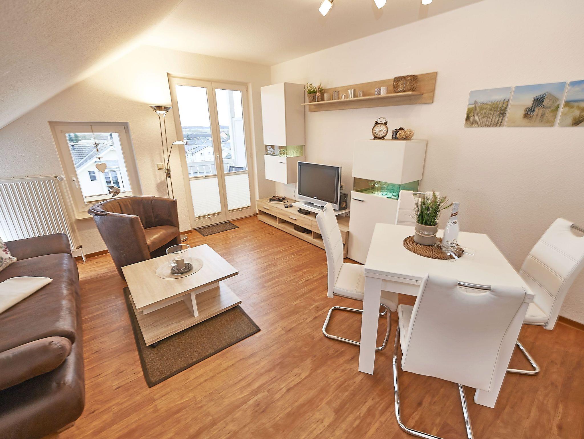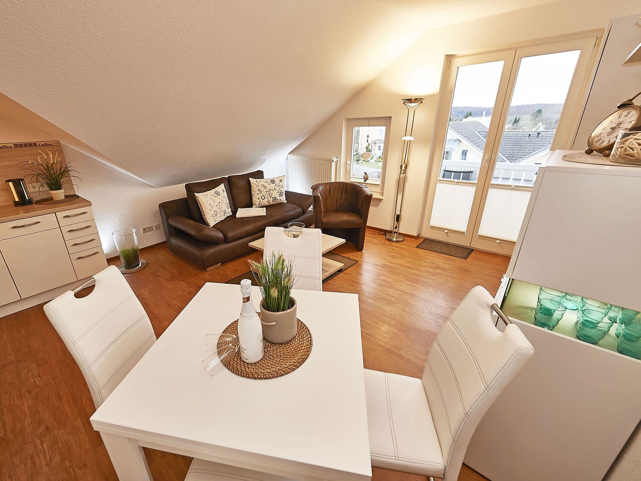 Gemütliche 2-Zimmer-Dachgeschosswohnung mit Balkon und seitlichem Seeblick in Binz.