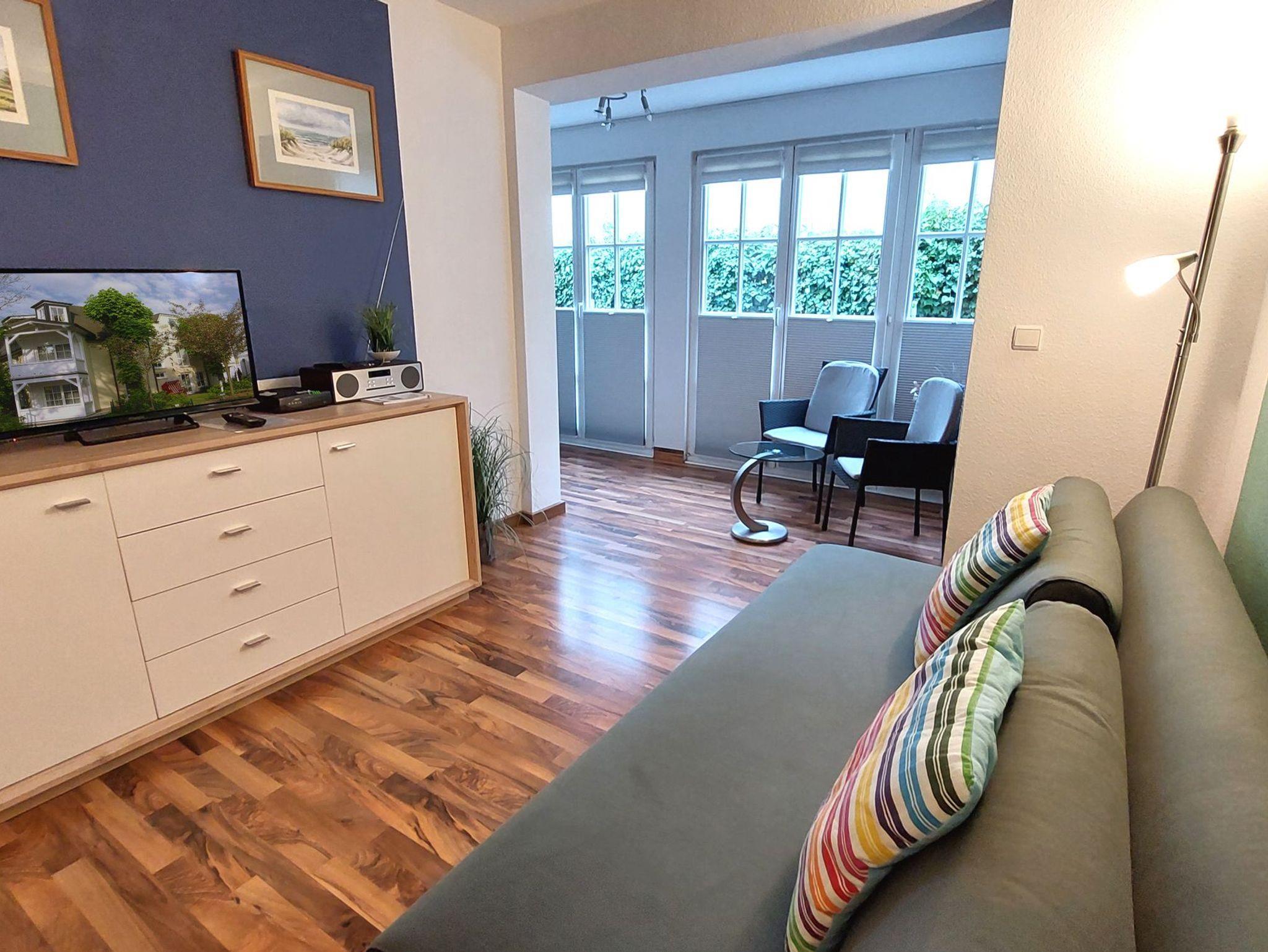 Moderne Ferienwohnung in Binz mit Terrasse, Wintergarten, WLAN und Tiefgaragenstellplatz, nur 150 m vom Strand entfernt.