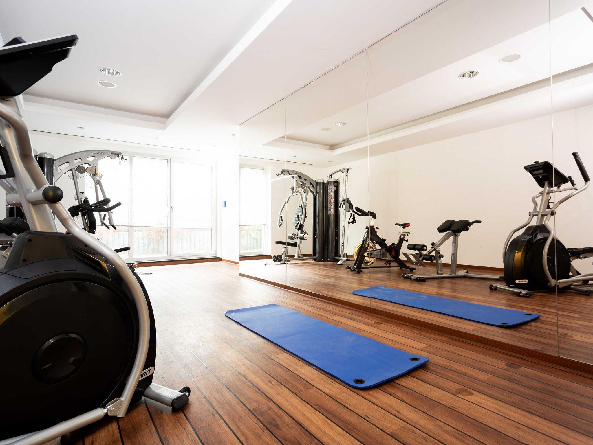 Im Haus gibt es einen Fahrstuhl, einen Fitnessraum und eine Sauna. Ein großer, abschließbarer Fahrradraum befindet sich hinter der Tiefgarage.