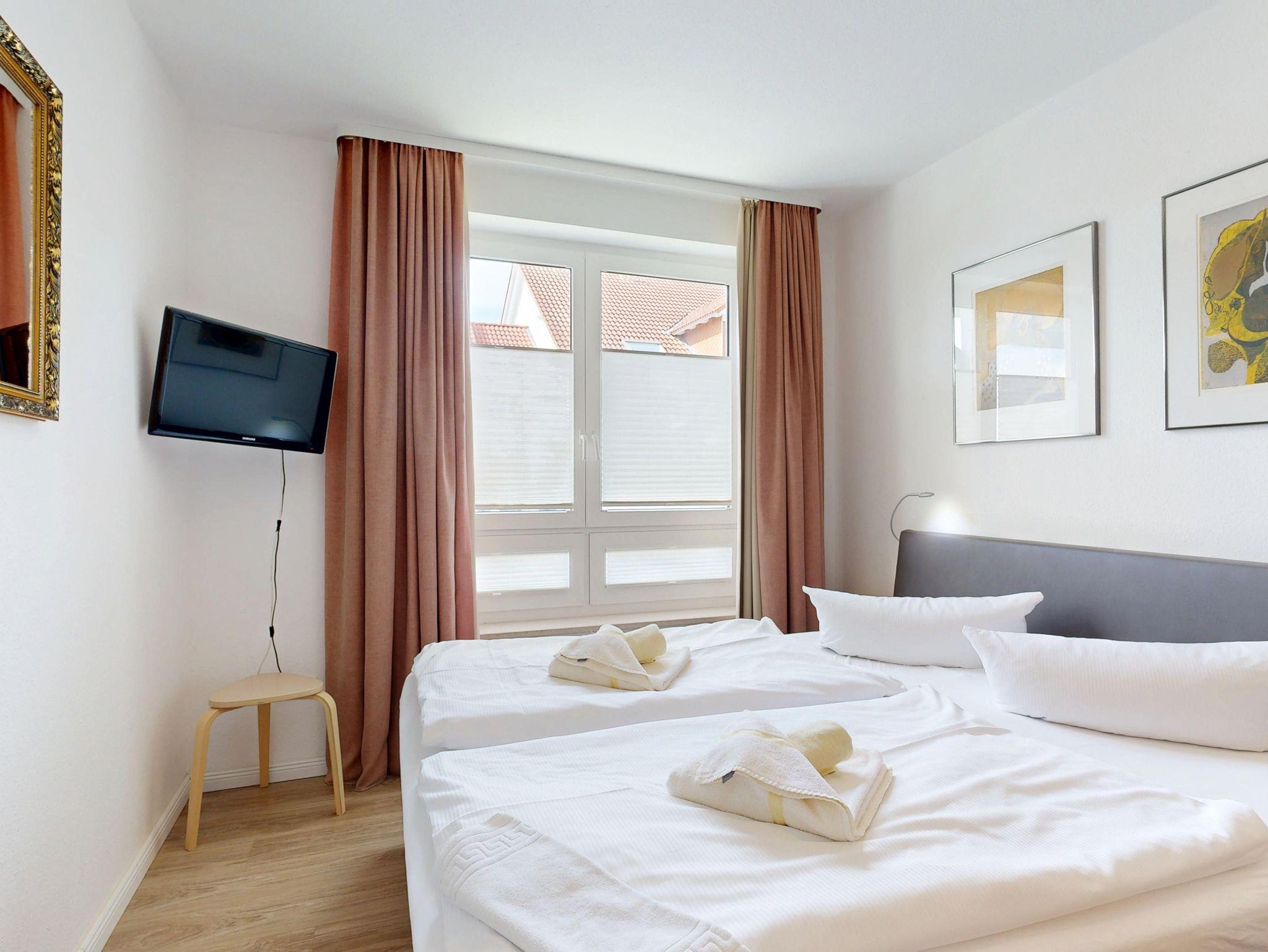 Ferienwohnung Binzer Sterne 29 für bis zu 4 Personen im 1. OG (2 Zimmer / 40 m²) des Appartementhauses Binzer Sterne, 1 Schlafzimmer, Parkplatz (gegen Gebühr) und freies WLAN.