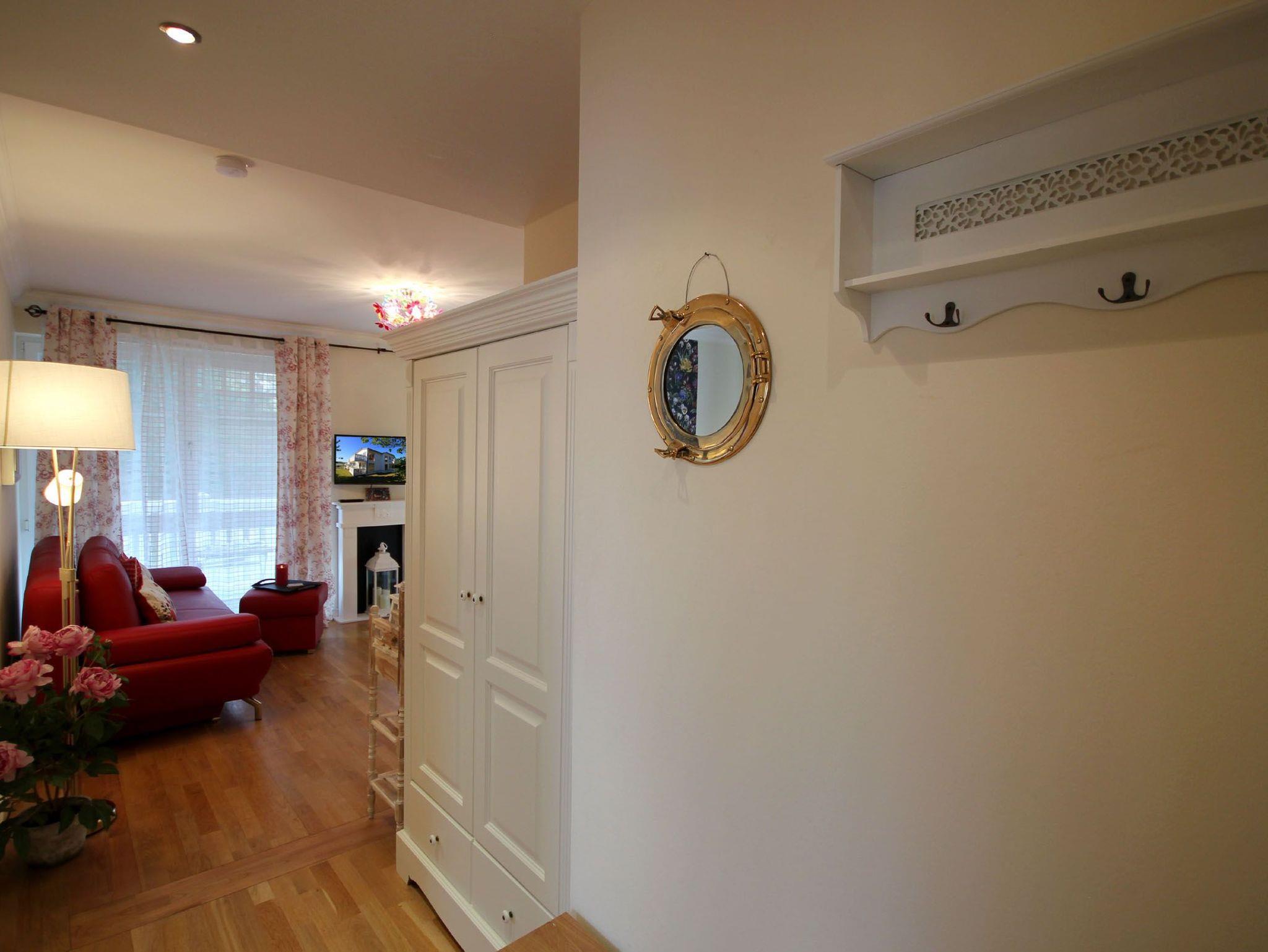 Im Flurbereich der Wohnung bietet ein Kleiderschrank weiteren Stauraum.