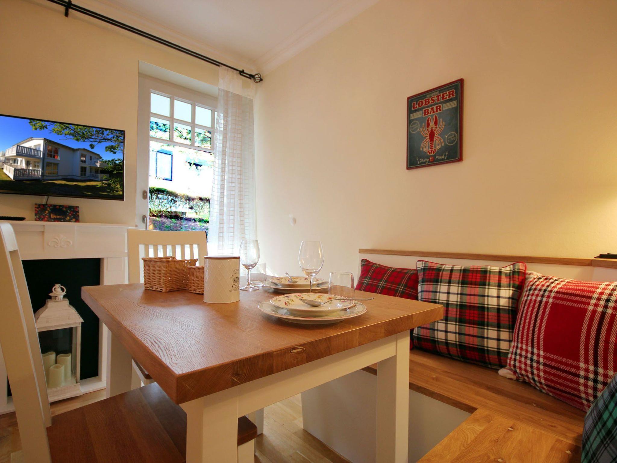 Gemütliche 2-Raum-Ferienwohnung mit großer Südterrasse in Binz, ideal für entspannte Urlaubstage zu dritt.
