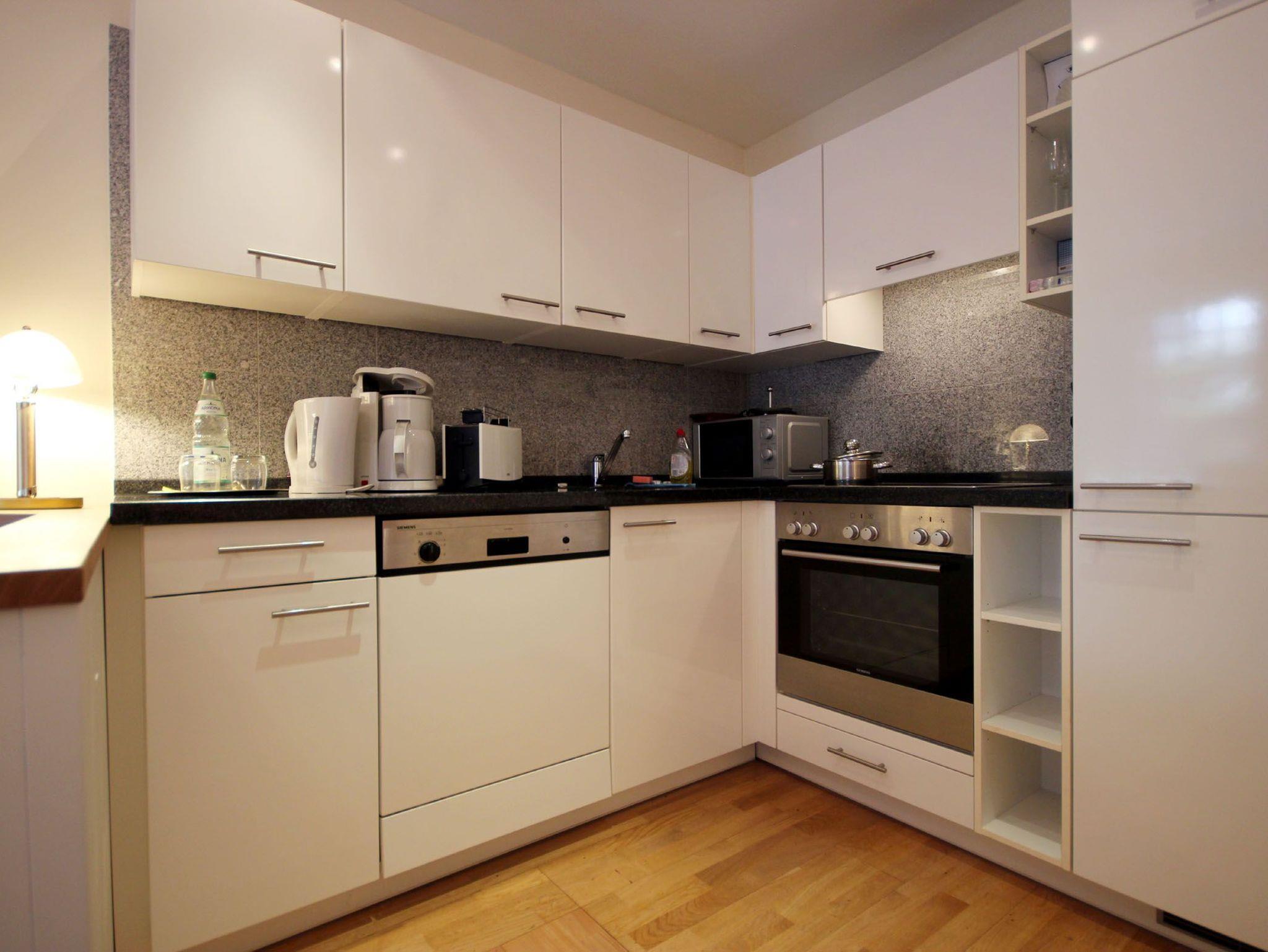 Die Küche ist mit Kühlschrank, Backofen, Ceranfeld, Geschirrspüler, Mikrowelle und Küchenhelfern komplett ausgestattet.