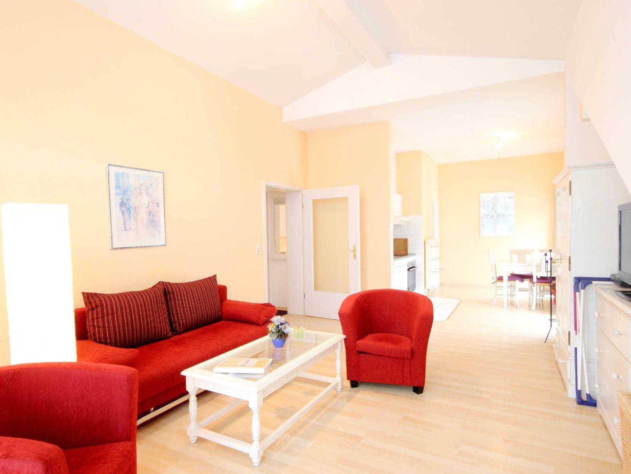 Ihre Ferienwohnung 31RB2 befindet sich im 2. Obergeschoss des Hauses (zur Lottumstaße). Genießen Sie Ruhe auf einem großen sonnigen Süd-Balkon und einen Ostbalkon. Die schöne 2,5 - Raumwohnung besitzt eine Größe von ca. 66 qm und kann mit bis zu 4 Personen gebucht werden. Neben dem Wohnraum mit integrierter Kochzeile gibt es 2 separate Schlafräume und ein Badezimmer mit Waschtisch, Dusche, Haartrockner und WC. Im 1. Schlafraum befindet sich ein Doppelbett (1,80m x 2 m) und ein Kleiderschrank. Der fensterlose, kleine 2. Schlafraum liefert bei Bedarf mit einem Doppelstockbett noch Schlafplätze für 2 Personen. Im Wohnraum befinden sich ein gemütliches Sofa, zwei Sessel und ein weiterer Kleiderschrank sowie eine Kommode. Die Kochzeile ist mit Kühlschrank, Backofen, Cerankochfeld und diversen Kleingeräten ausgestattet. Daneben befindet sich ein separater Essplatz. Zur technischen Ausstattung gehören TV, Radio und CD-Spieler. Münzwaschmaschine und Münztrockner können Sie im Vorderhaus nutzen. Ab sofort können all unsere Gäste einen kostenfreien WLAN-Zugang nutzen. Ein PKW-Stellplatz unterm Carport (1,98m hoch; 2,25m breit; 6m lang) steht Ihnen direkt am Haus zur Verfügung.