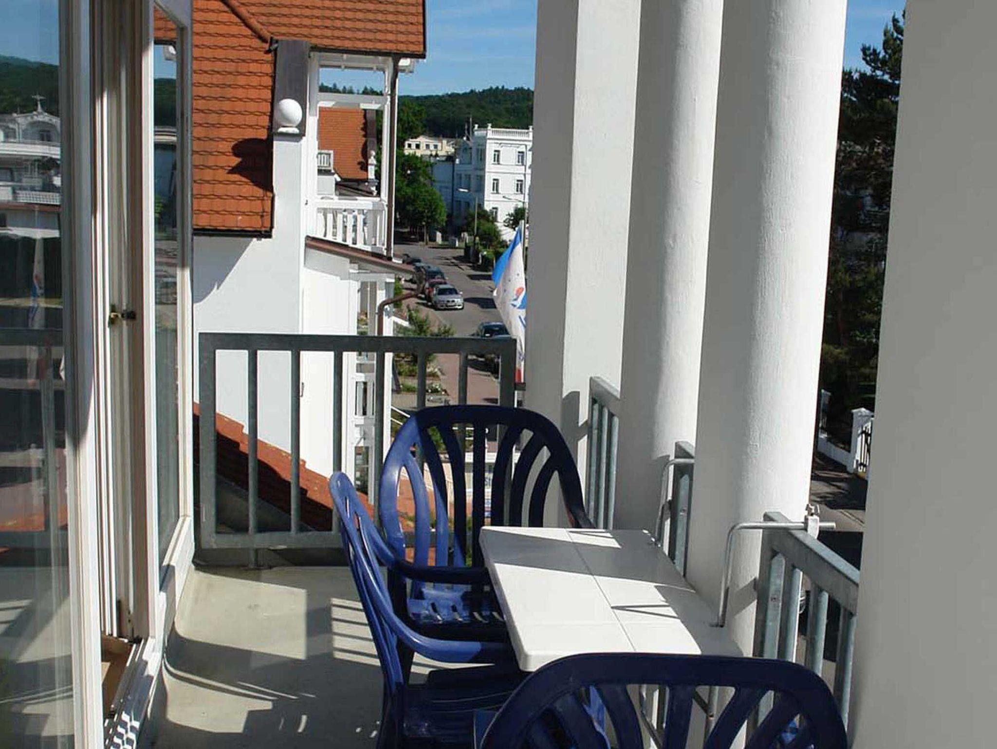 Gemütliche Ferienwohnung mit zwei Balkonen, nur 80 m vom Strand in Binz entfernt, ideal für bis zu 4 Personen.